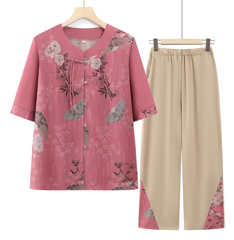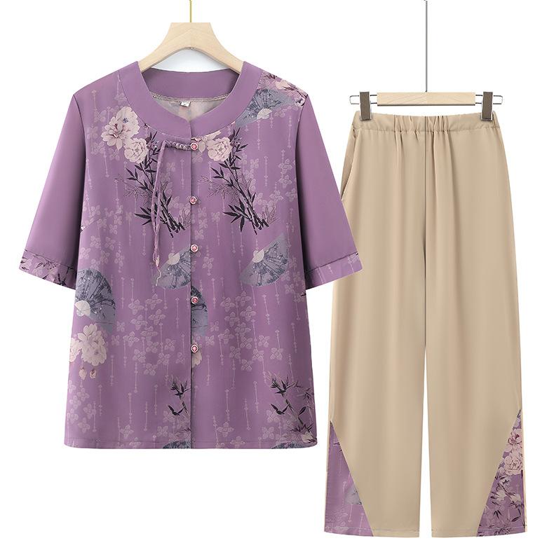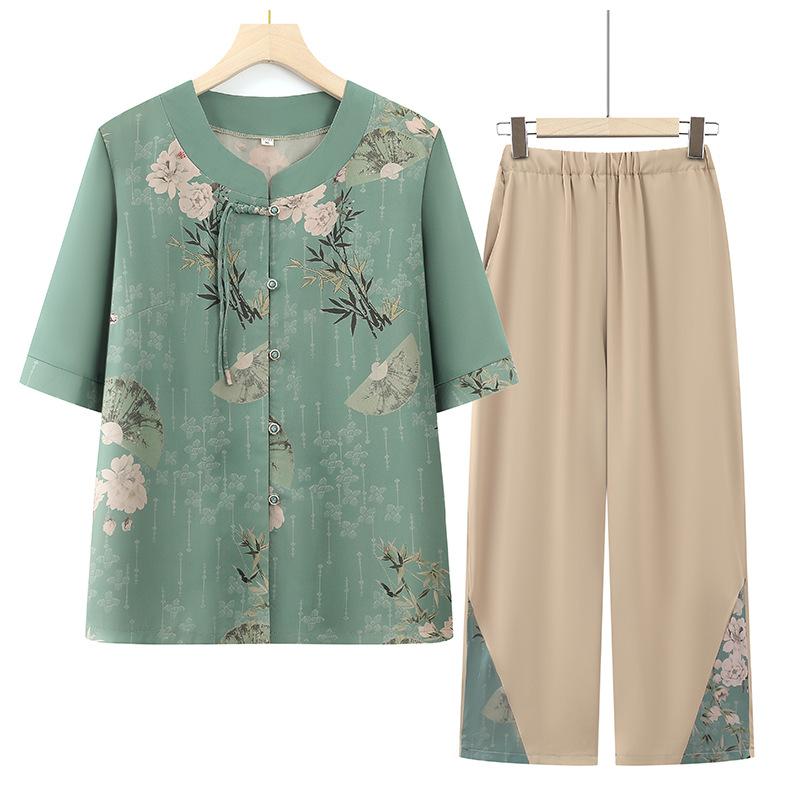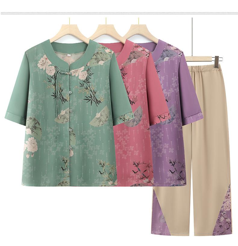 Traje para personas mayores Mujeres 60-80 Talla grande para personas de mediana edad y mayores Vestido de abuela Estilo extranjero Vestido de mujer Conjunto de dos piezas para personas de 80 años