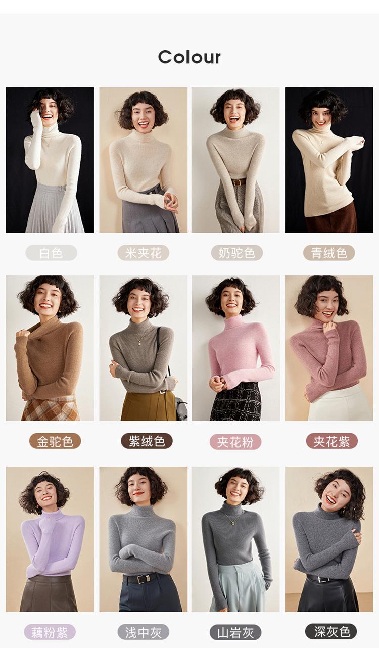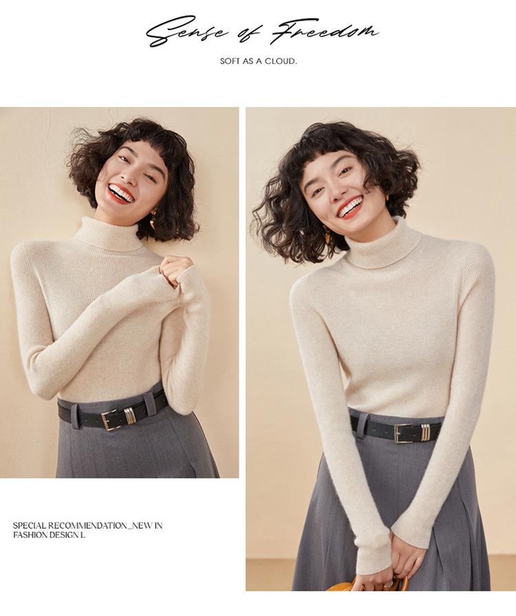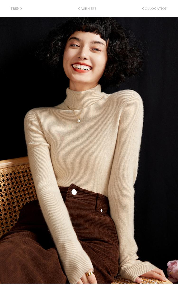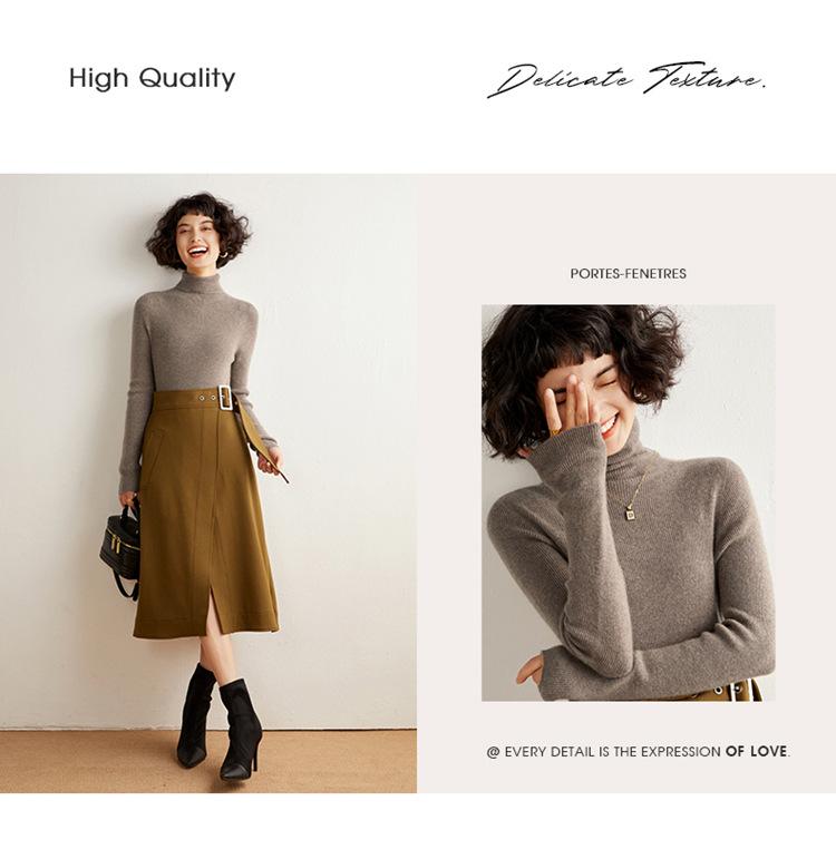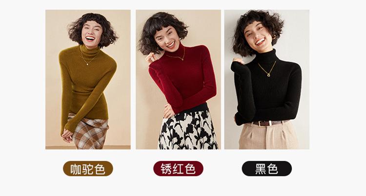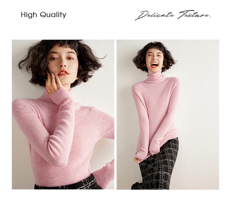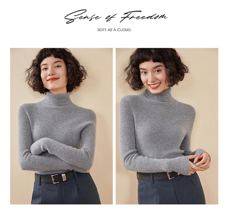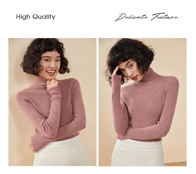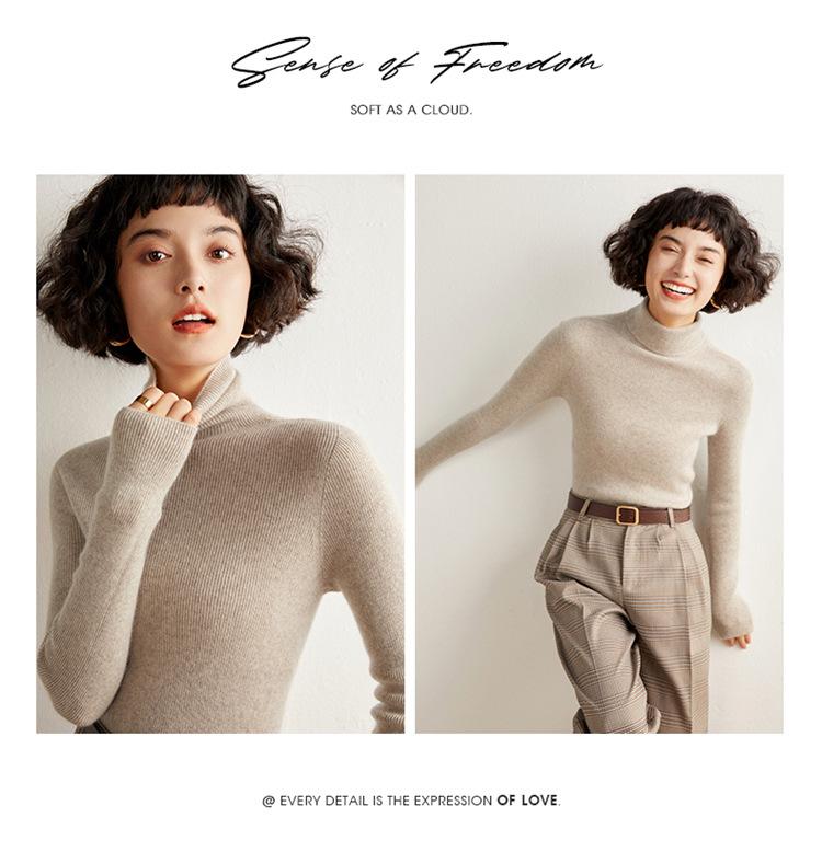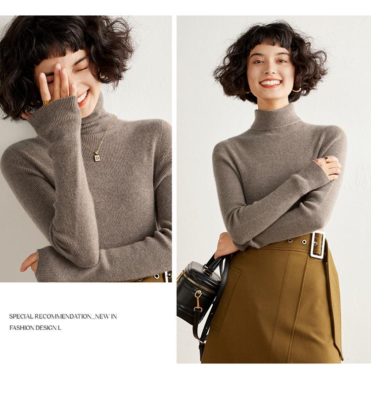 Suéter de Cachemira de Primera Línea Sin Costuras de Solapa Alta para Mujer Suéter Slim-Fit de Cuello Alto Otoño e Invierno Camisa Base Tejida