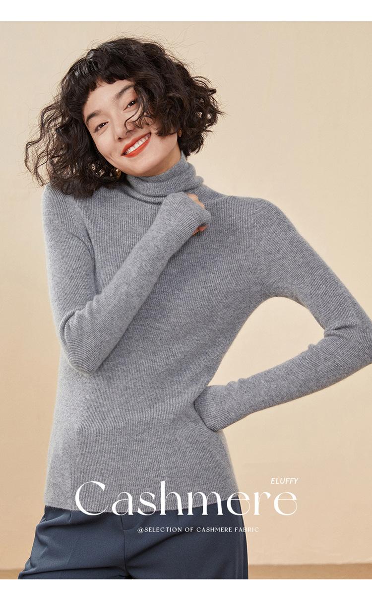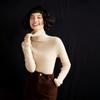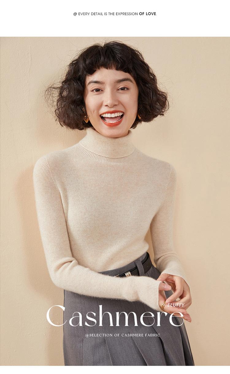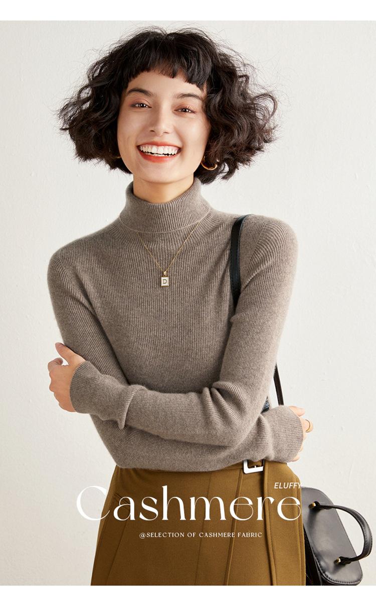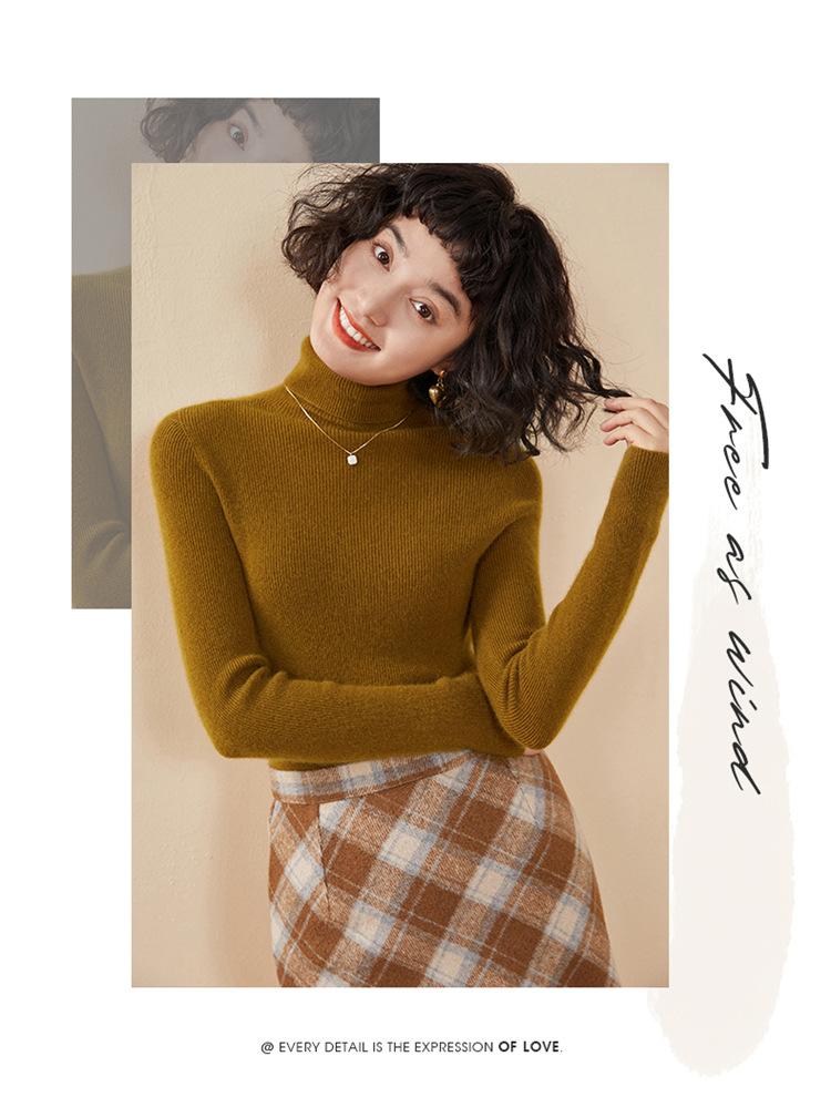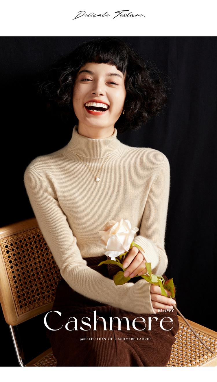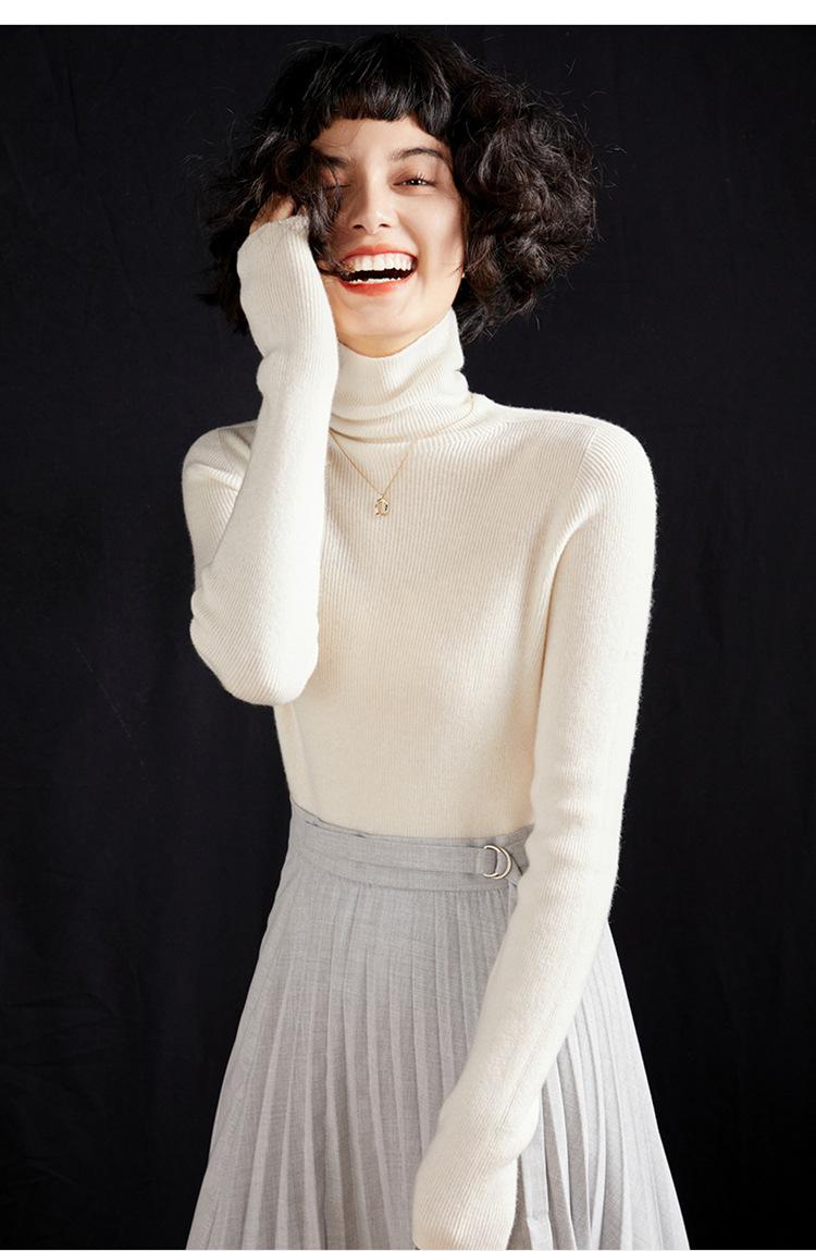 Suéter de Cachemira de Primera Línea Sin Costuras de Solapa Alta para Mujer Suéter Slim-Fit de Cuello Alto Otoño e Invierno Camisa Base Tejida