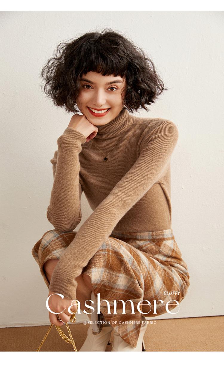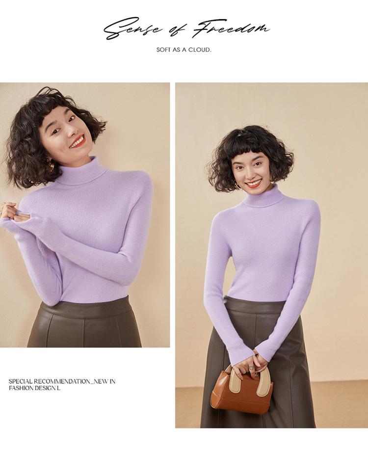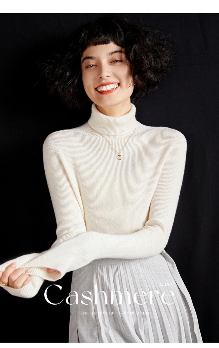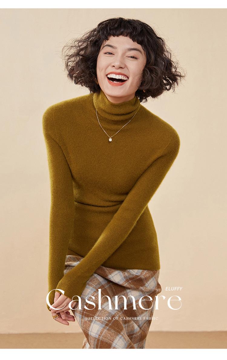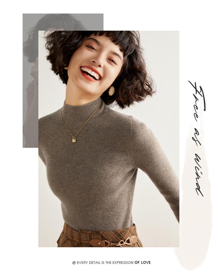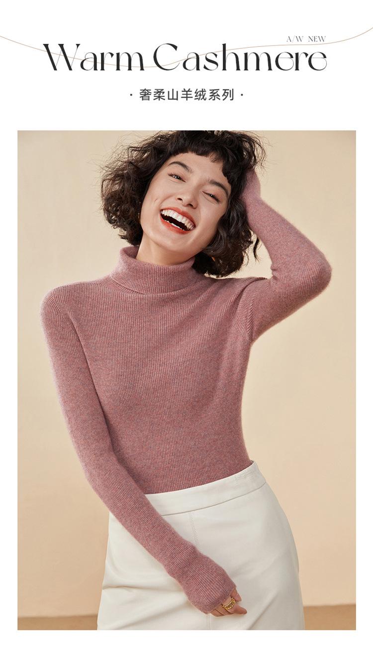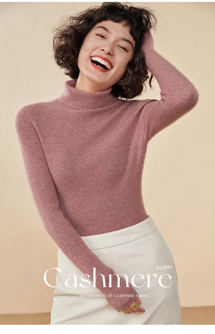 Suéter de Cachemira de Primera Línea Sin Costuras de Solapa Alta para Mujer Suéter Slim-Fit de Cuello Alto Otoño e Invierno Camisa Base Tejida