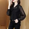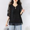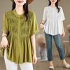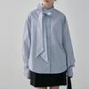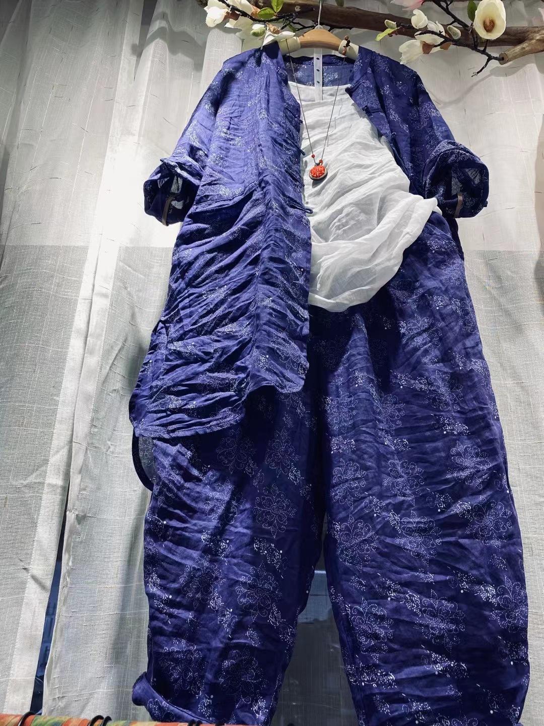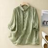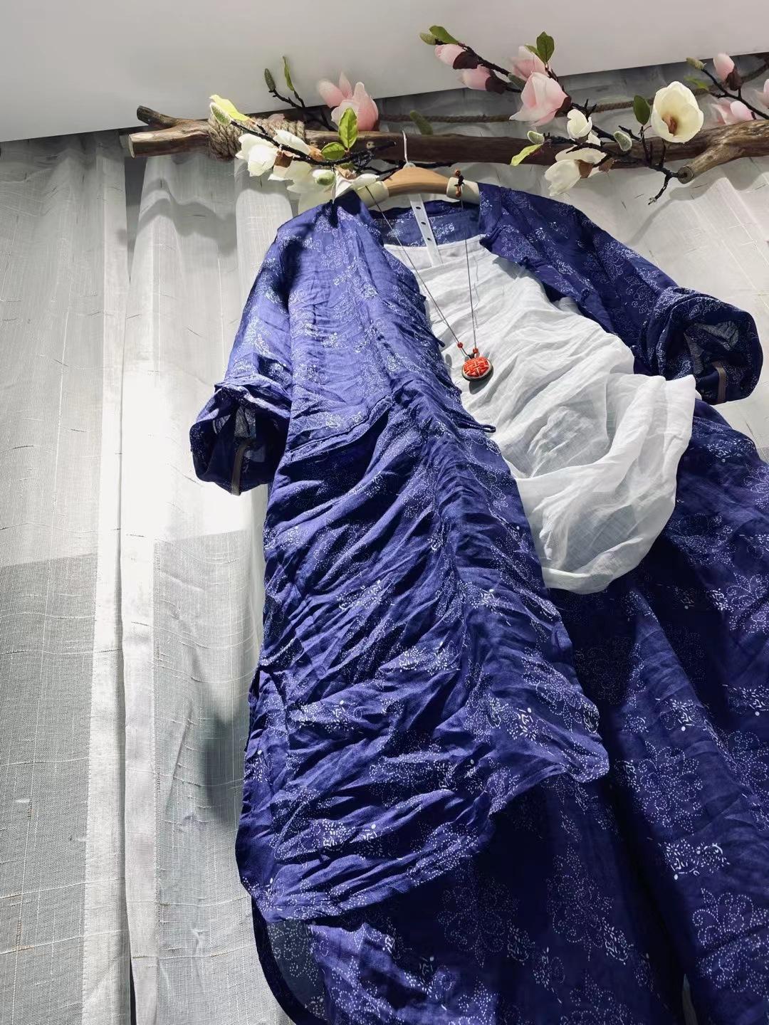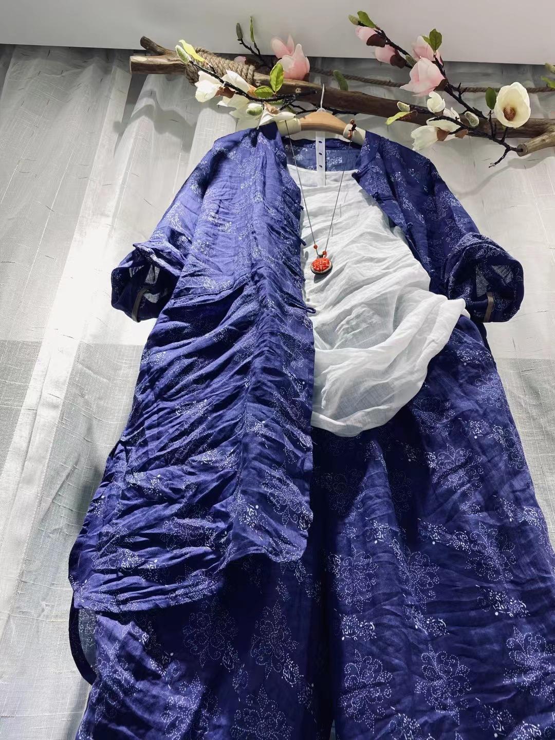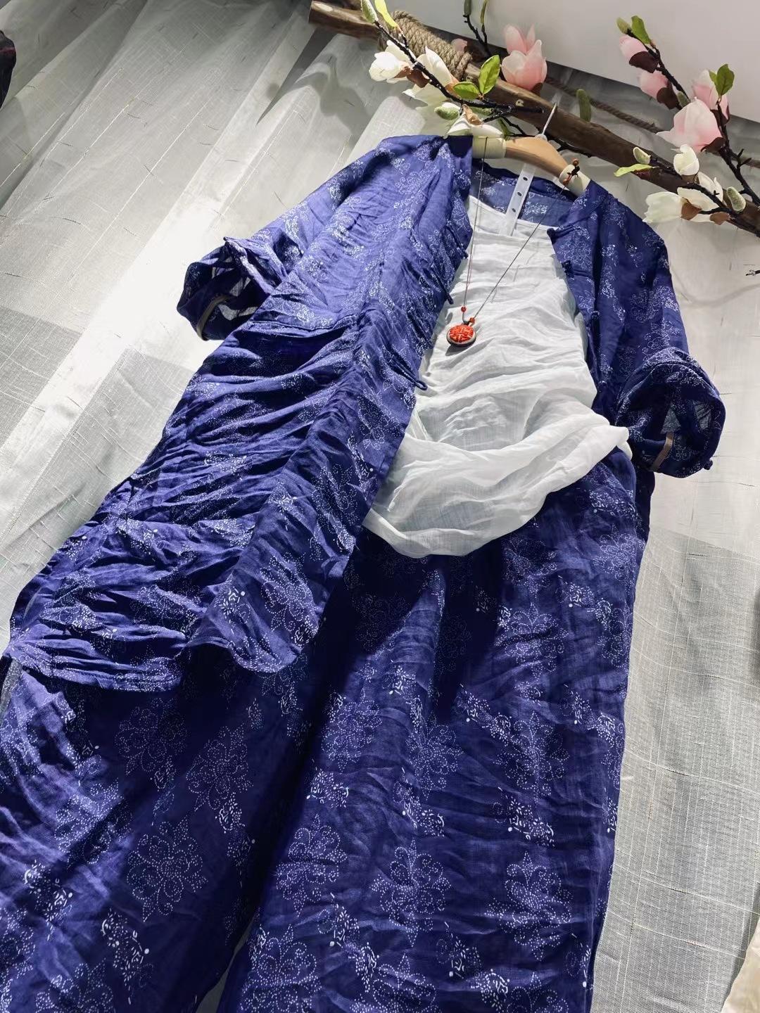 Verano 2024 Nuevo Azul y Blanco Porcelana Camisa Suelta de Ramio Cárdigan con Botones Camisa Top Mujer