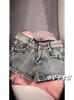 Pantalones cortos vaqueros de tiro bajo estilo americano para mujer, ajustados, adelgazantes, con remaches de moda, para verano