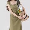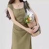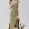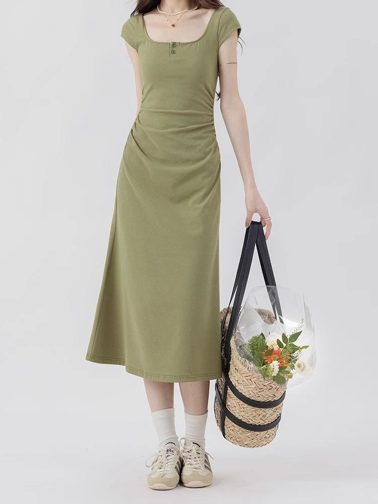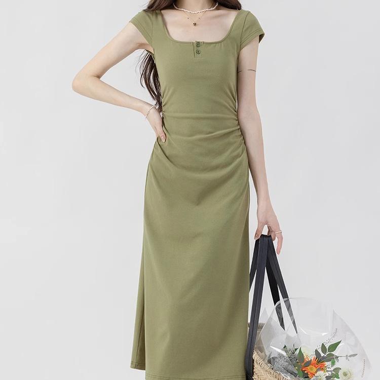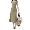 Elegante vestido largo verde de alta gama para mujer, de verano, con cintura ajustada y adelgazante, estilo Hepburn, estilo francés, elegante y hermoso vestido con cuello cuadrado.