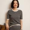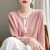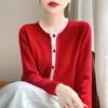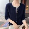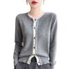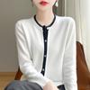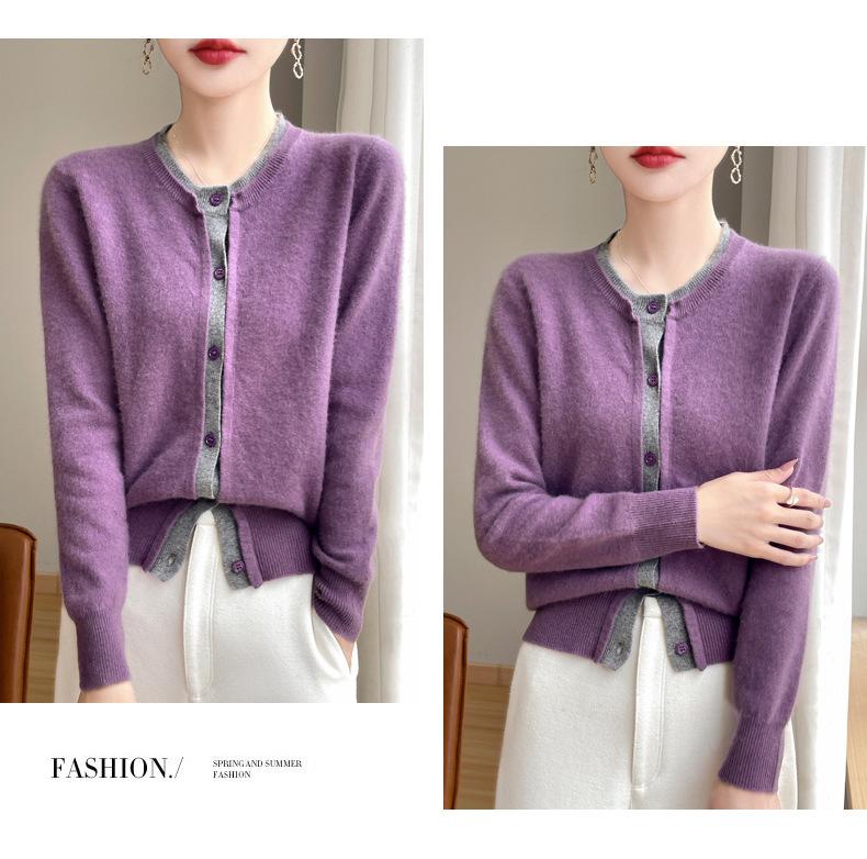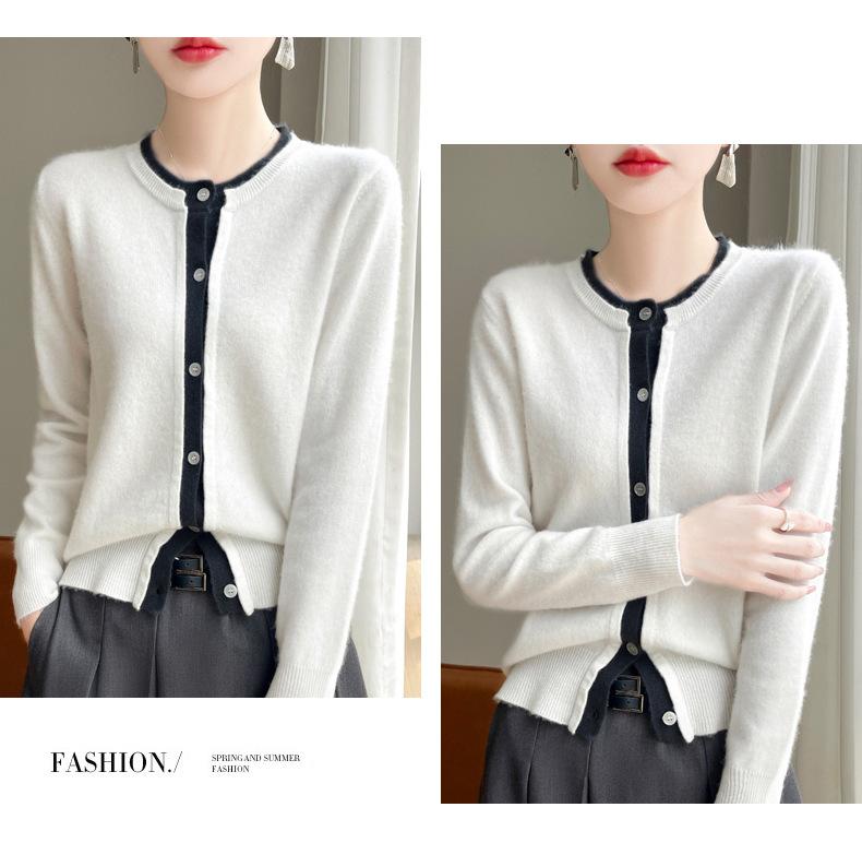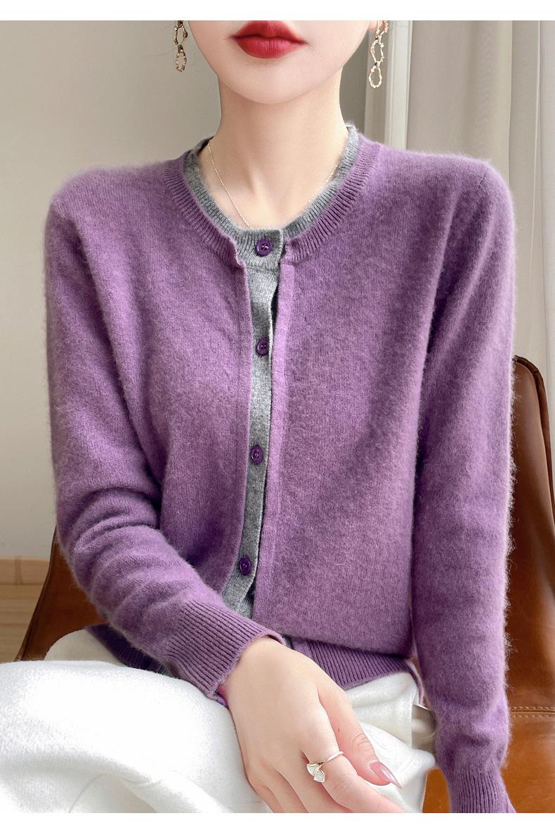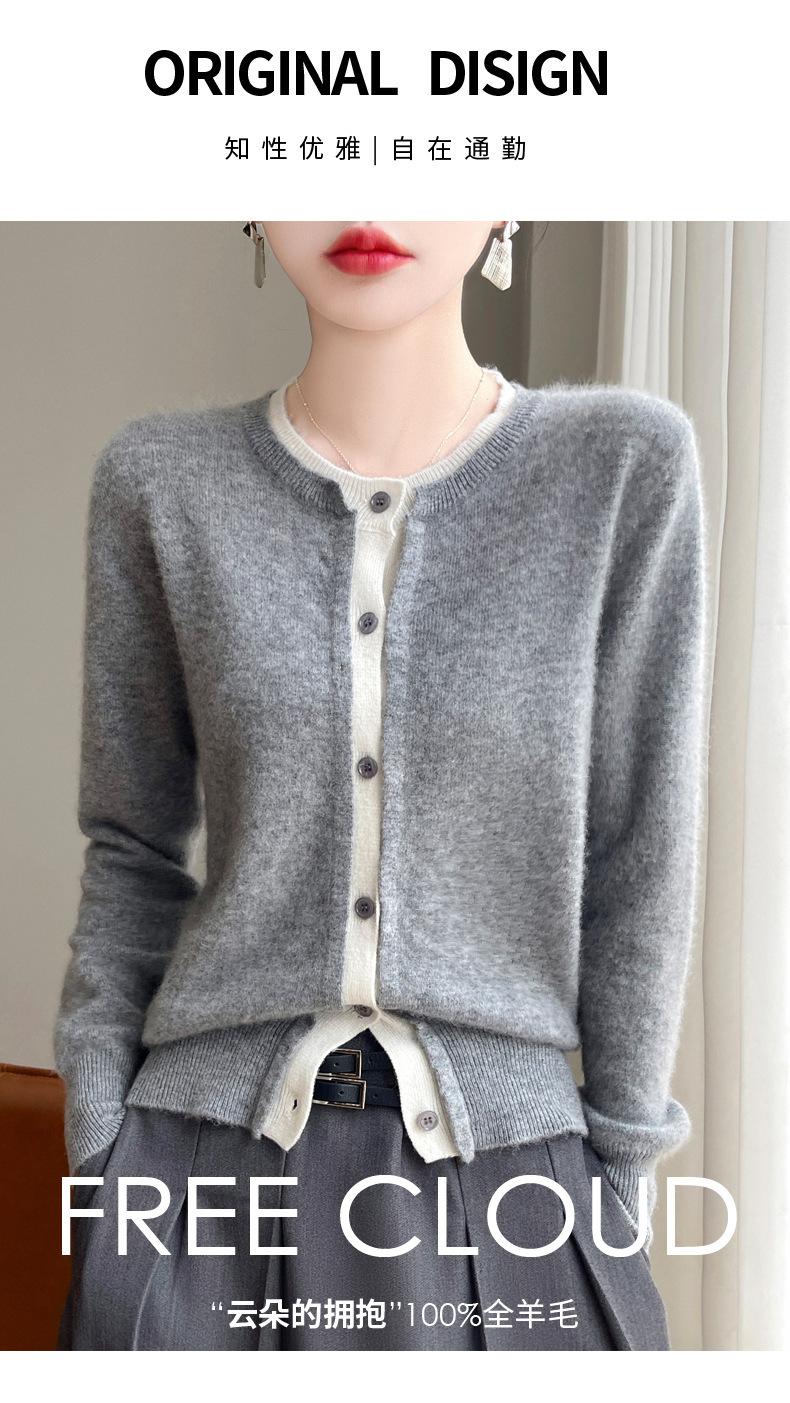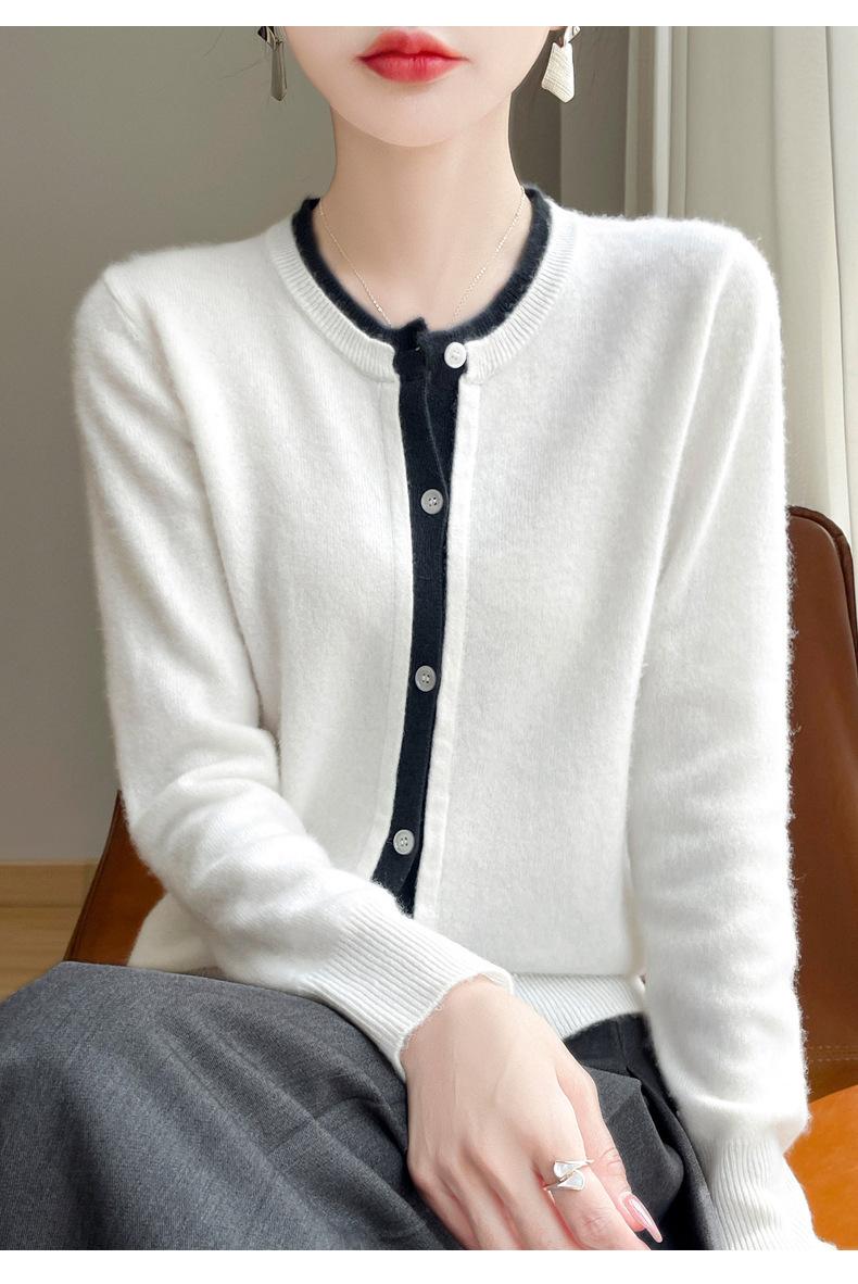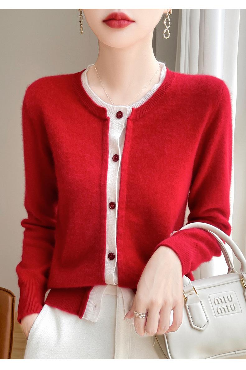 Cárdigan de Cachemira Color Block de Cuello Redondo Falso de Dos Piezas para Mujer Otoño e Invierno Holgado Tejido de Lana Top Coreano Abrigo Corto