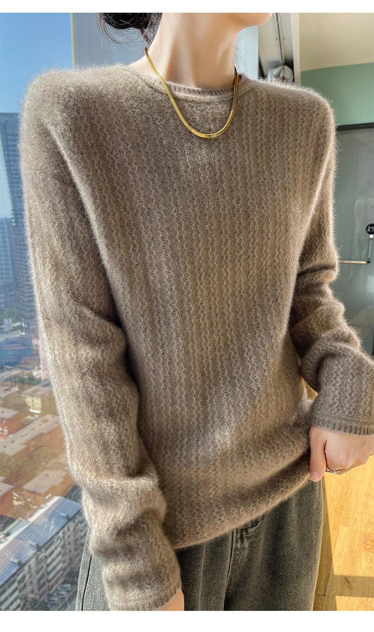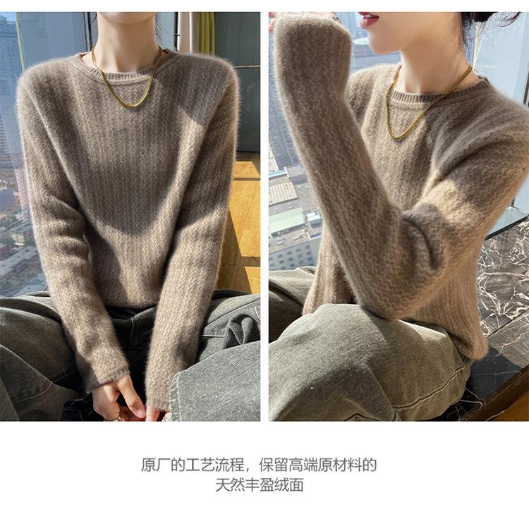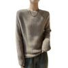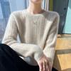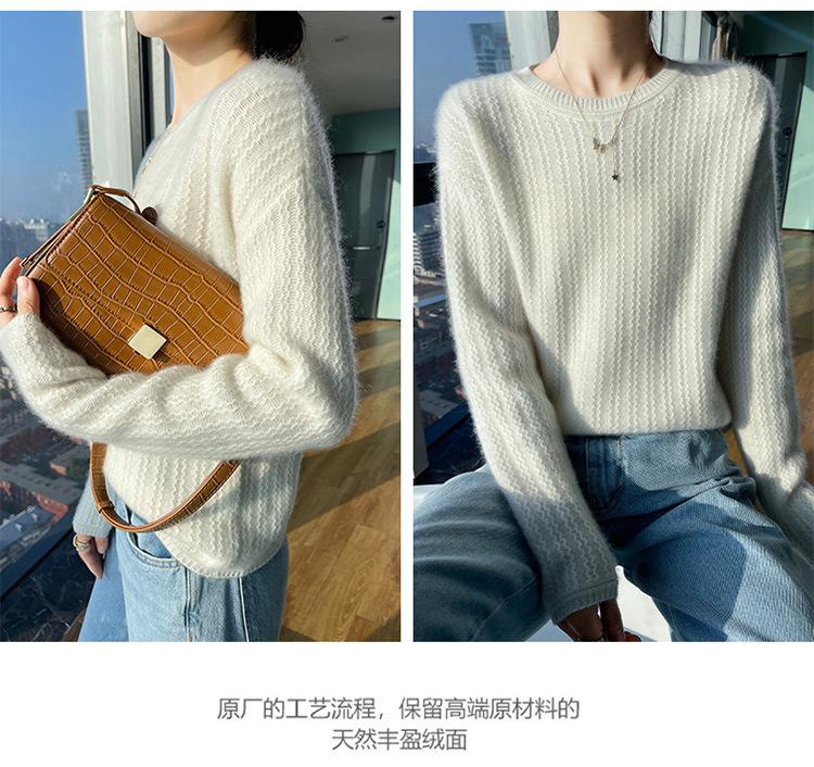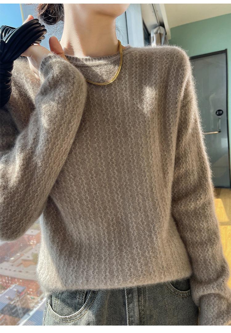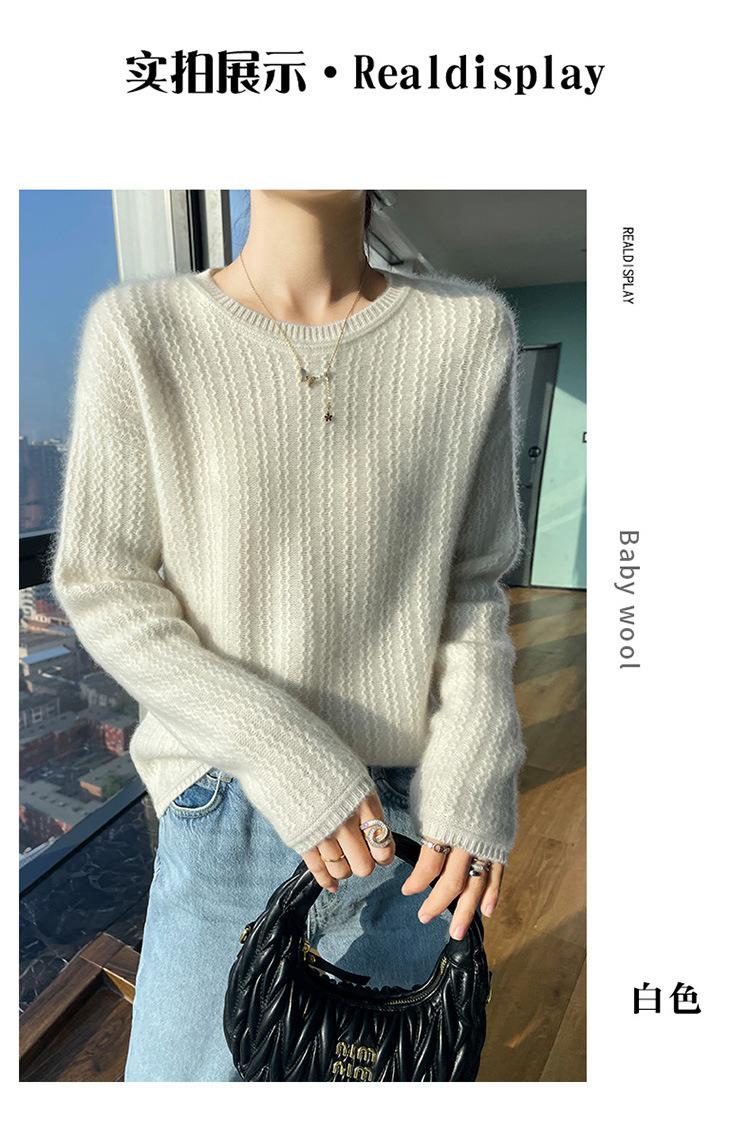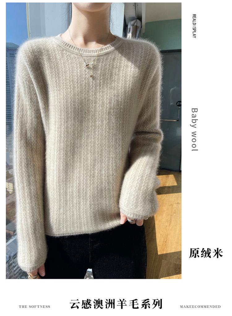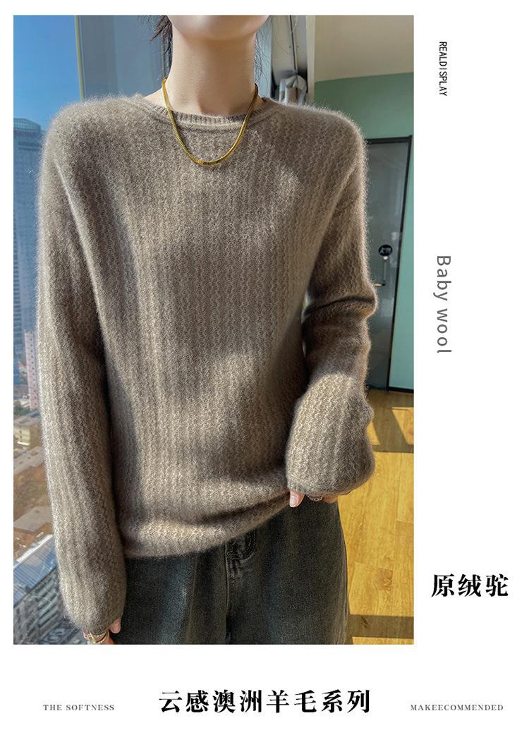 Suéter de lana suave y encerado con cuello redondo para mujer, otoño e invierno, nuevo, suelto, de manga larga, con base gruesa interior.