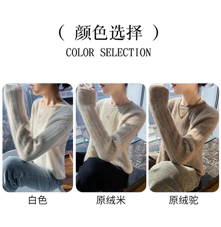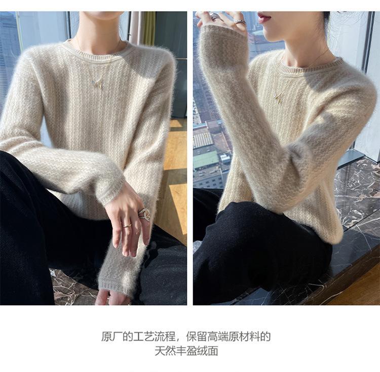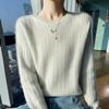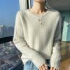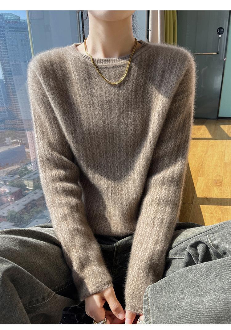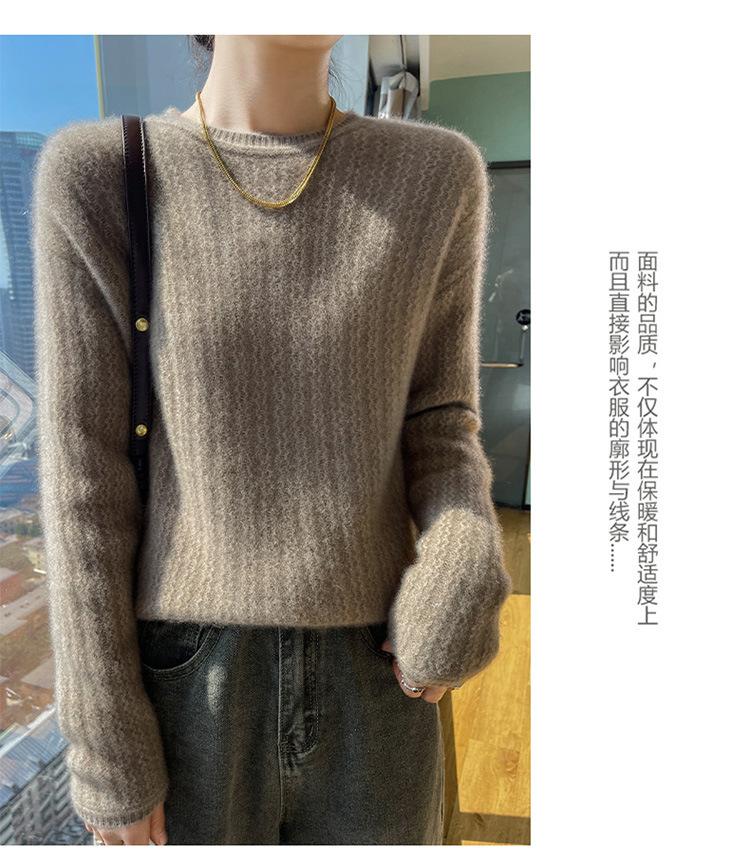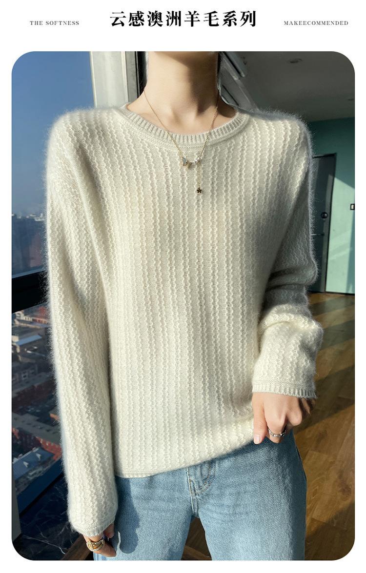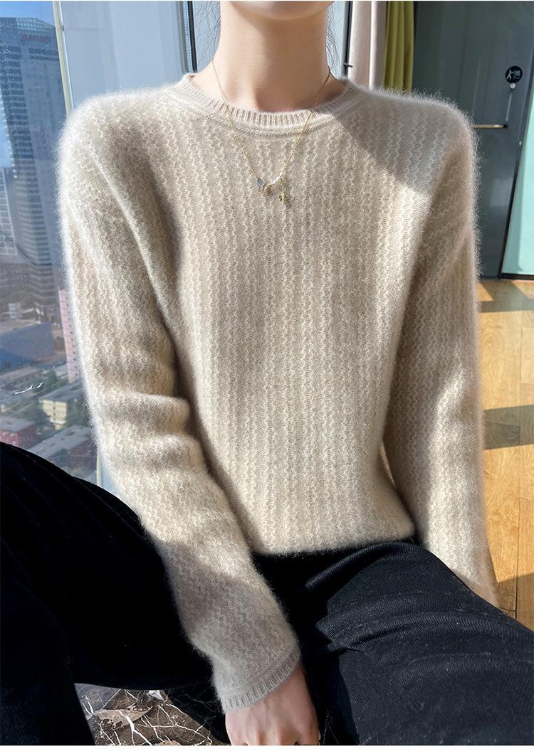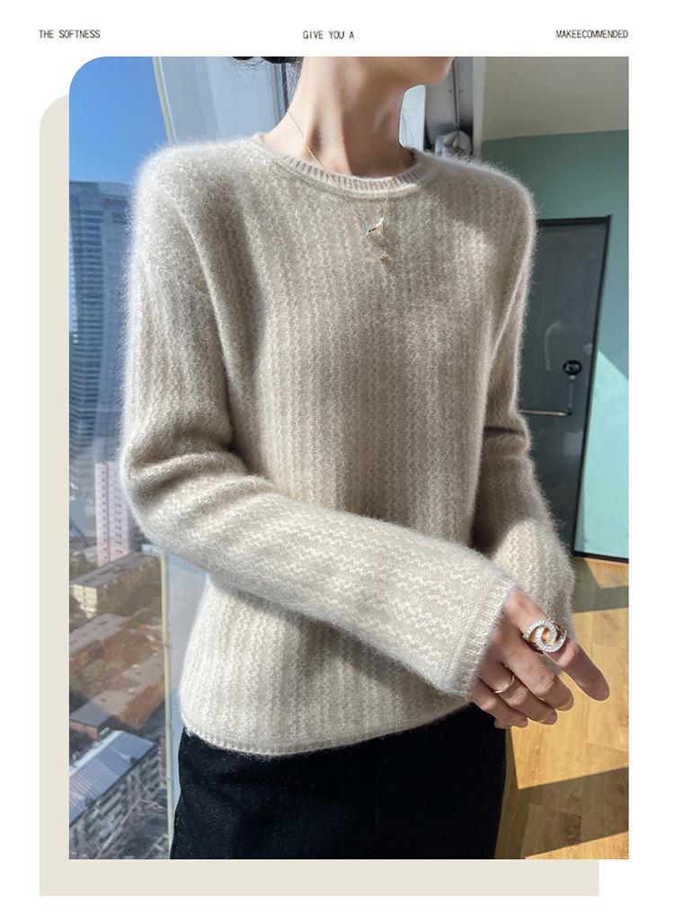 Suéter de lana suave y encerado con cuello redondo para mujer, otoño e invierno, nuevo, suelto, de manga larga, con base gruesa interior.