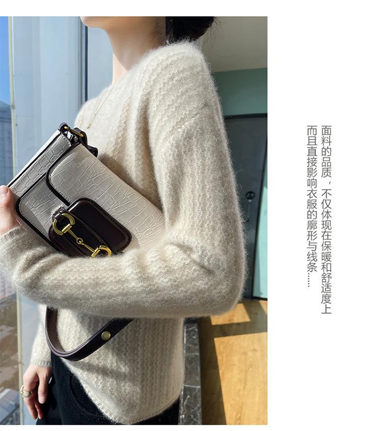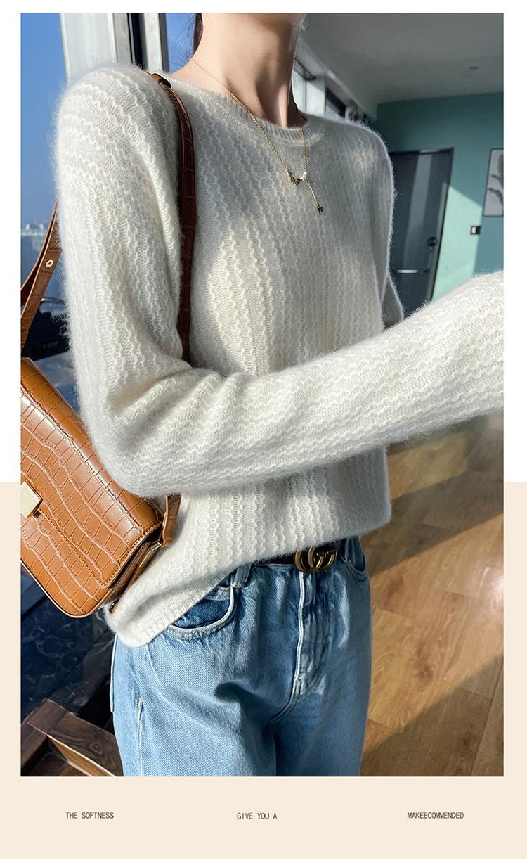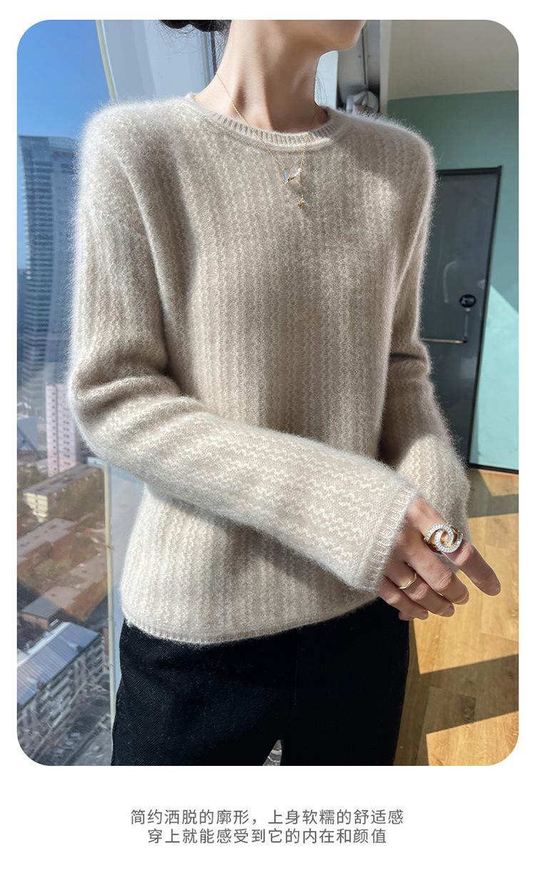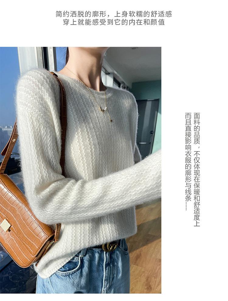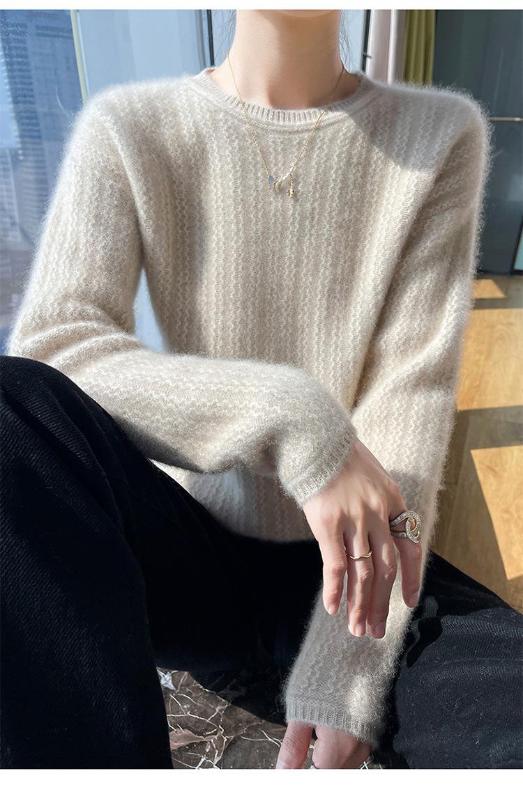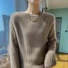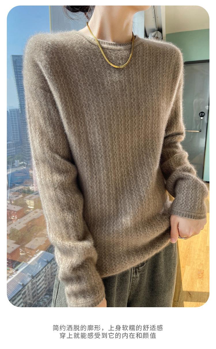 Suéter de lana suave y encerado con cuello redondo para mujer, otoño e invierno, nuevo, suelto, de manga larga, con base gruesa interior.