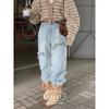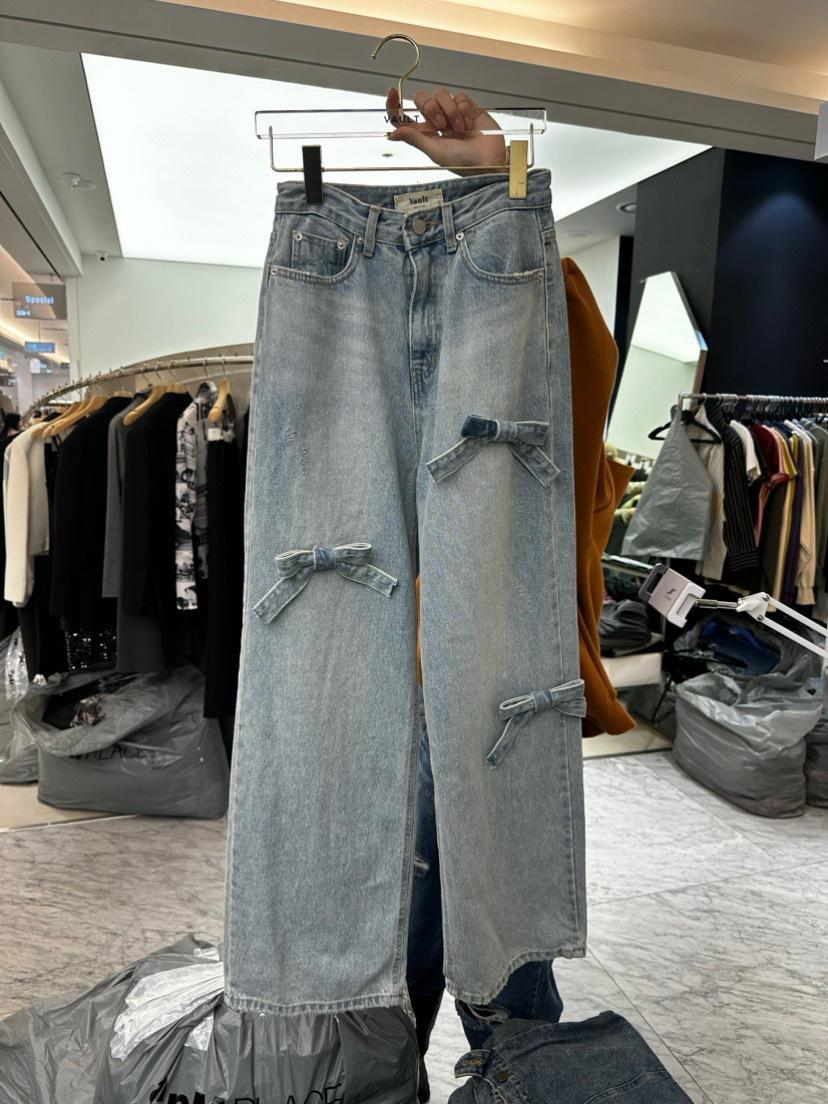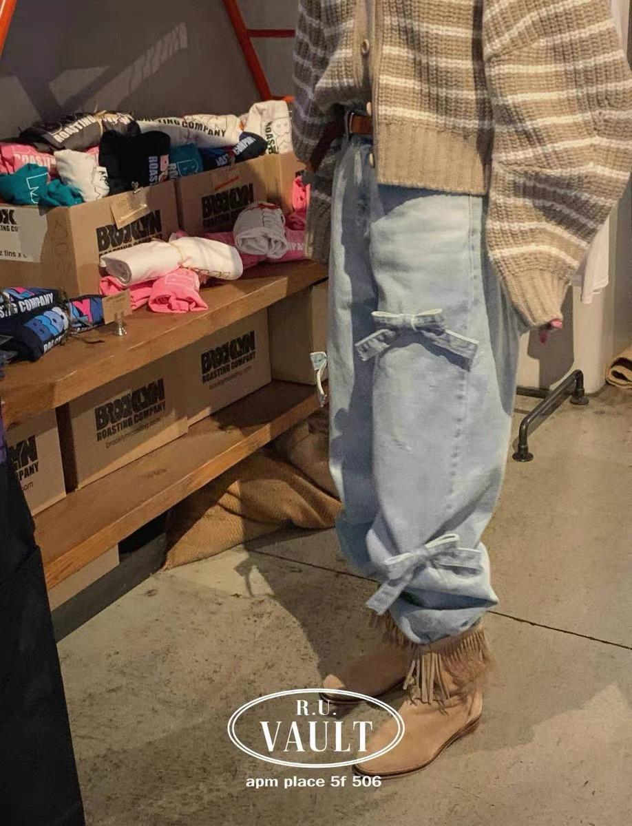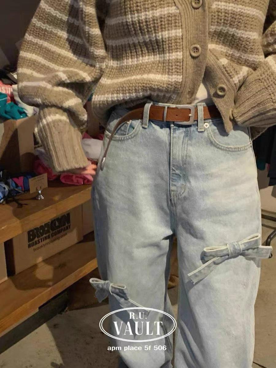 Ropa de mujer de Corea del Sur Dongdaemun otoño e invierno jeans casuales rectos de alta calidad retro desgastados con lazo