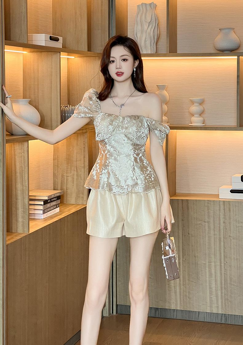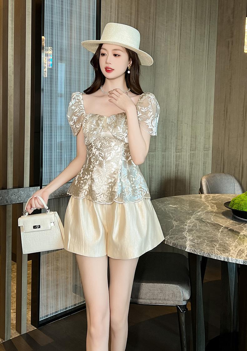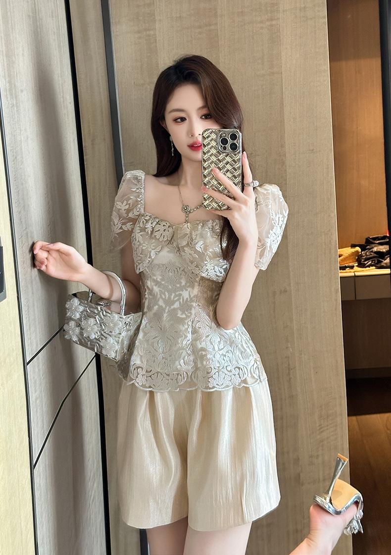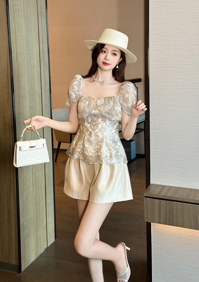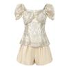 Traje de Moda para Mujer 2025 Verano Nuevo Francés Cuello Cuadrado Top de Encaje Shorts de Cintura Alta Conjunto de Dos Piezas Mujer 21308