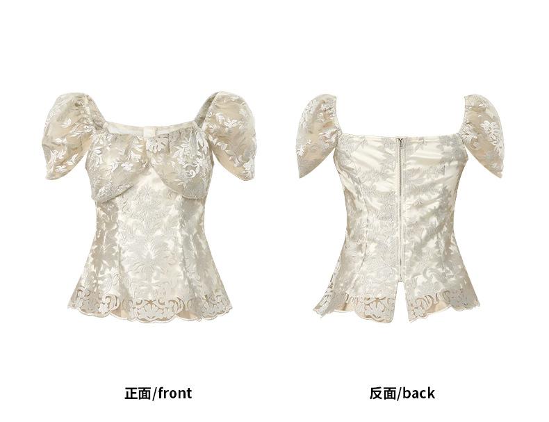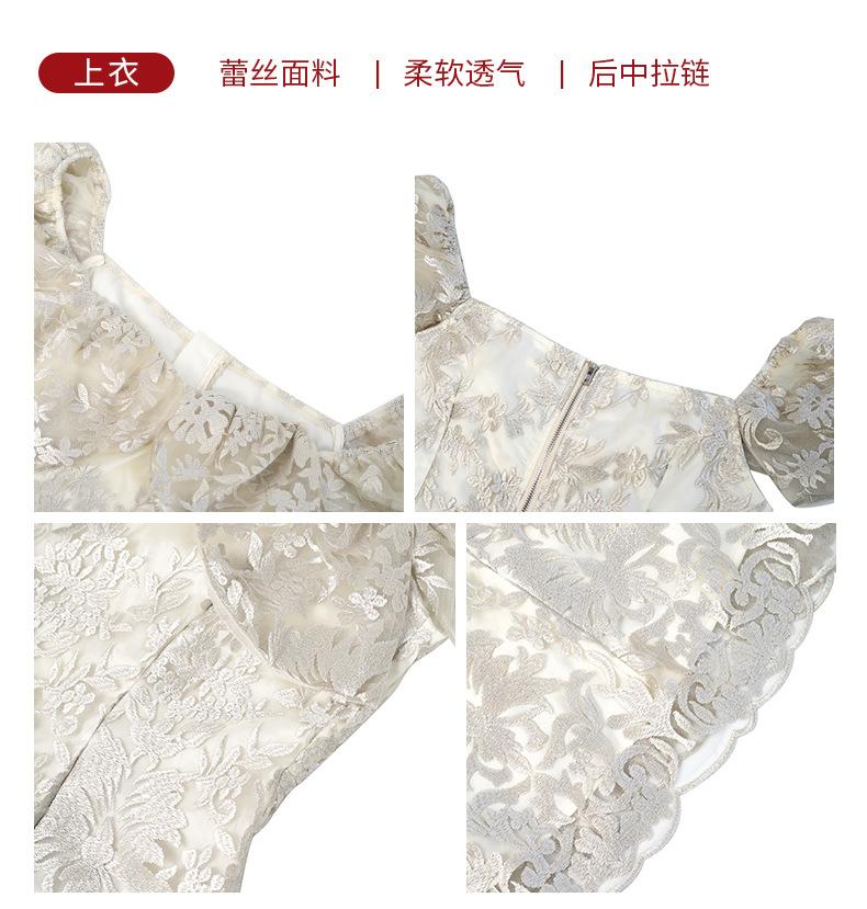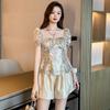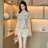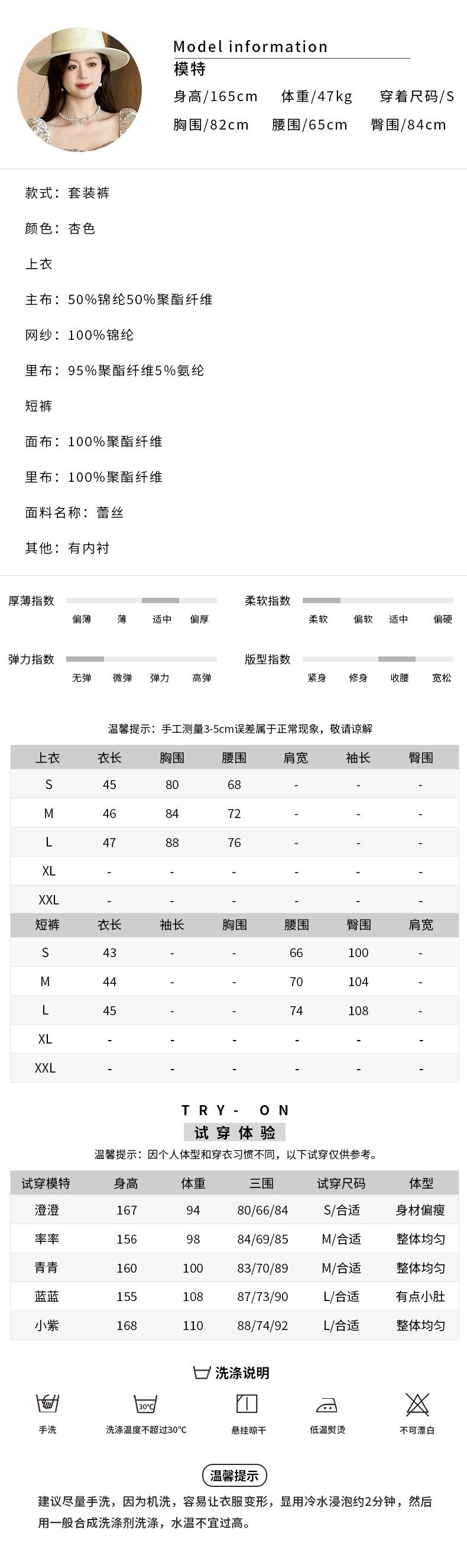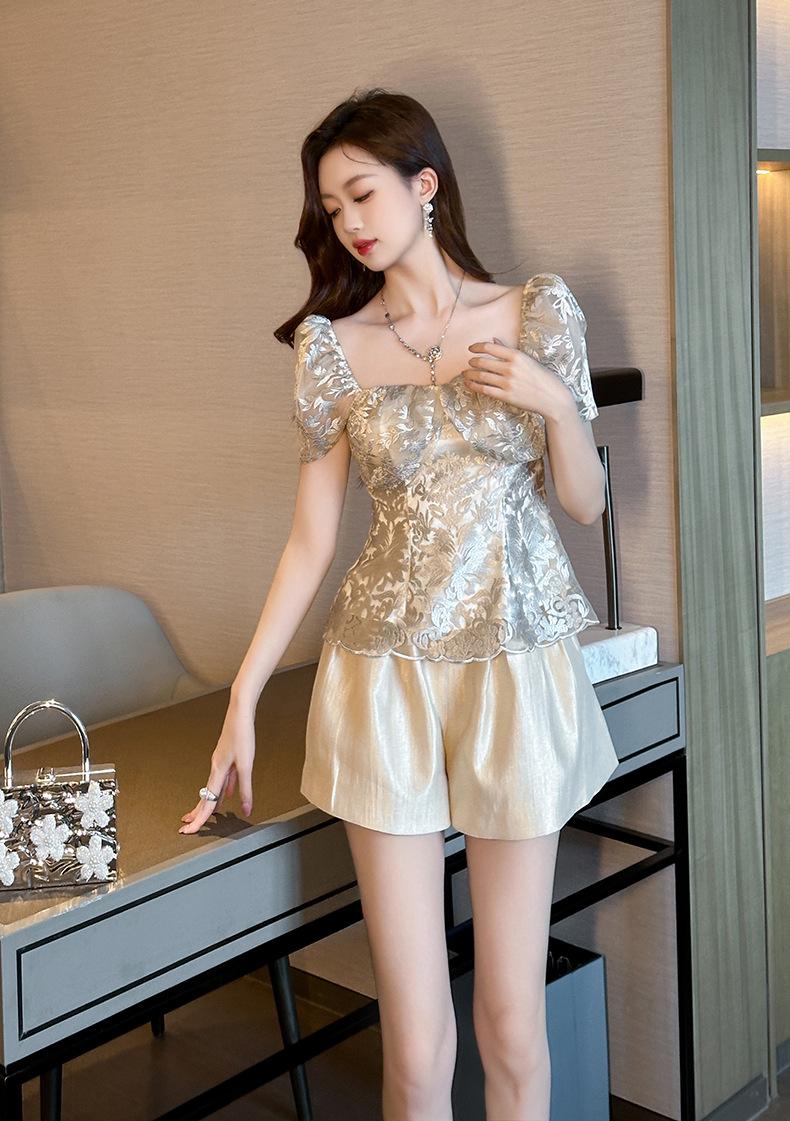 Traje de Moda para Mujer 2025 Verano Nuevo Francés Cuello Cuadrado Top de Encaje Shorts de Cintura Alta Conjunto de Dos Piezas Mujer 21308