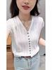 Cárdigan de punto de manga corta con cuello en V para mujer, nuevo, holgado, elegante, de color sólido, adelgazante, de alta gama, para exteriores, 2024
