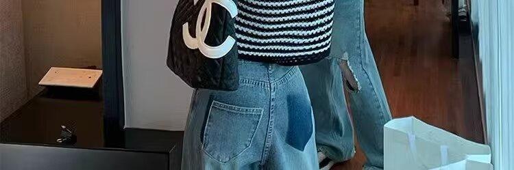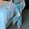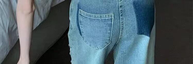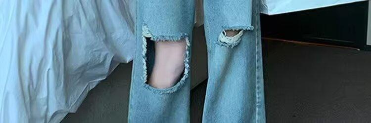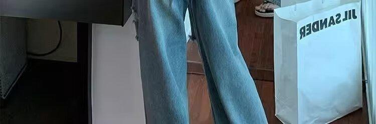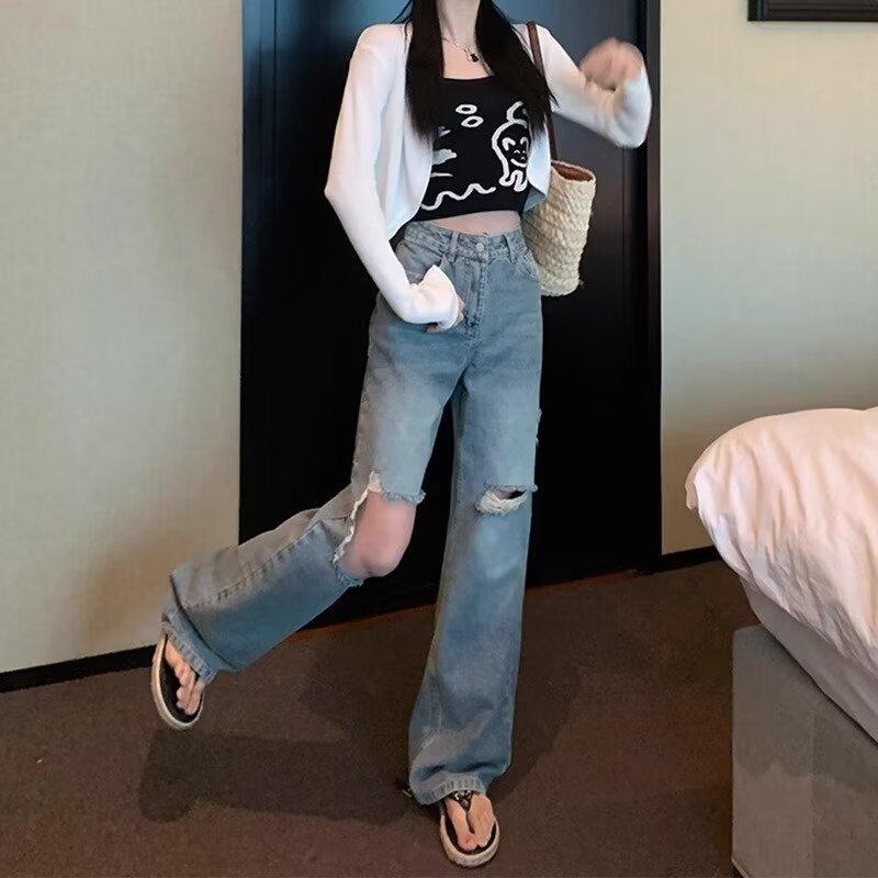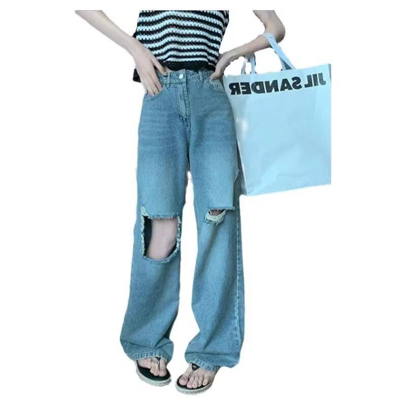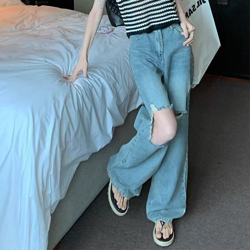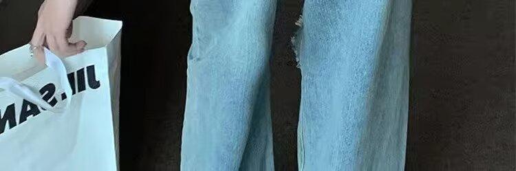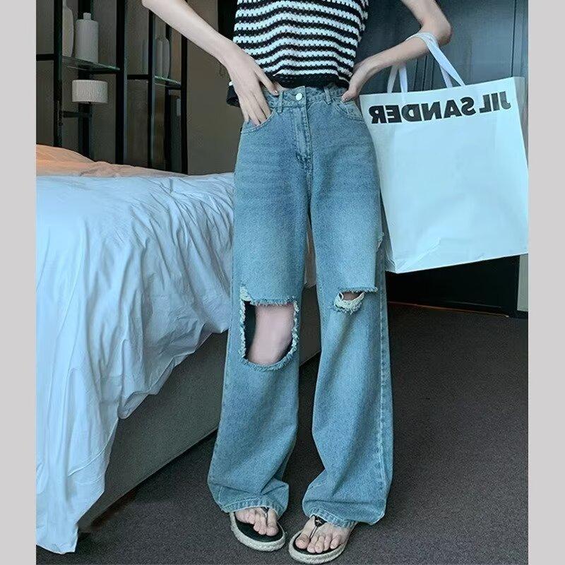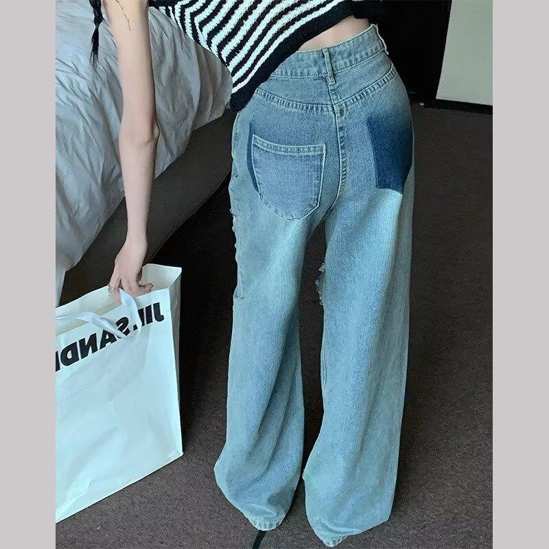 Pantalones vaqueros de pierna ancha con diseño de nicho, rotos, para mujer, primavera y otoño 2024, de cintura alta, rectos y adelgazantes.