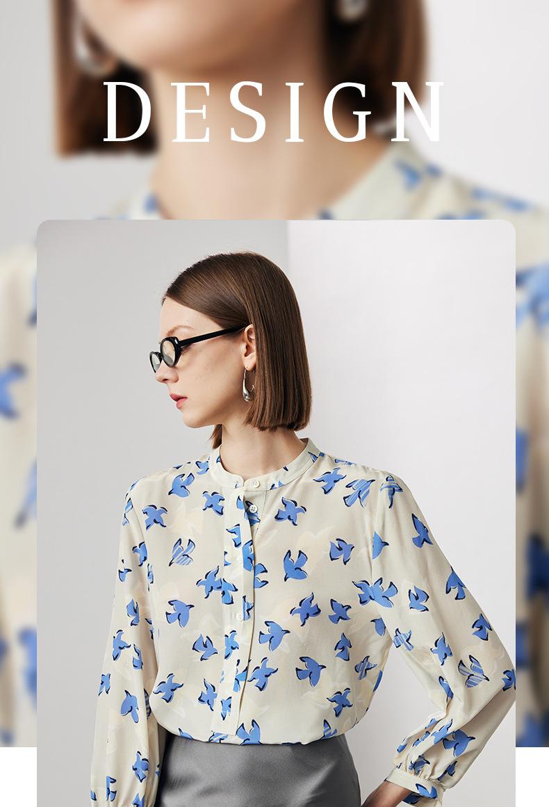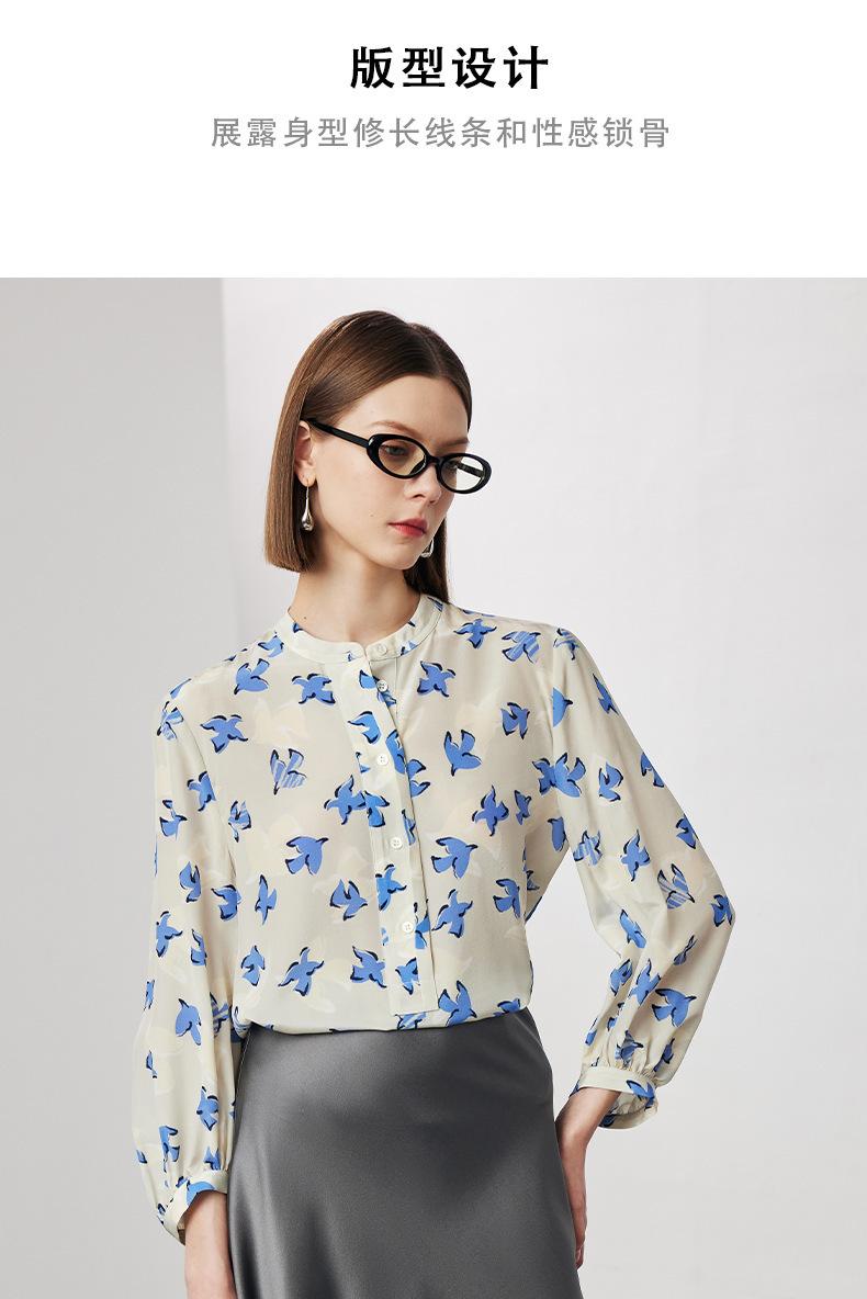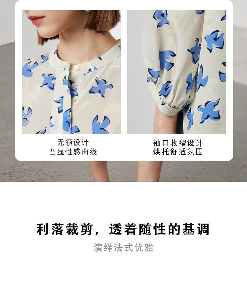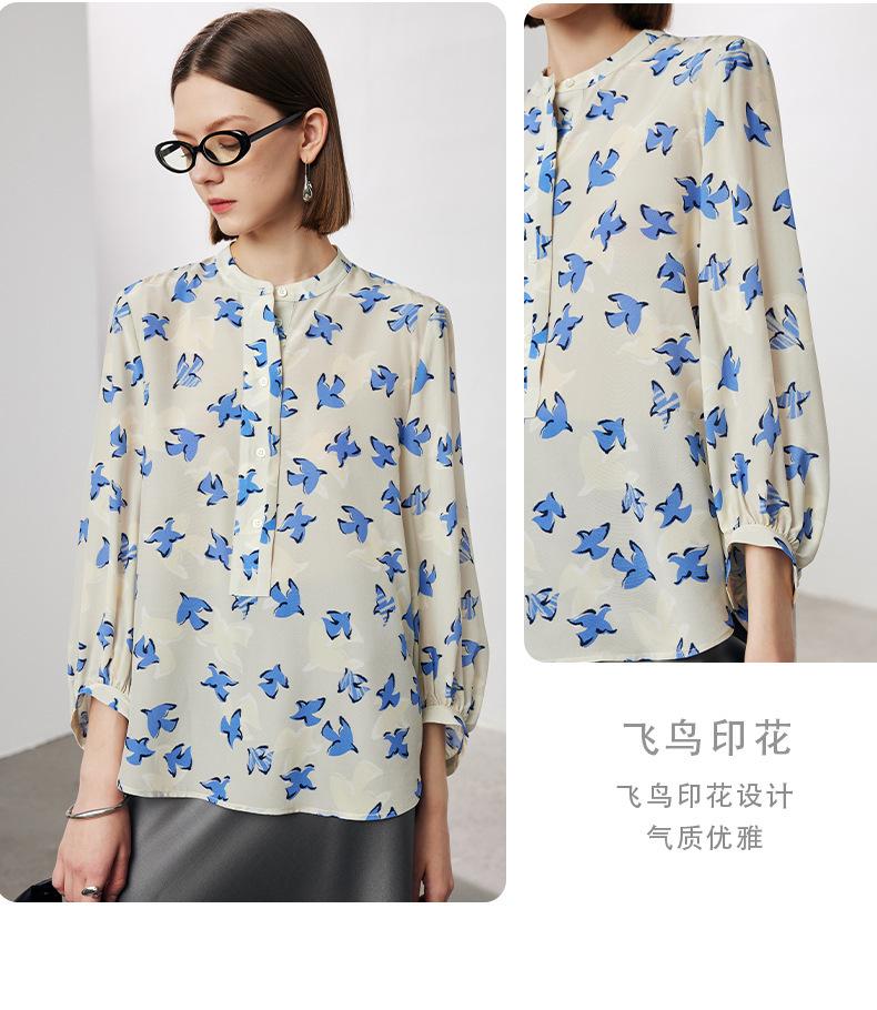 Camisa de Seda de Manga Corta para Mujer 2025 Primavera y Verano Nueva Cuello Mao Casual Crepé de China Estampada 100% Seda de Morera Top