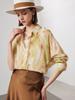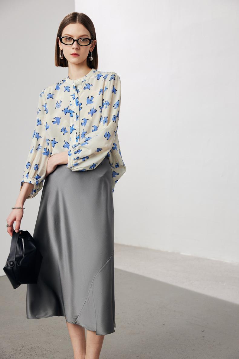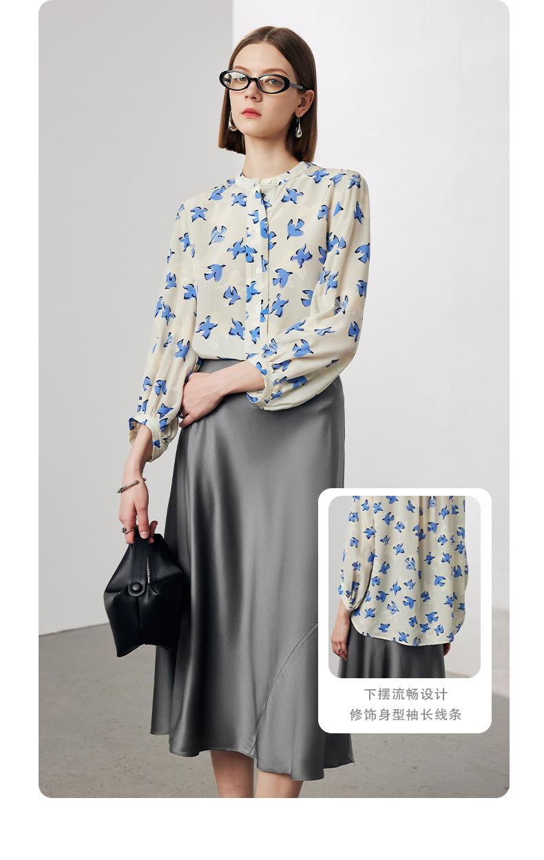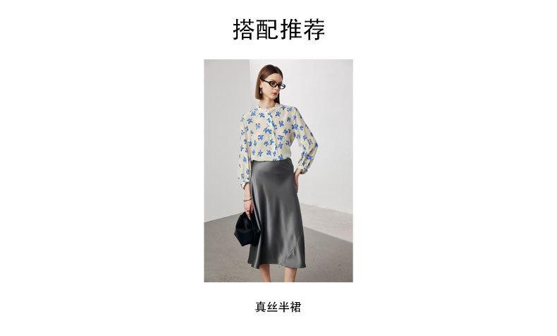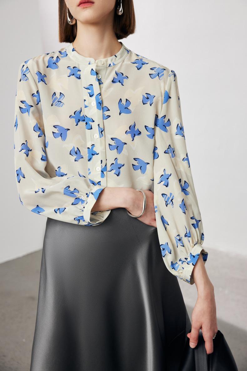 Camisa de Seda de Manga Corta para Mujer 2025 Primavera y Verano Nueva Cuello Mao Casual Crepé de China Estampada 100% Seda de Morera Top