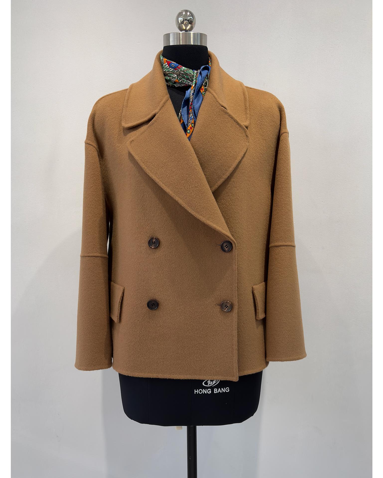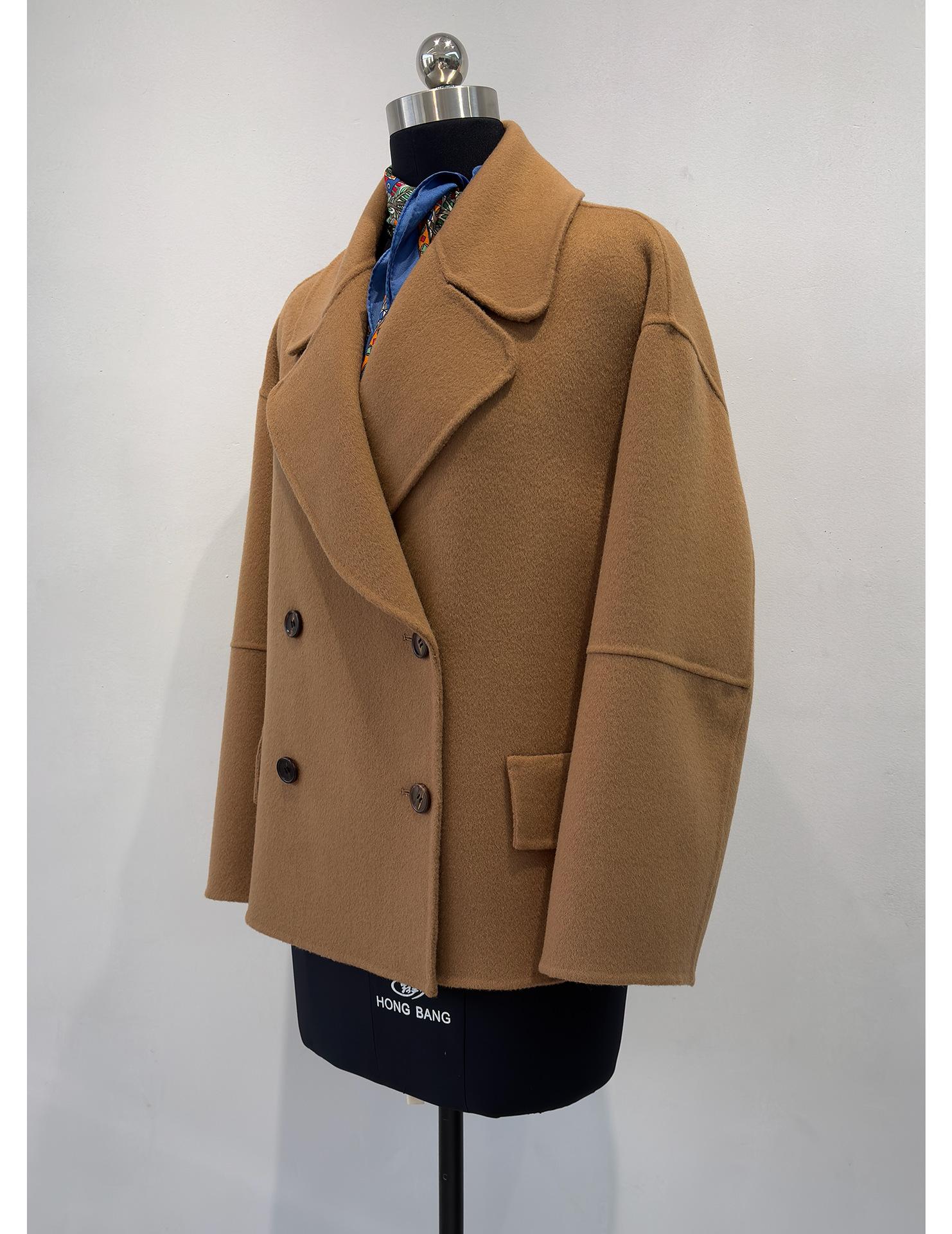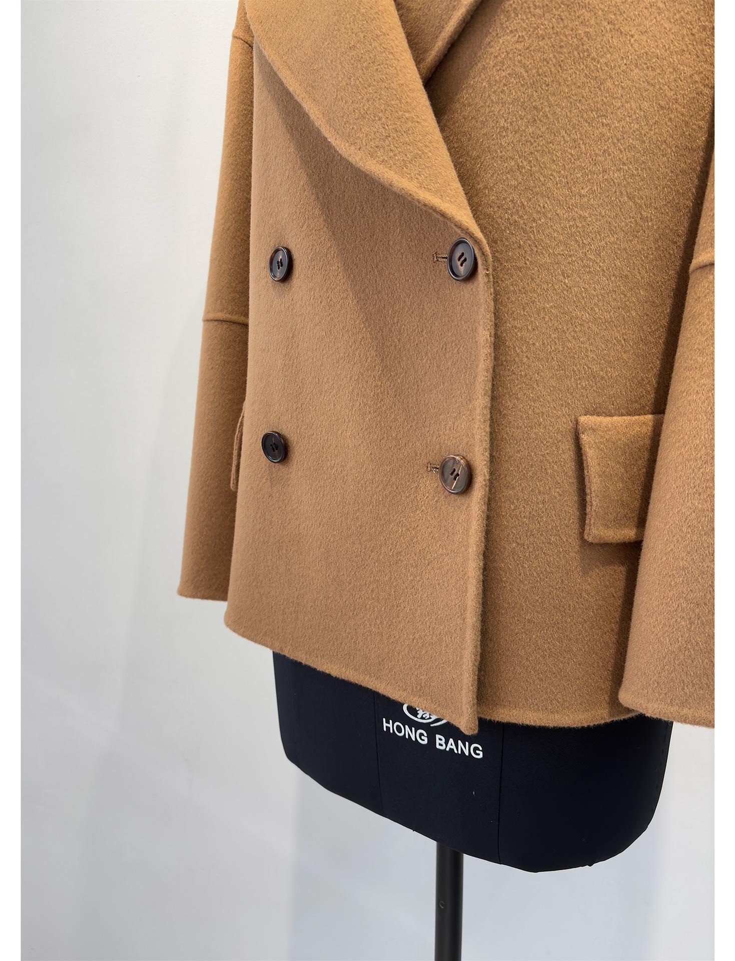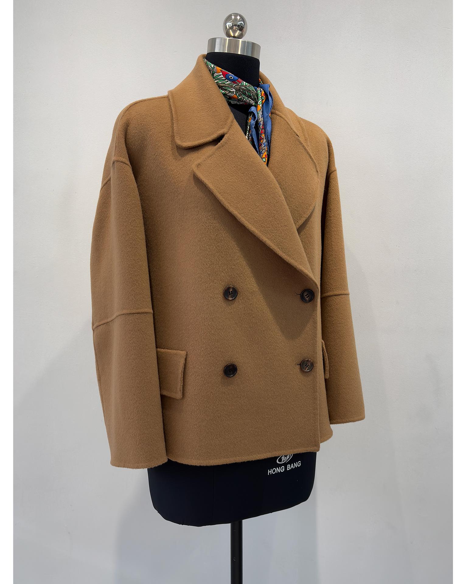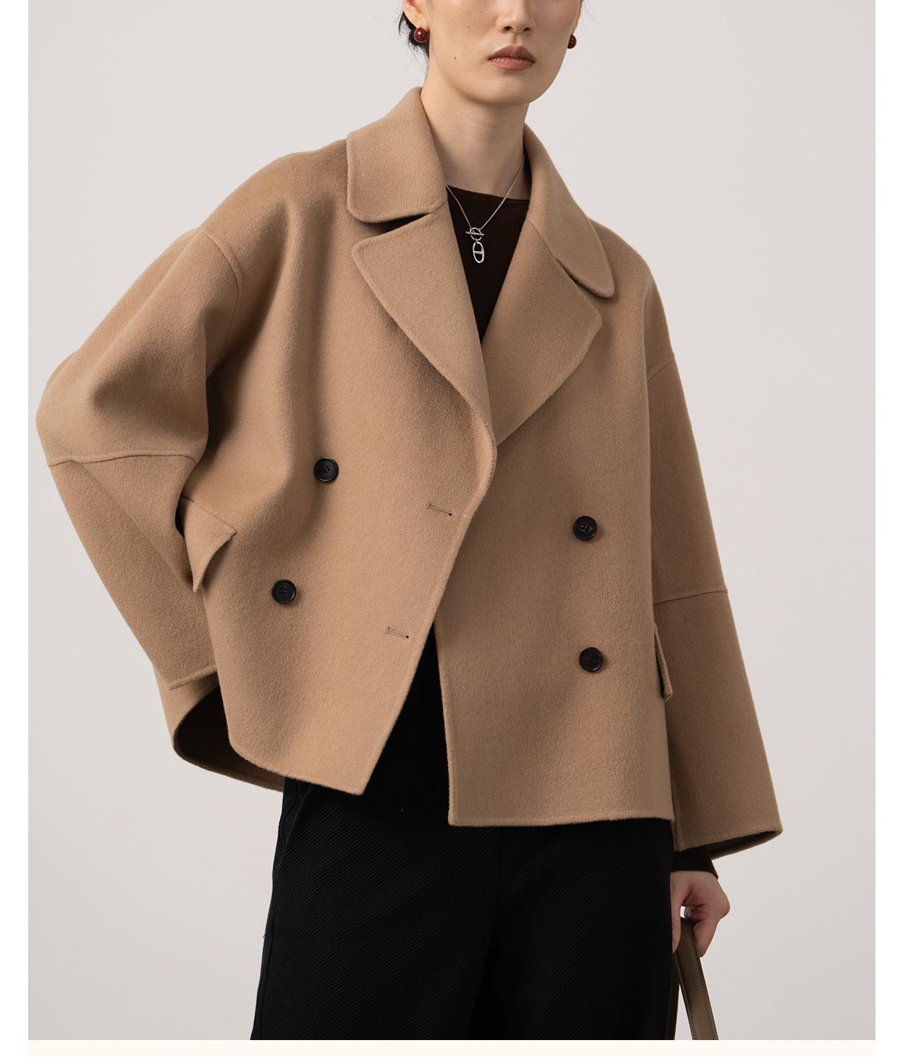 Textura Ligera 25 Nuevo Estilo Solapa Mangas Anchas Cuatro Botones Doble Vista 10 Cachemira Ropa Exterior Chaqueta Corta Chaqueta para Mujer Otoño e Invierno