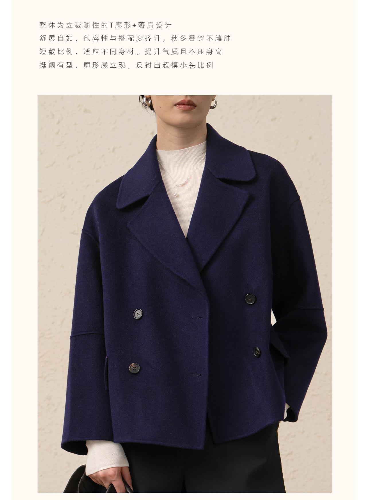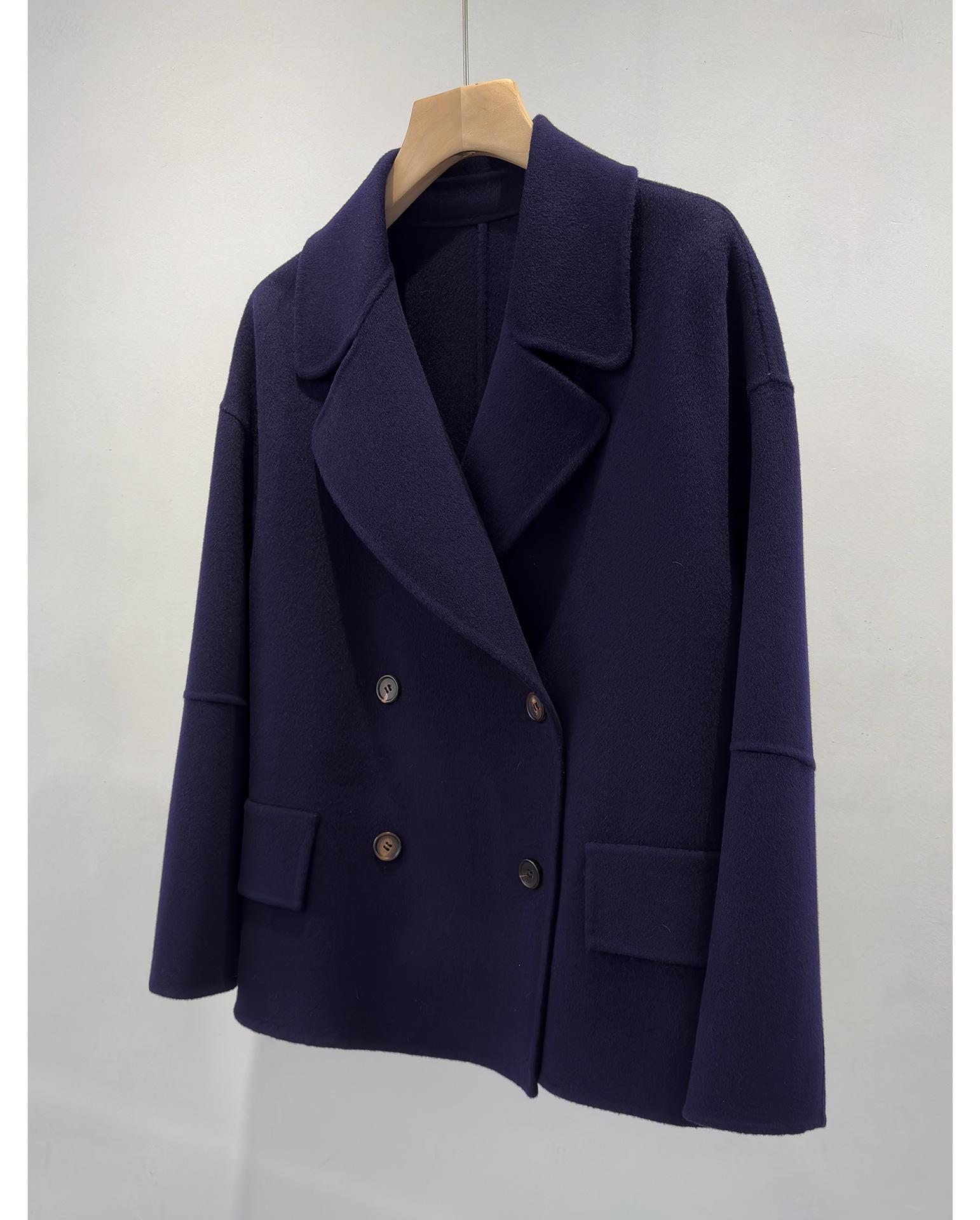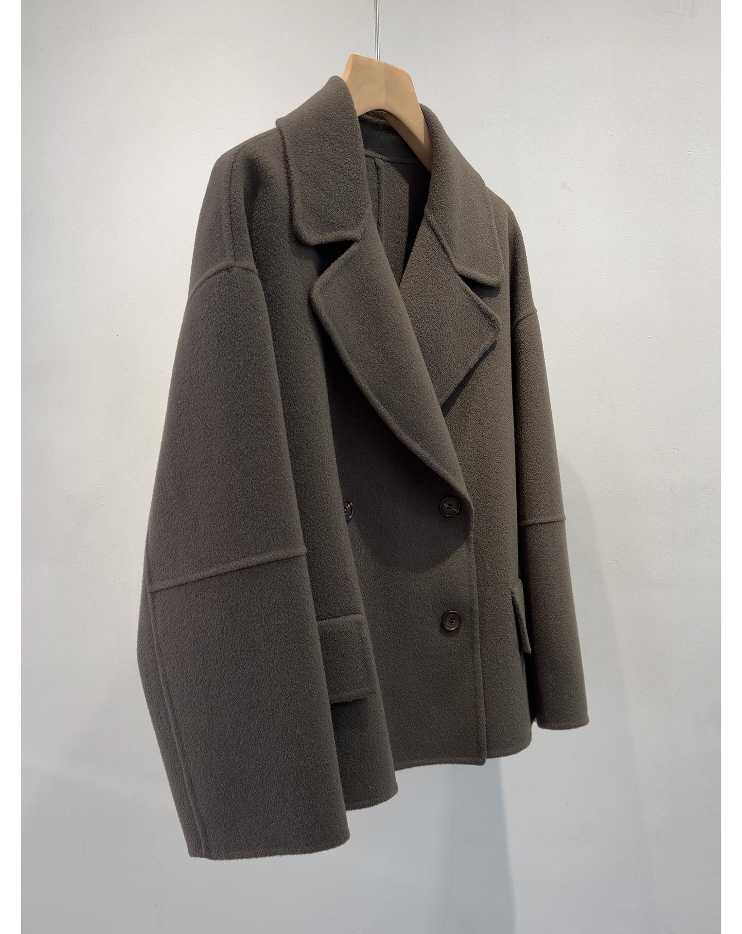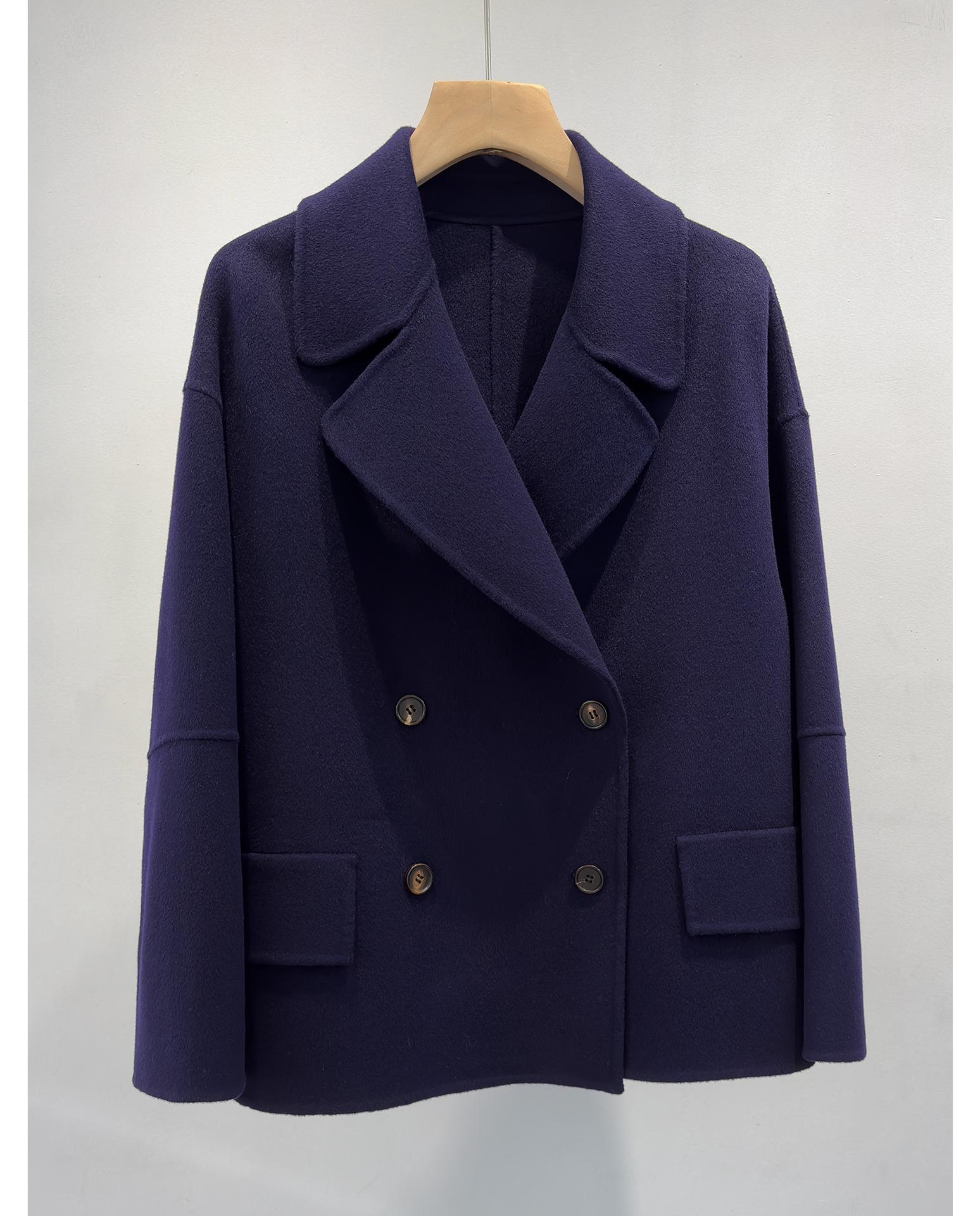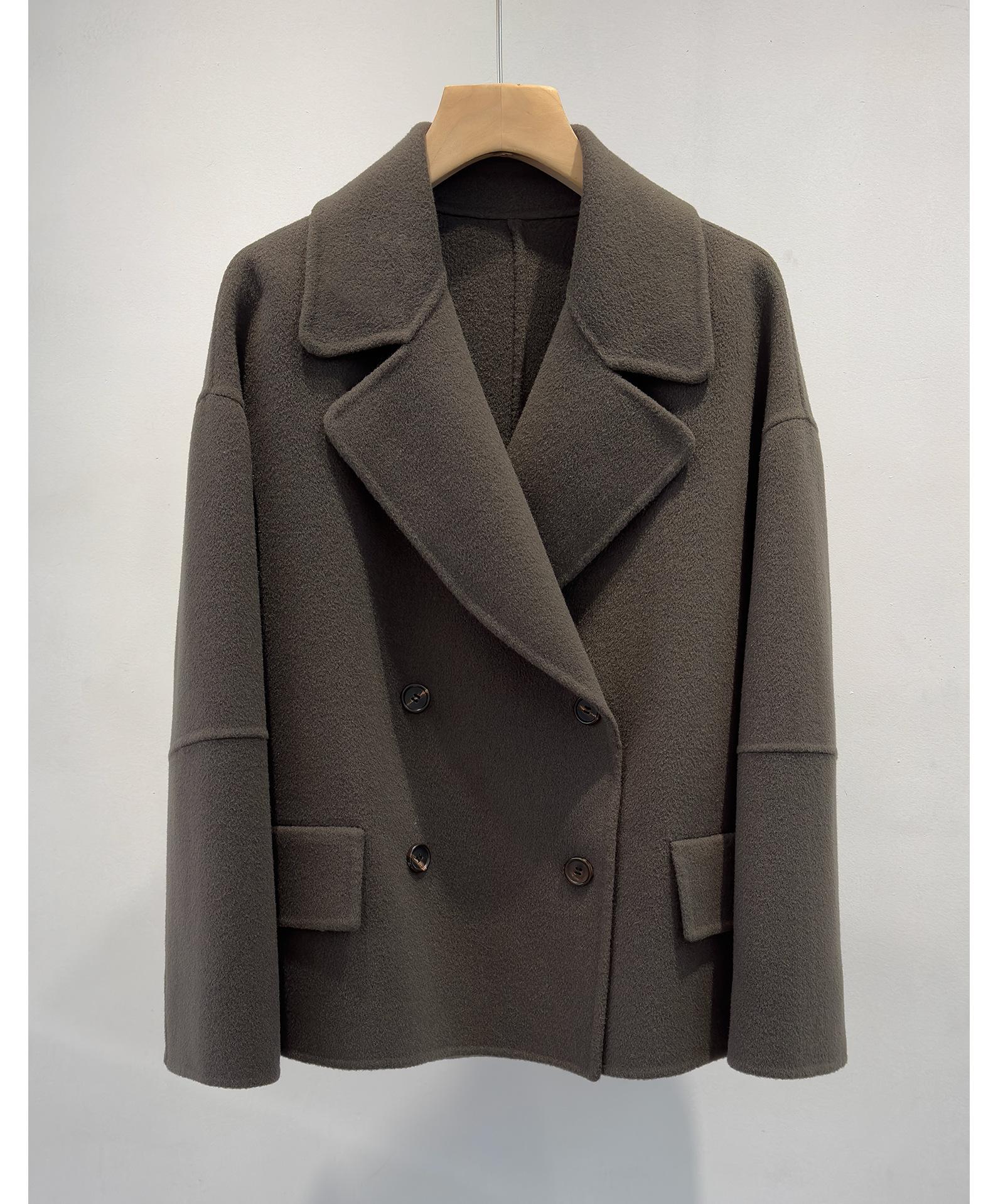 Textura Ligera 25 Nuevo Estilo Solapa Mangas Anchas Cuatro Botones Doble Vista 10 Cachemira Ropa Exterior Chaqueta Corta Chaqueta para Mujer Otoño e Invierno