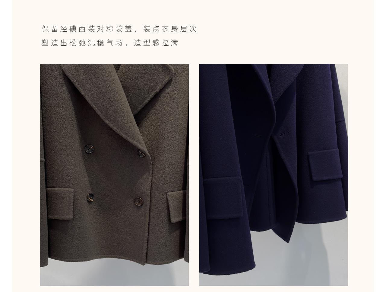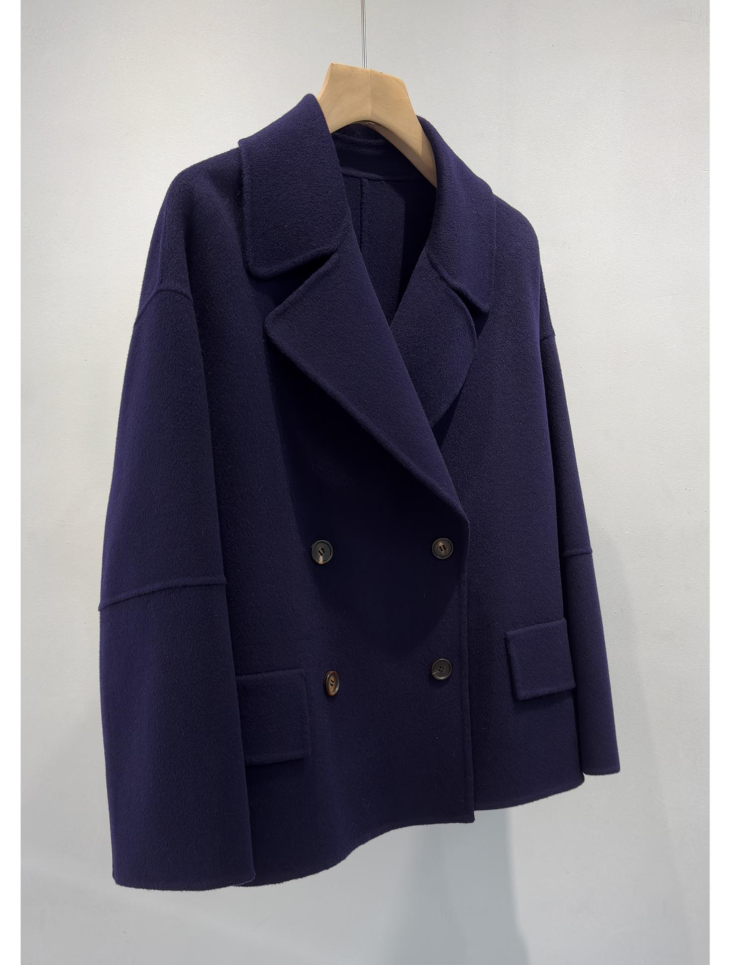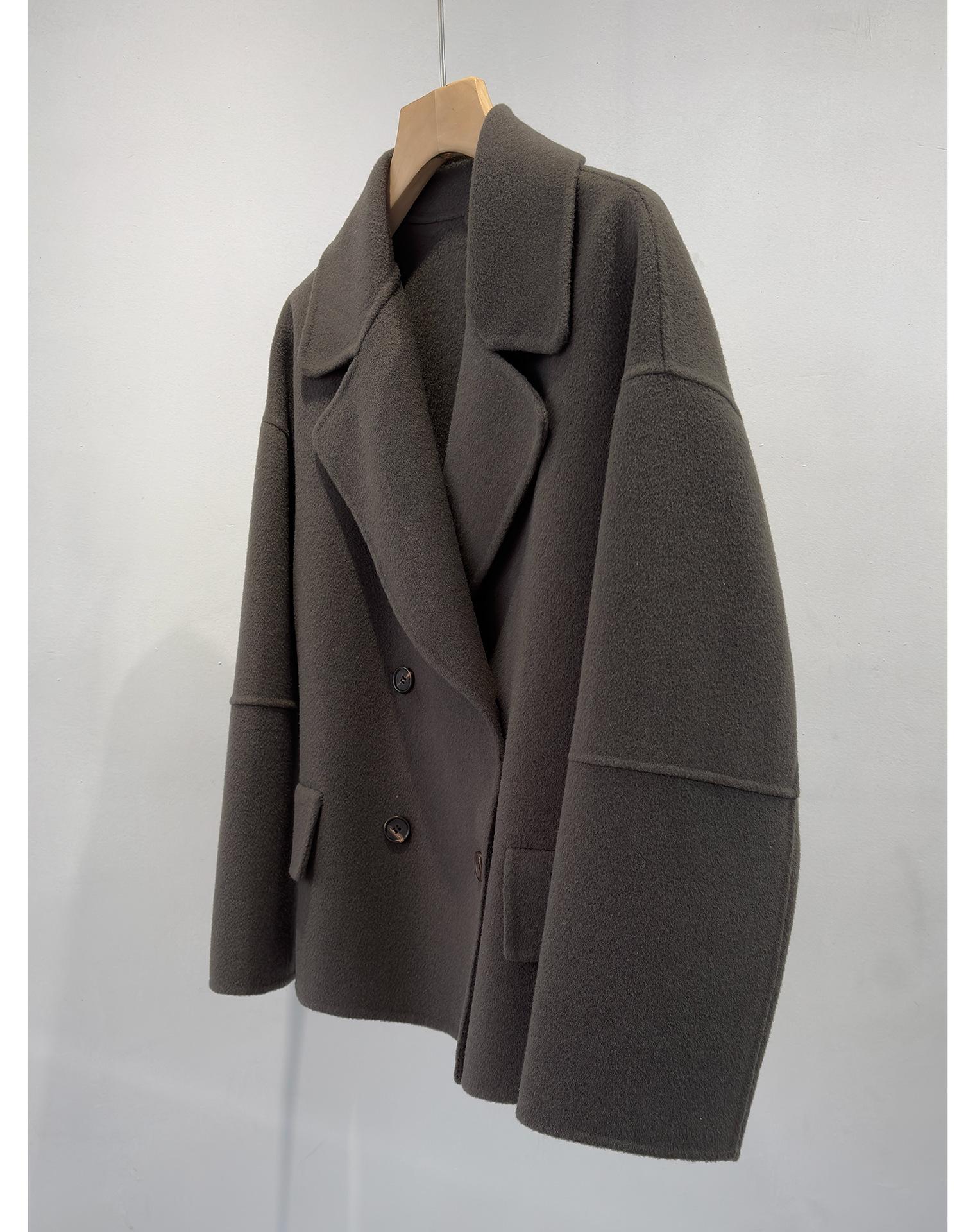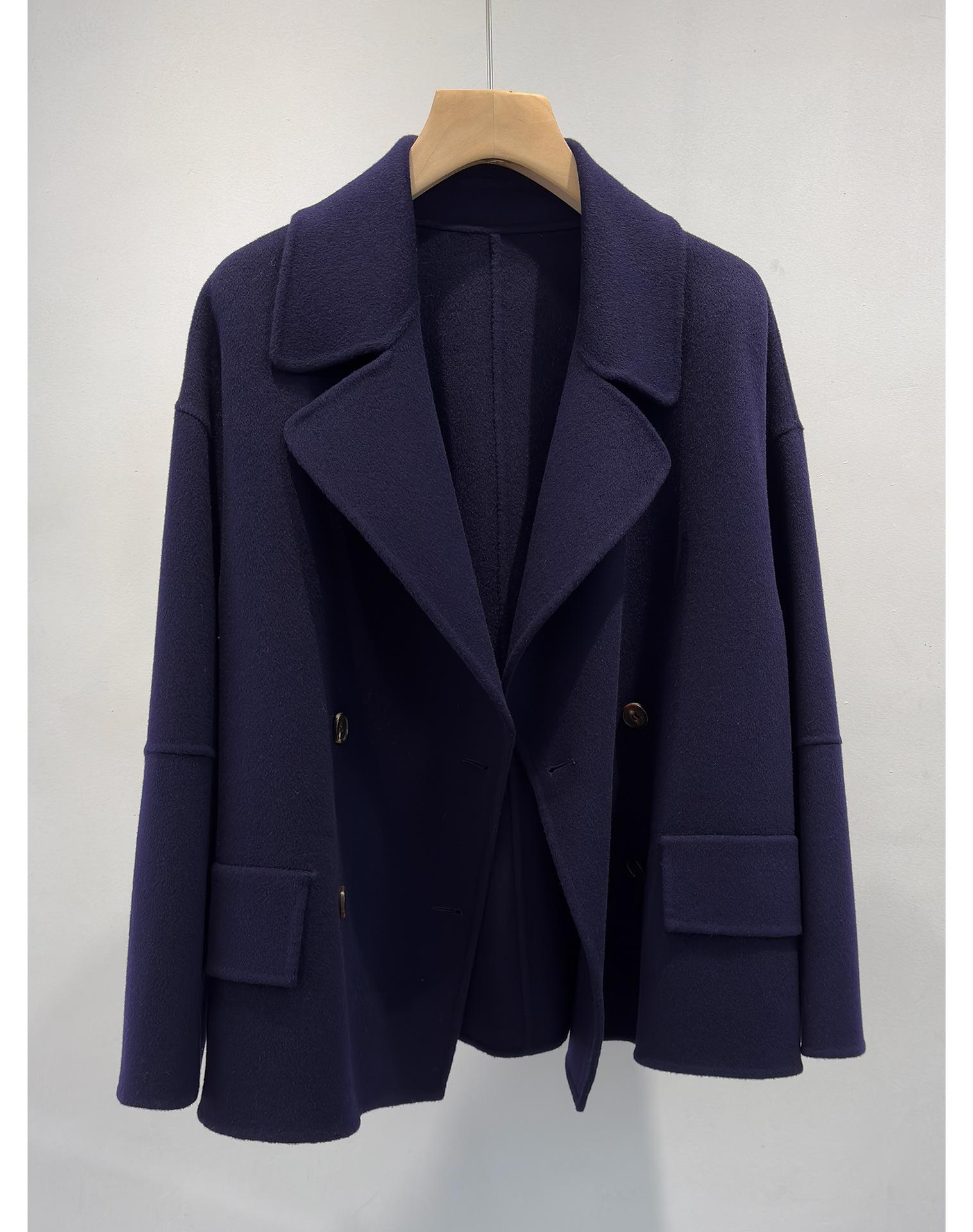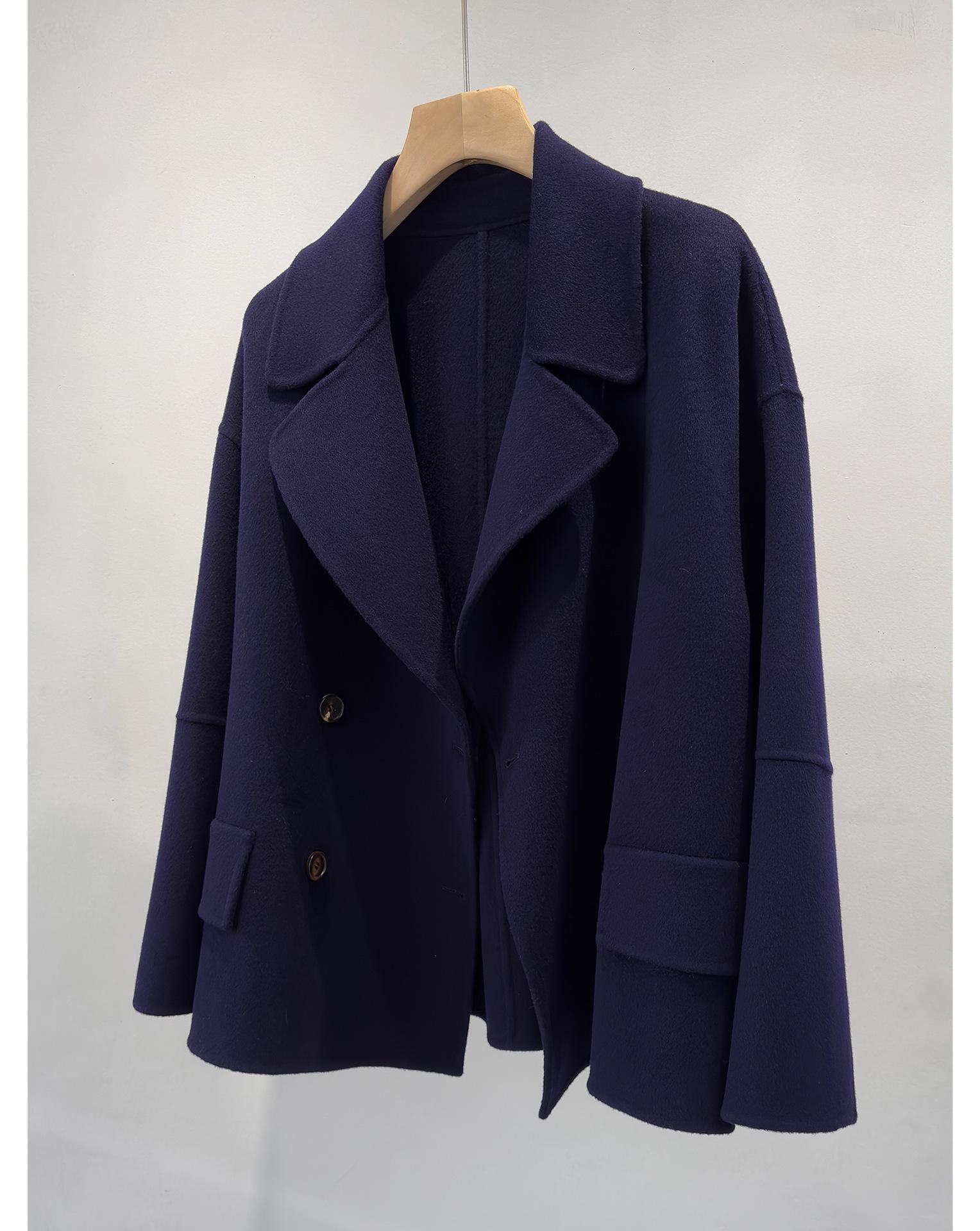 Textura Ligera 25 Nuevo Estilo Solapa Mangas Anchas Cuatro Botones Doble Vista 10 Cachemira Ropa Exterior Chaqueta Corta Chaqueta para Mujer Otoño e Invierno