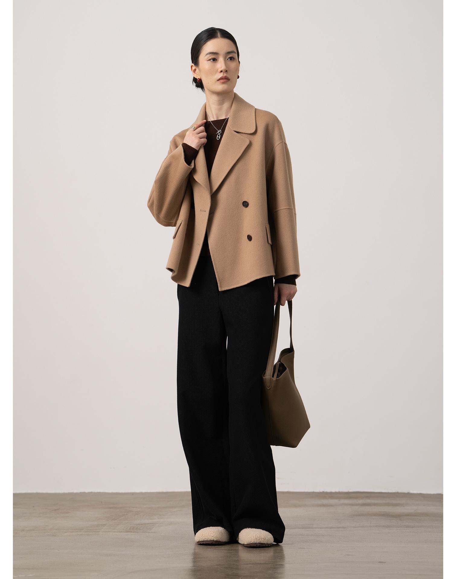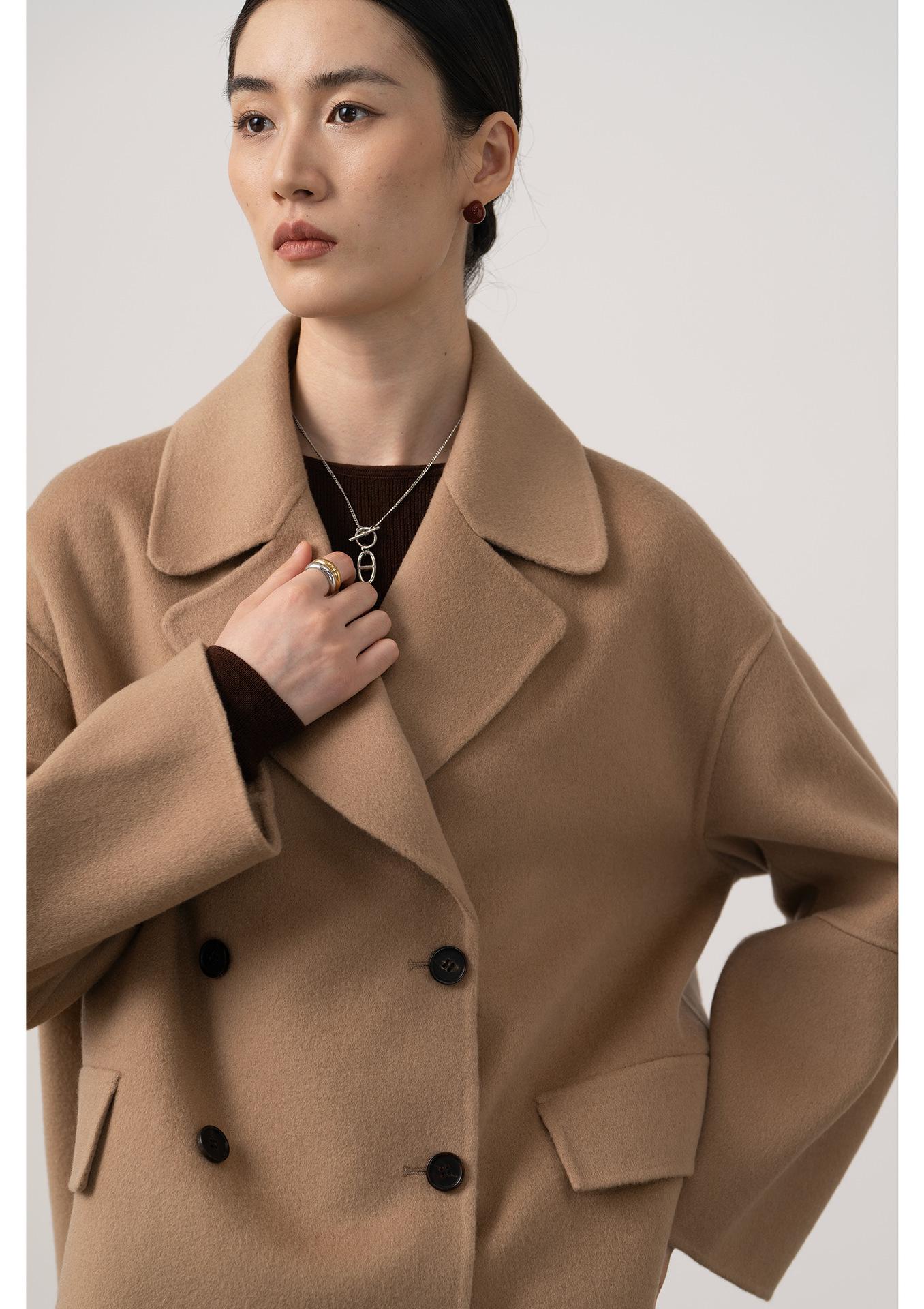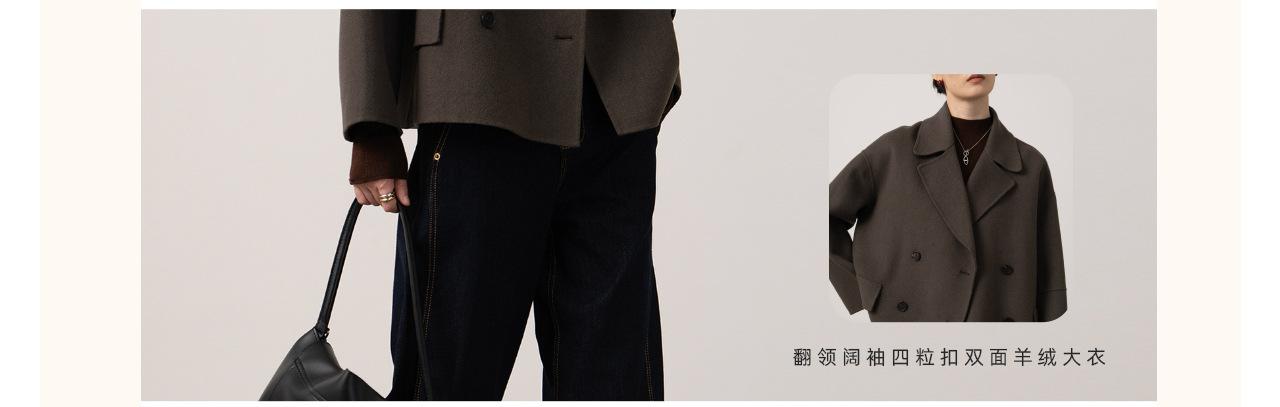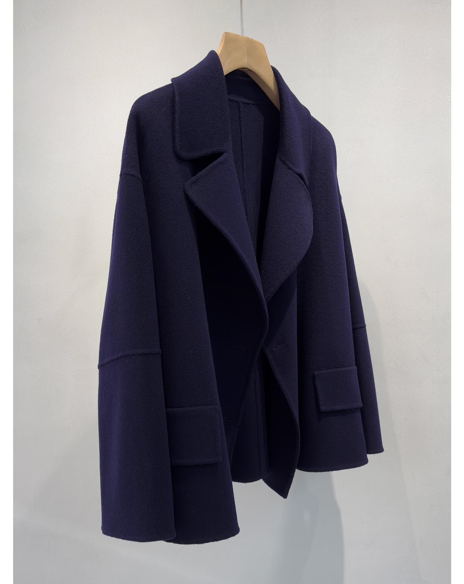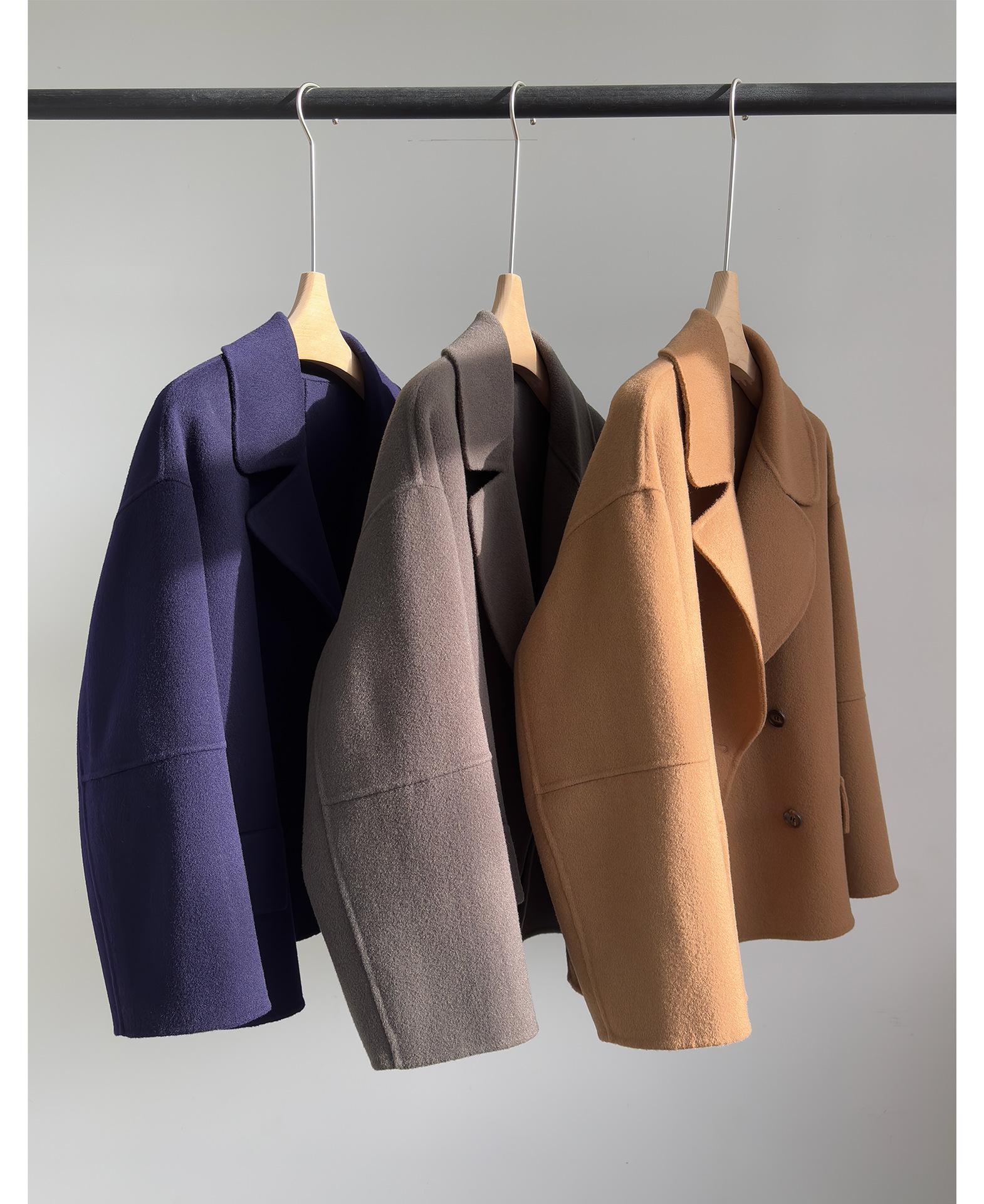 Textura Ligera 25 Nuevo Estilo Solapa Mangas Anchas Cuatro Botones Doble Vista 10 Cachemira Ropa Exterior Chaqueta Corta Chaqueta para Mujer Otoño e Invierno