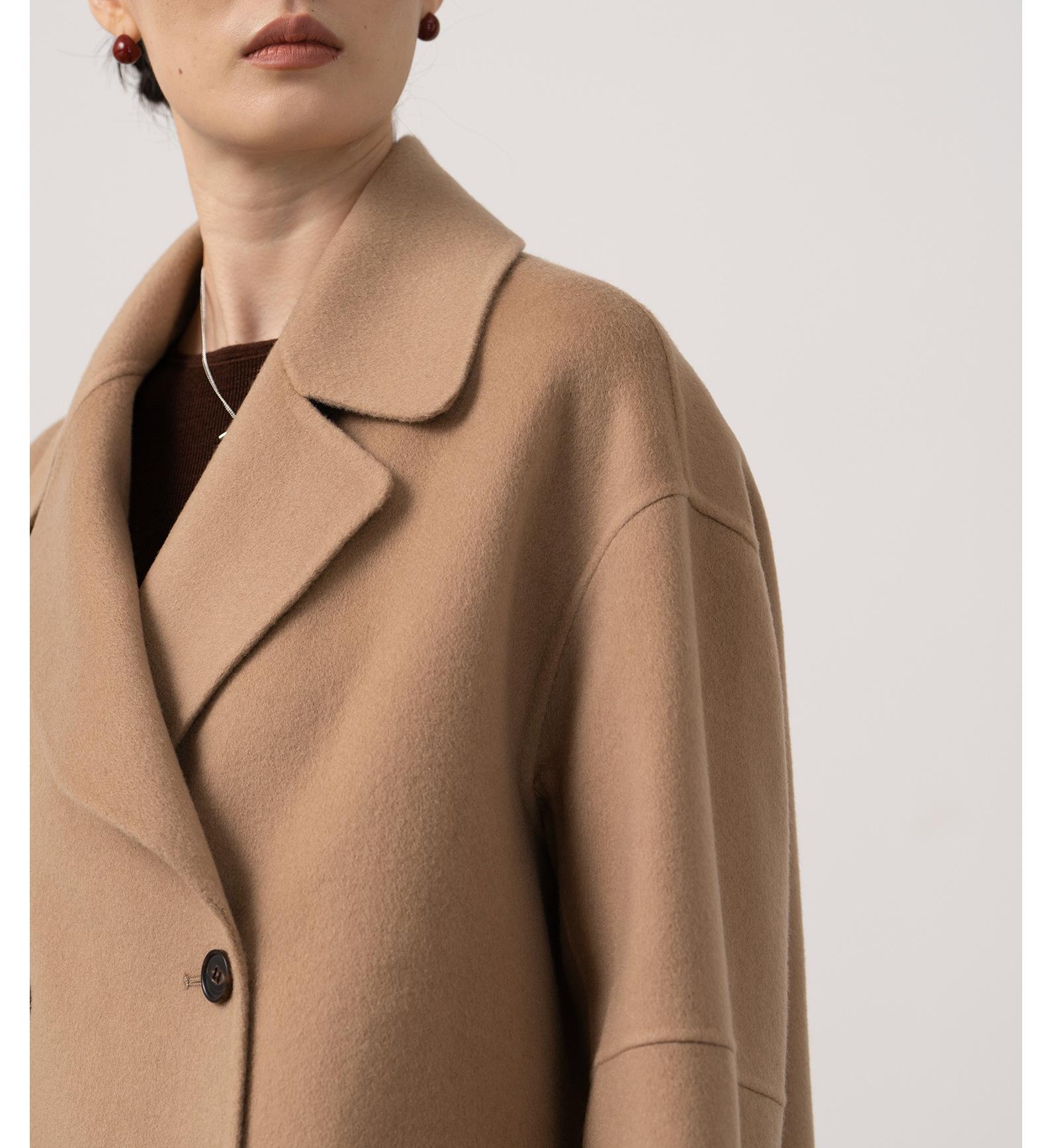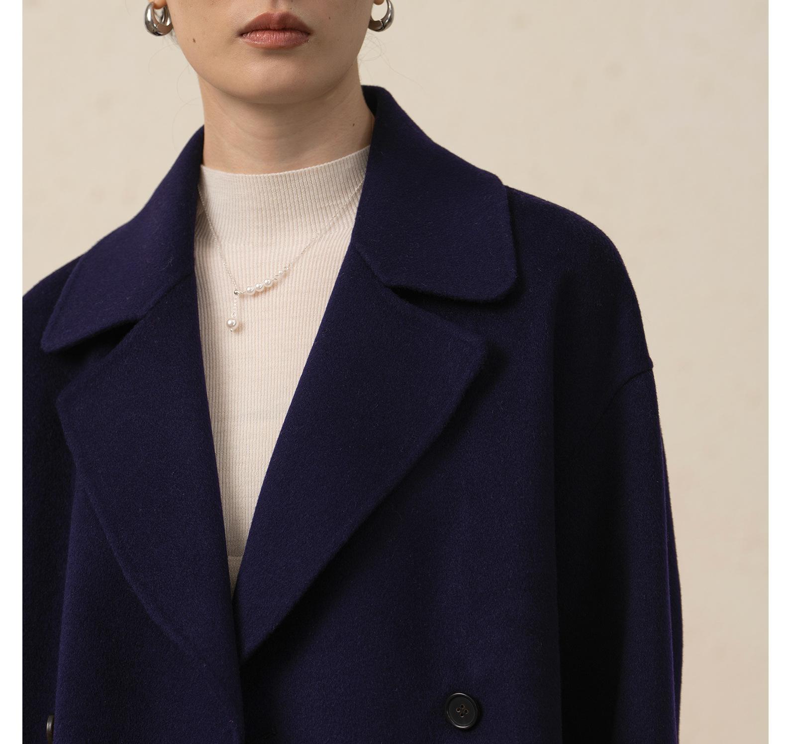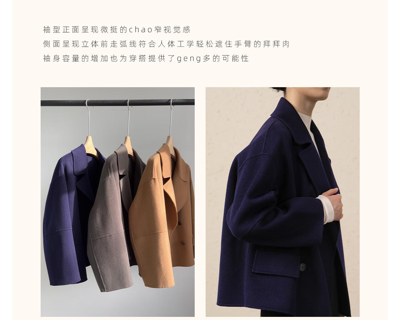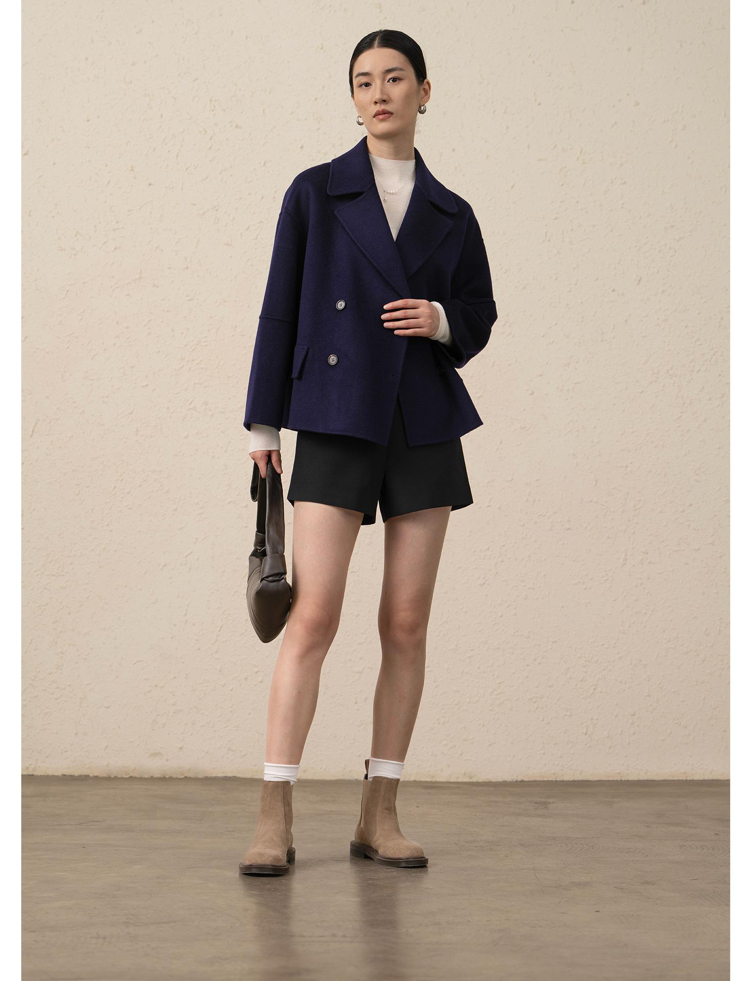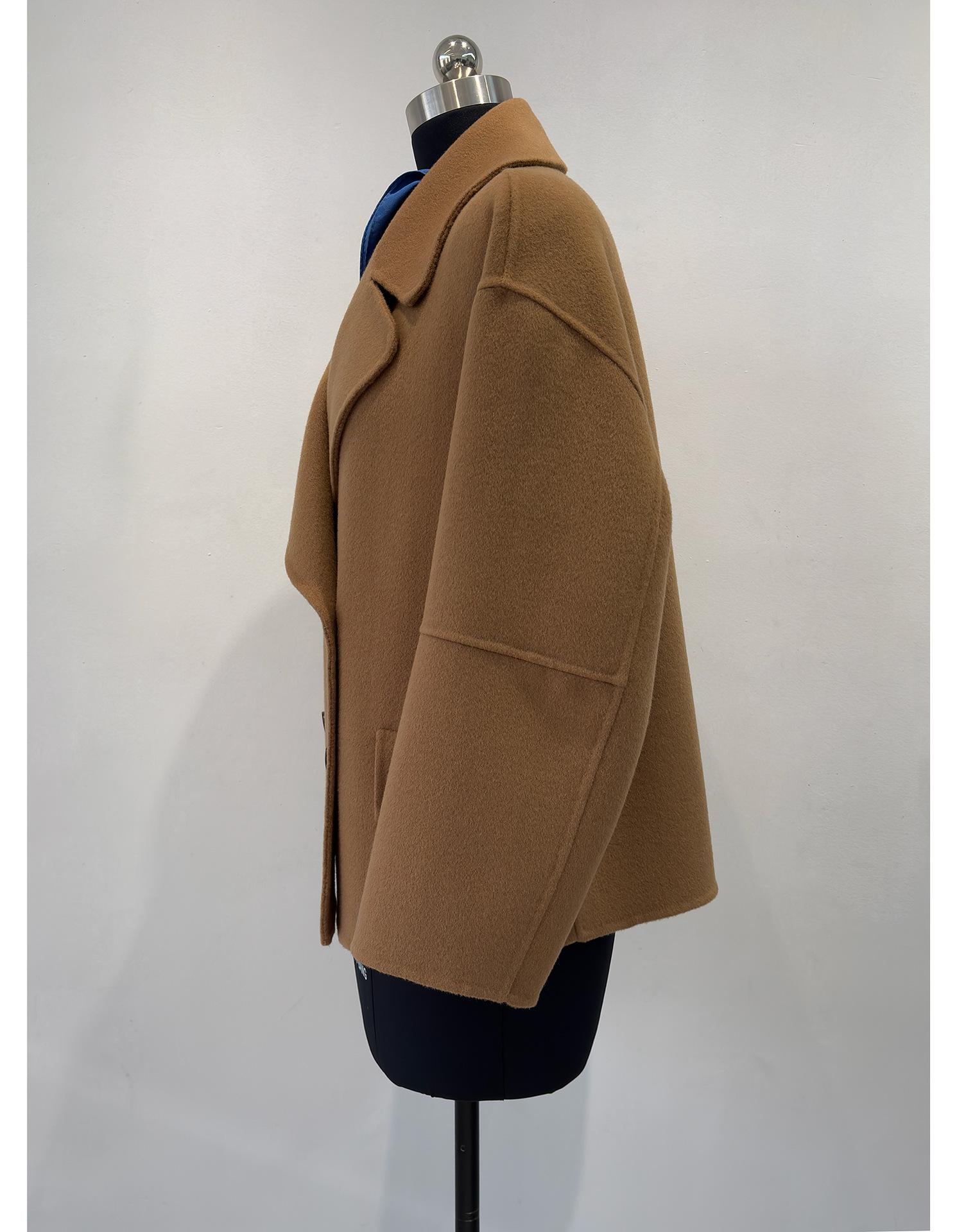 Textura Ligera 25 Nuevo Estilo Solapa Mangas Anchas Cuatro Botones Doble Vista 10 Cachemira Ropa Exterior Chaqueta Corta Chaqueta para Mujer Otoño e Invierno