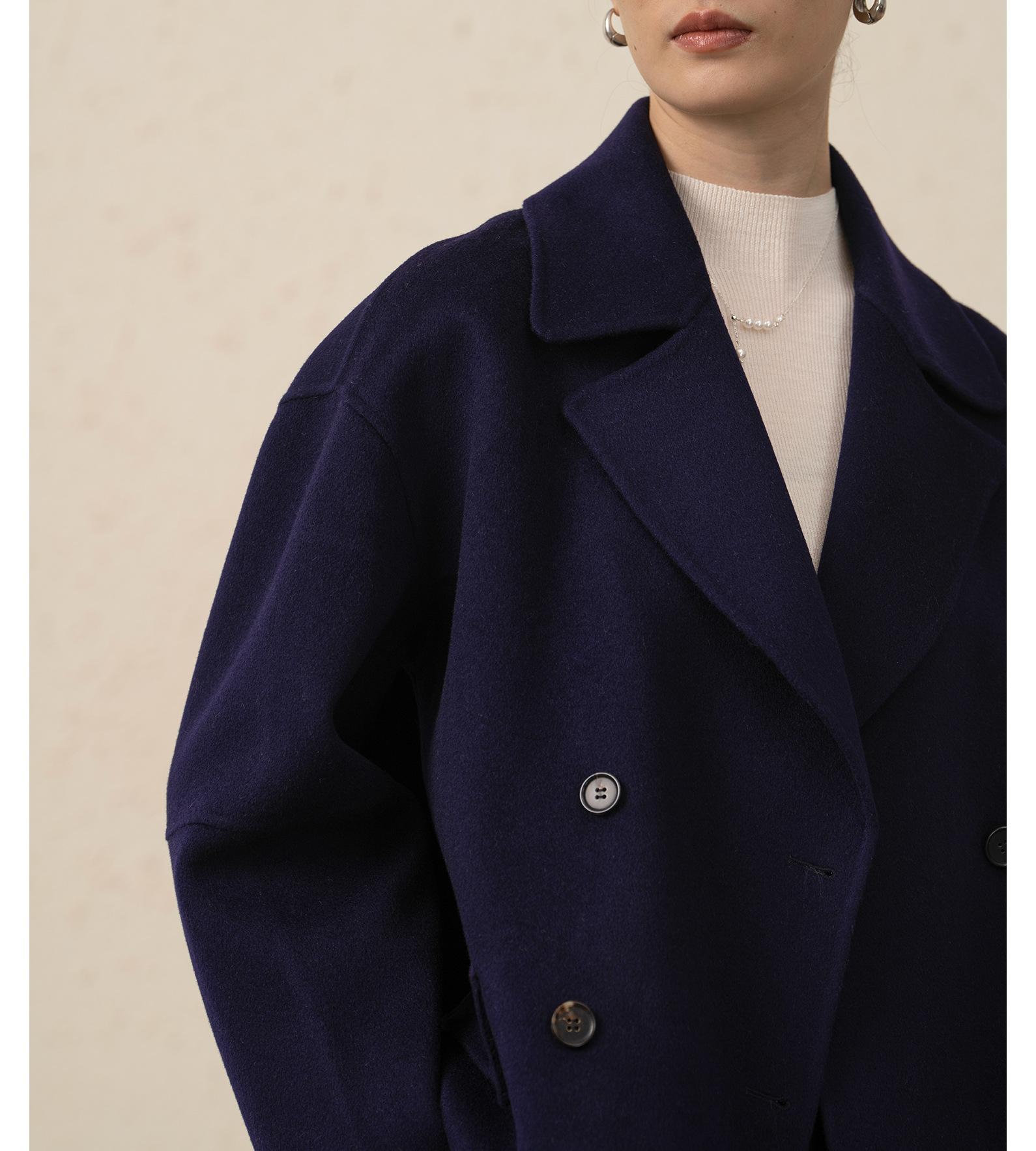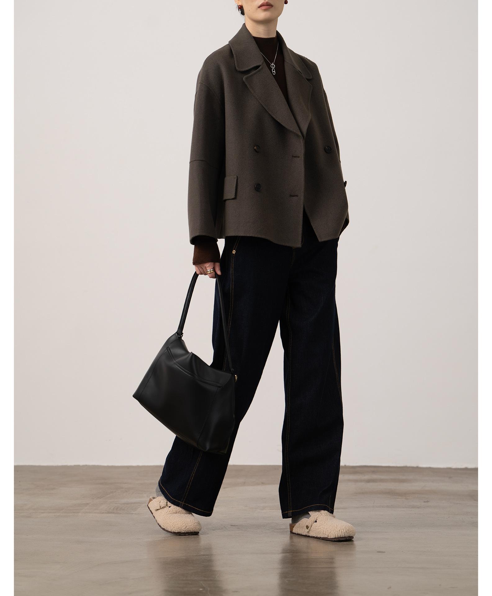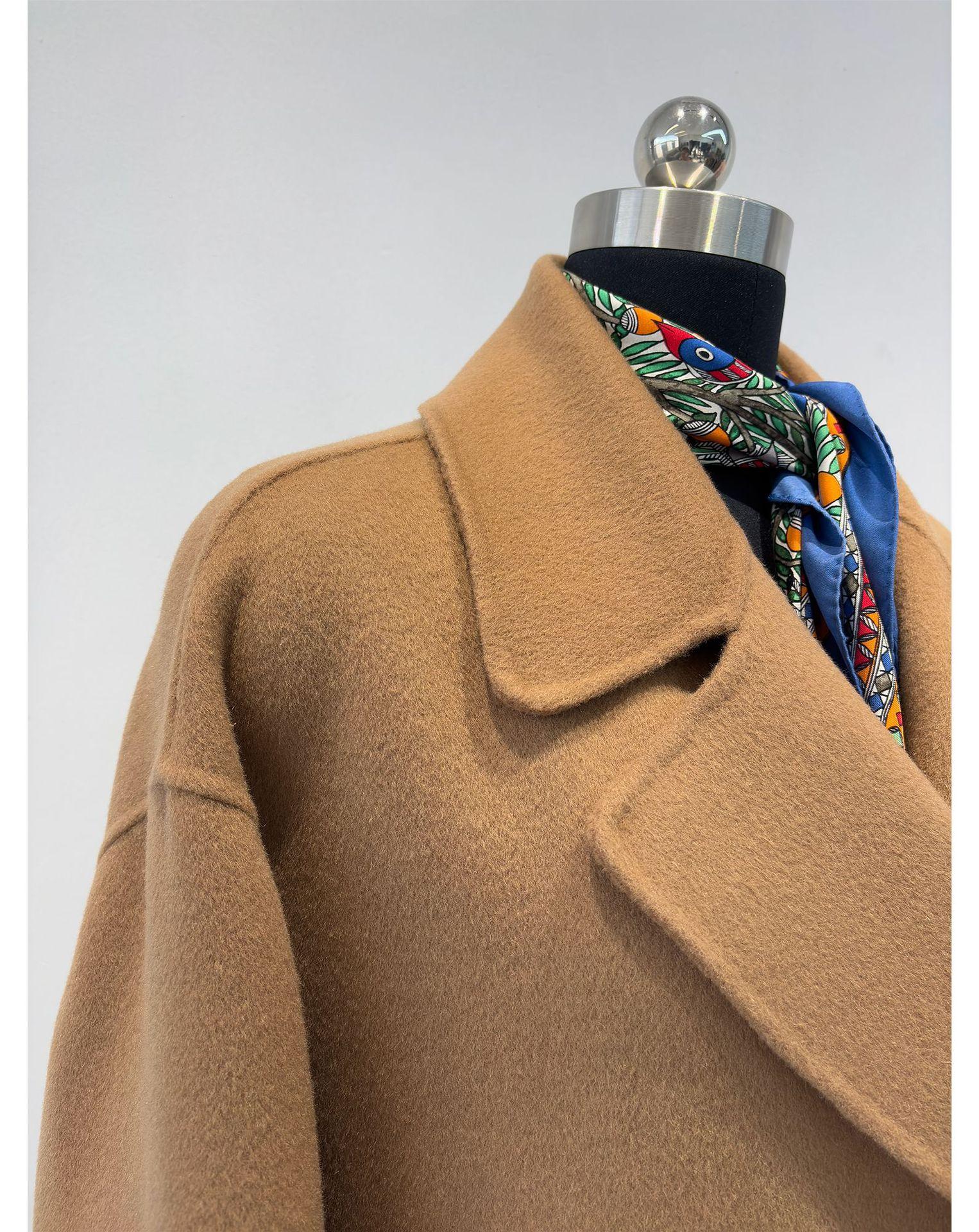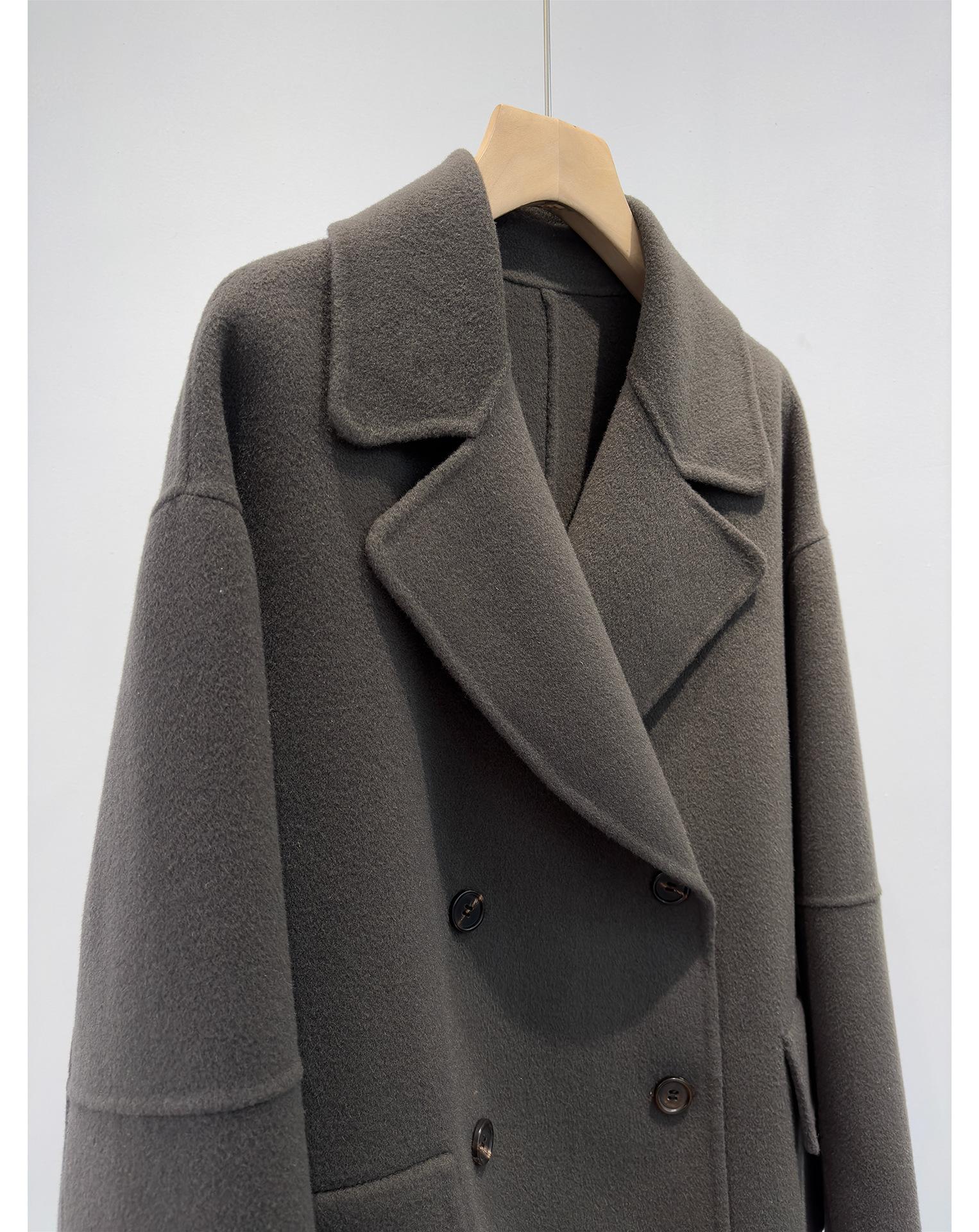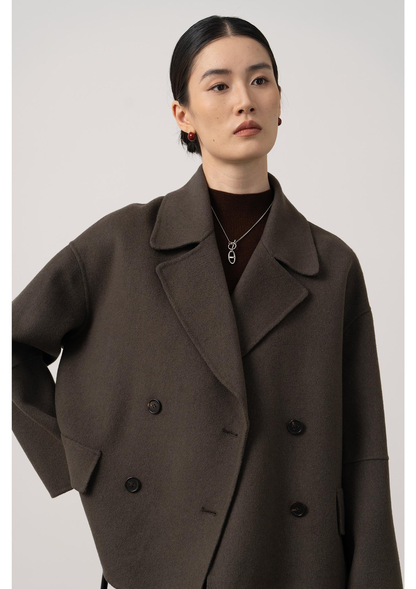 Textura Ligera 25 Nuevo Estilo Solapa Mangas Anchas Cuatro Botones Doble Vista 10 Cachemira Ropa Exterior Chaqueta Corta Chaqueta para Mujer Otoño e Invierno