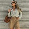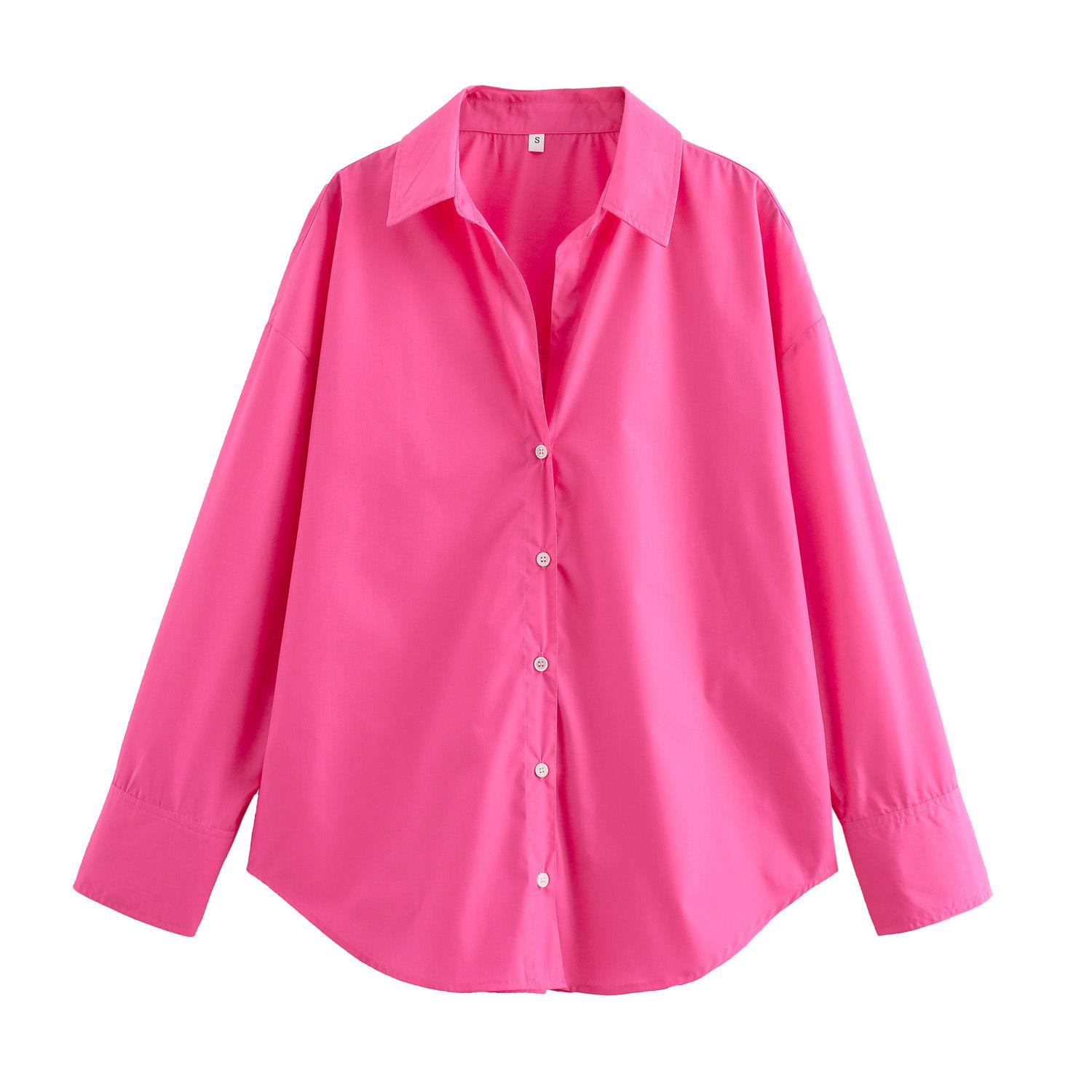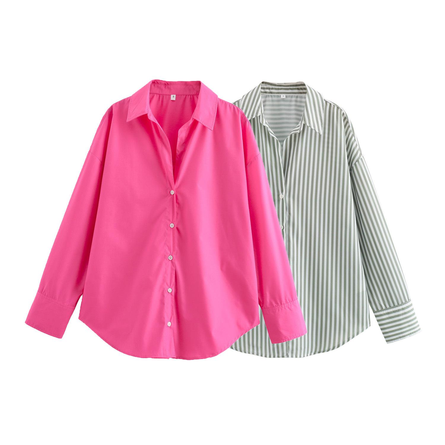 Ropa de mujer de estilo europeo y americano transfronterizo 2024, nueva camisa holgada informal versátil de popelina básica de manga larga con solapa y rayas.
