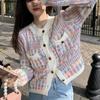Suéter cárdigan nuevo de otoño e invierno informal de talla grande con botones coloridos literarios estilo bosque con borde ondulado retro y cuello redondo para mujer
