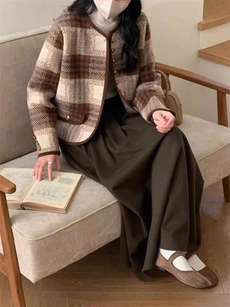 Vestido tipo suéter de cola de pez francés petite con abrigo, otoño e invierno 2024, holgado, de longitud media, de punto