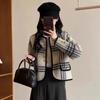 Cárdigan de punto con cuello de muñeca de encaje antiedad de estilo coreano dulce de otoño e invierno de 2024, abrigo de suéter de lana de mapache para mujer