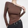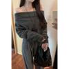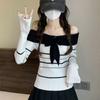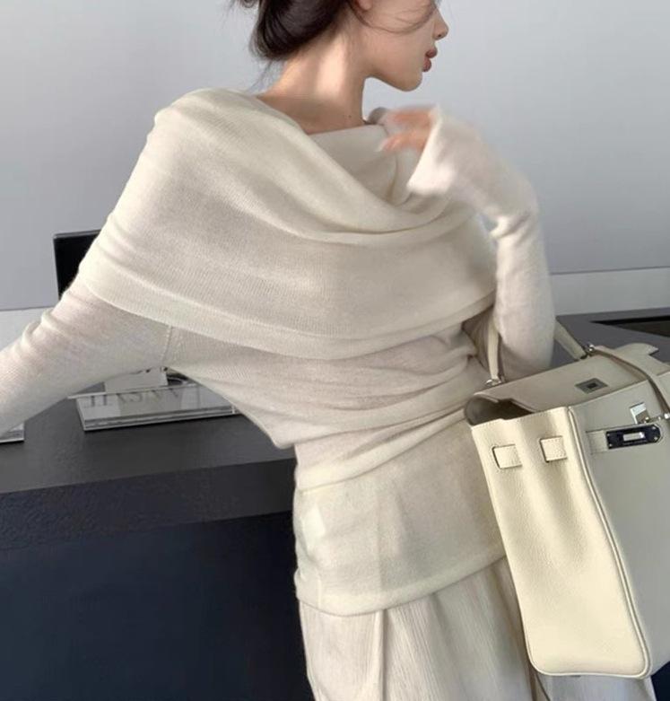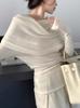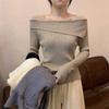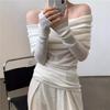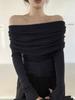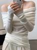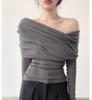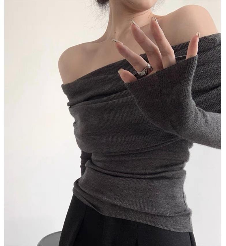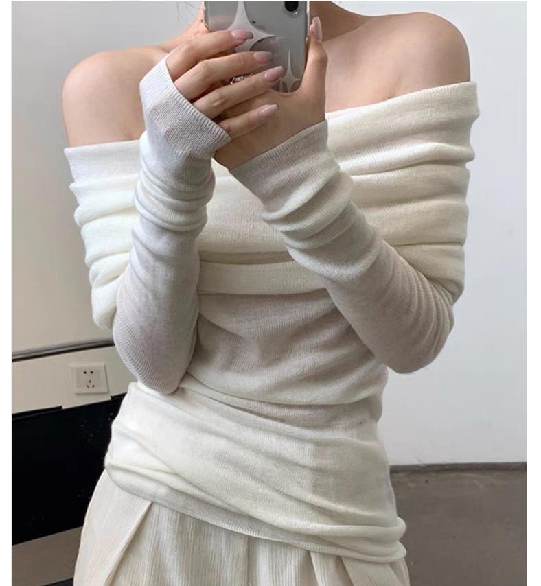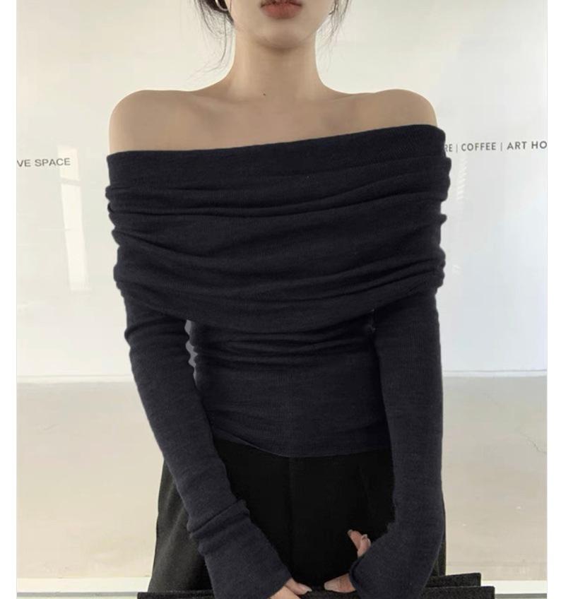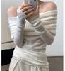 Camisa de punto interior sexy con hombros descubiertos de estilo francés para mujer, top de otoño ajustado con diseño de nicho plisado de alta calidad