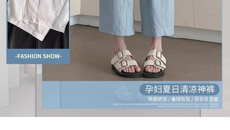 Pantalones de estilo coreano para mujeres embarazadas Verano Delgados Ropa exterior Mamá Hot Cordón Casual Sueltos Pierna ancha Casual Pantalones de rábano para mujeres embarazadas
