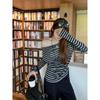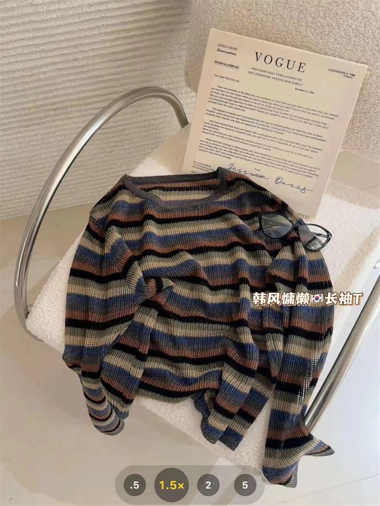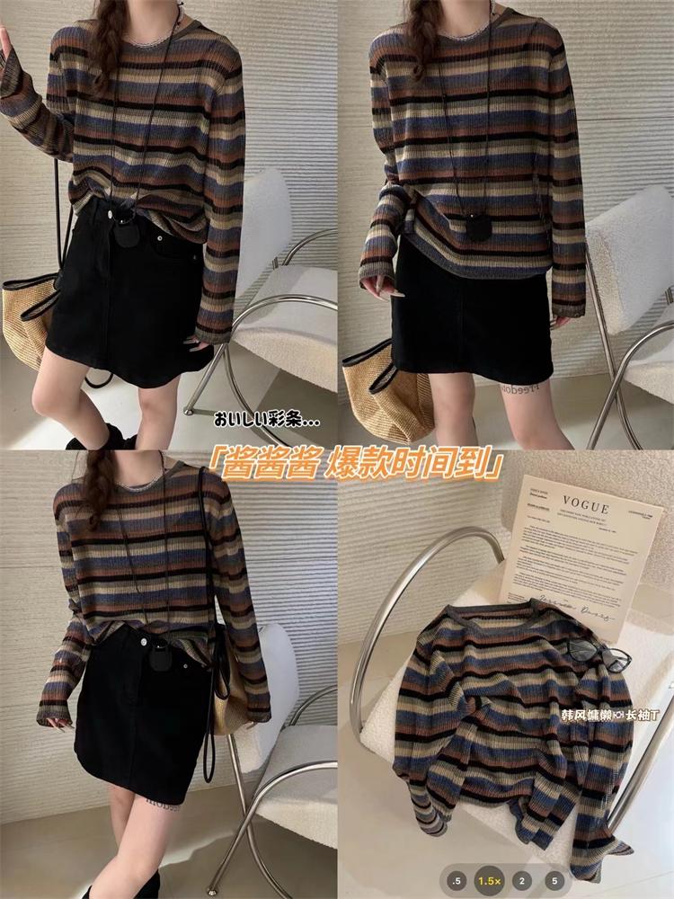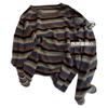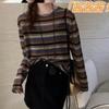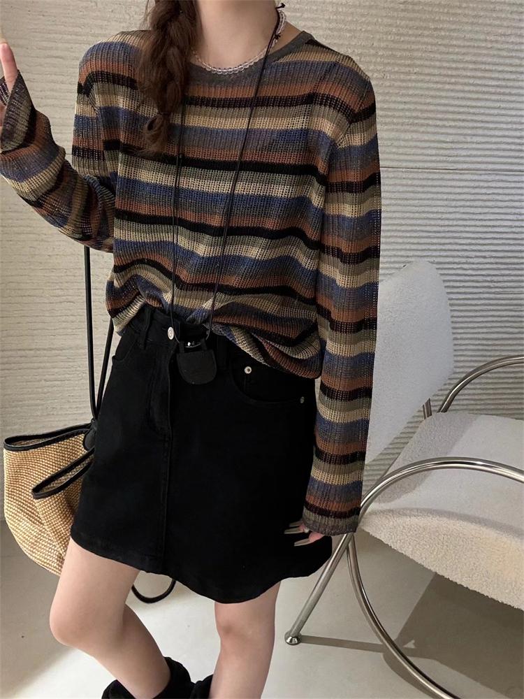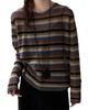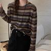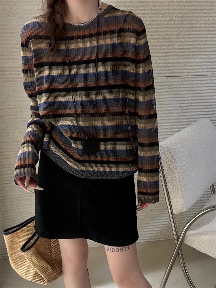 Suéter coreano de estilo holgazán de cuello redondo a rayas para mujer 2024 otoño nuevo diseño moda nicho blusa protección solar