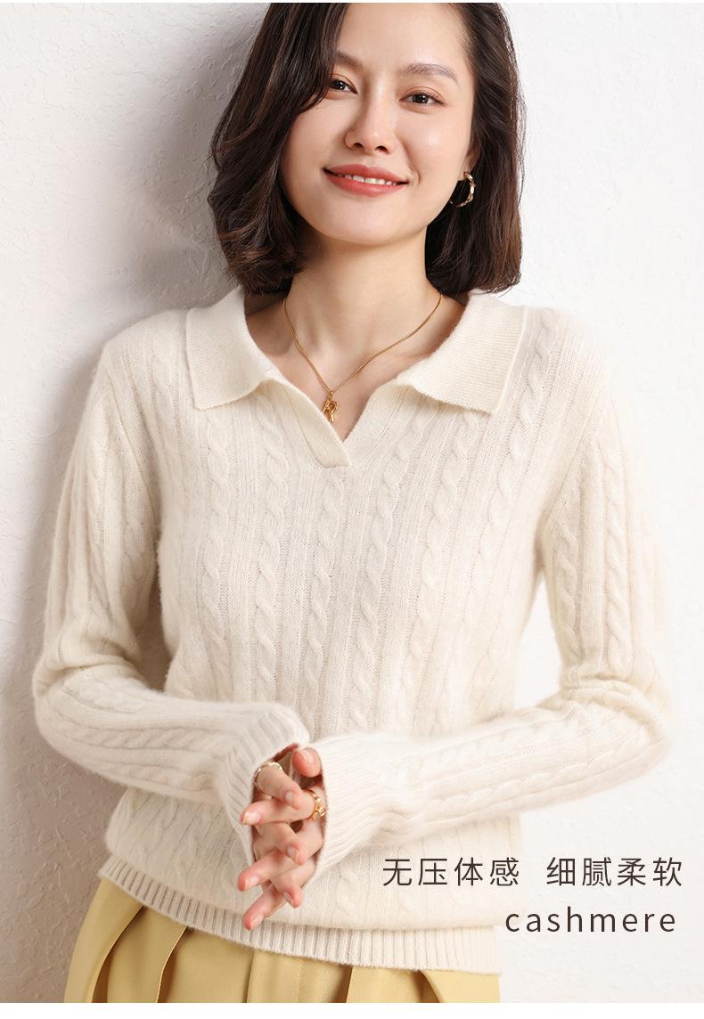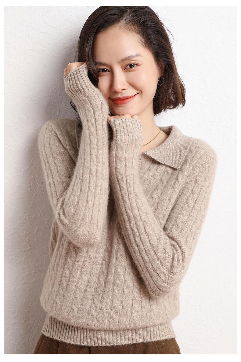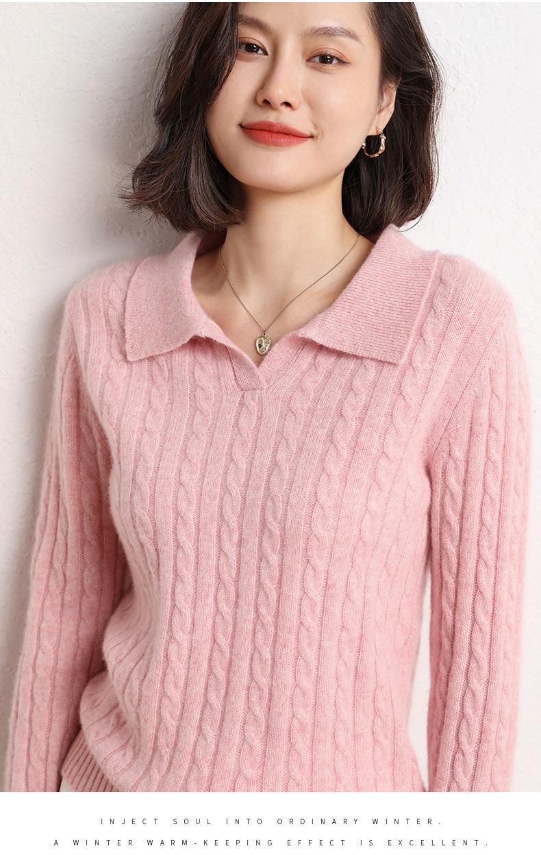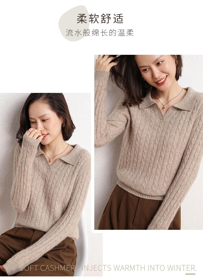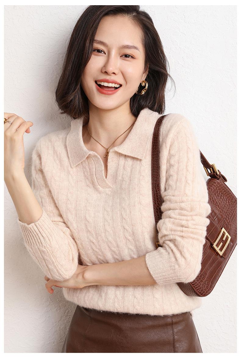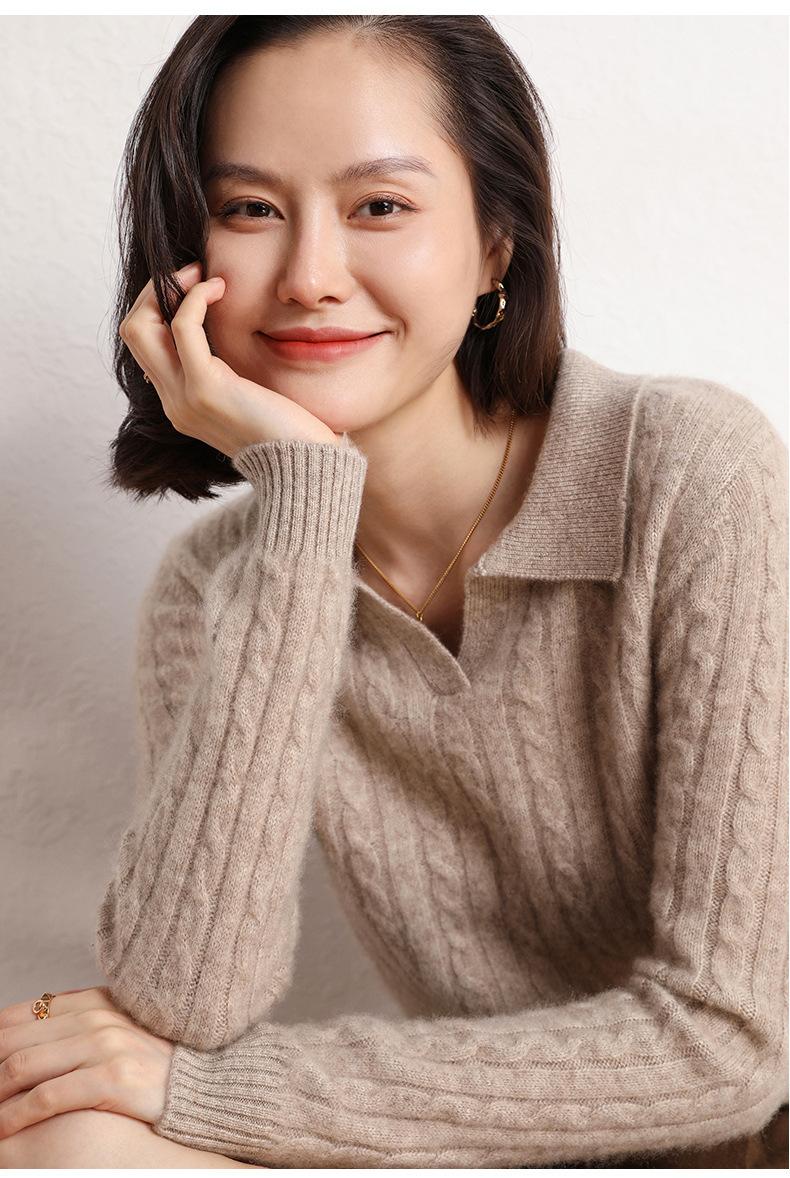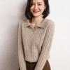 Suéter de cachemira con cuello POLO para mujer, otoño e invierno 2024, nuevo jersey corto de punto holgado y ajustado con solapa