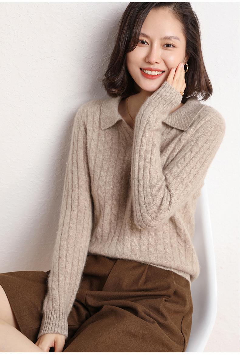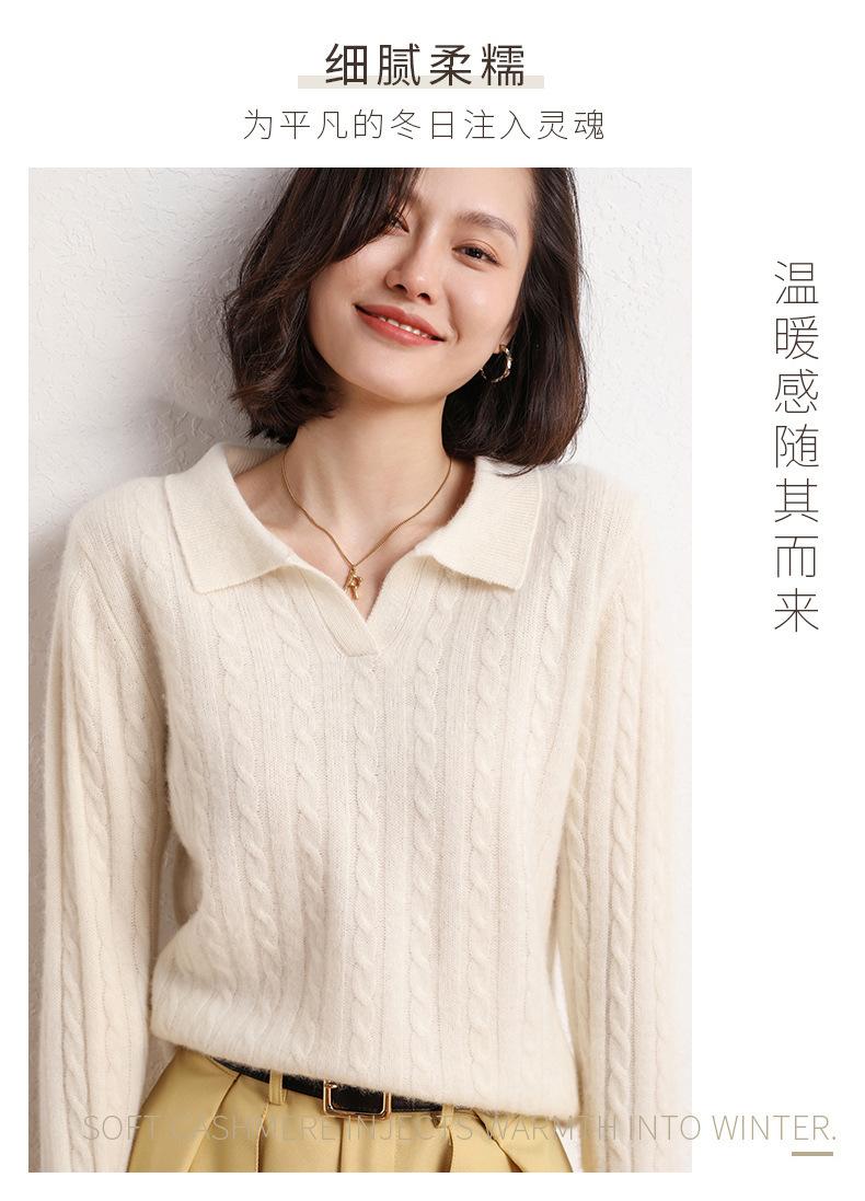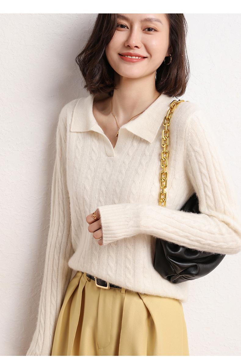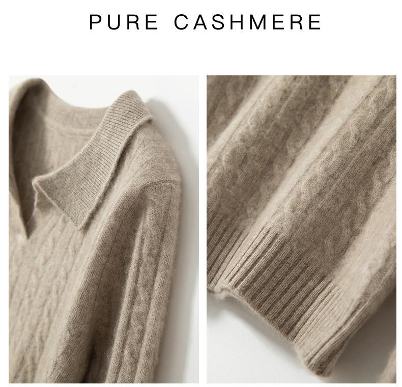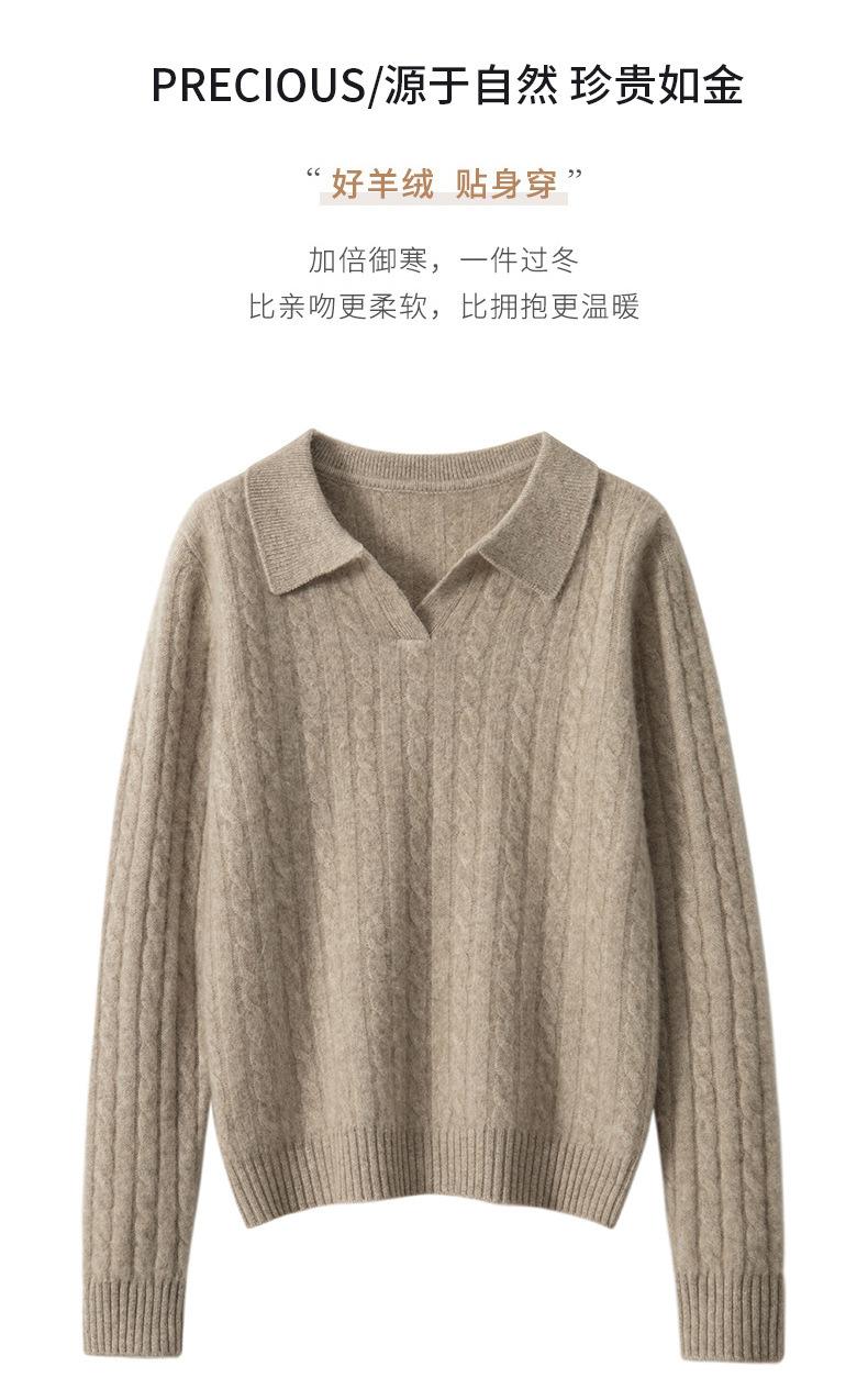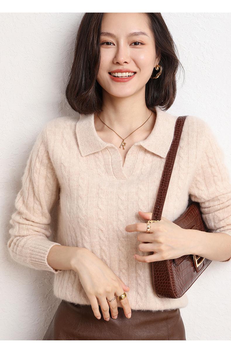 Suéter de cachemira con cuello POLO para mujer, otoño e invierno 2024, nuevo jersey corto de punto holgado y ajustado con solapa