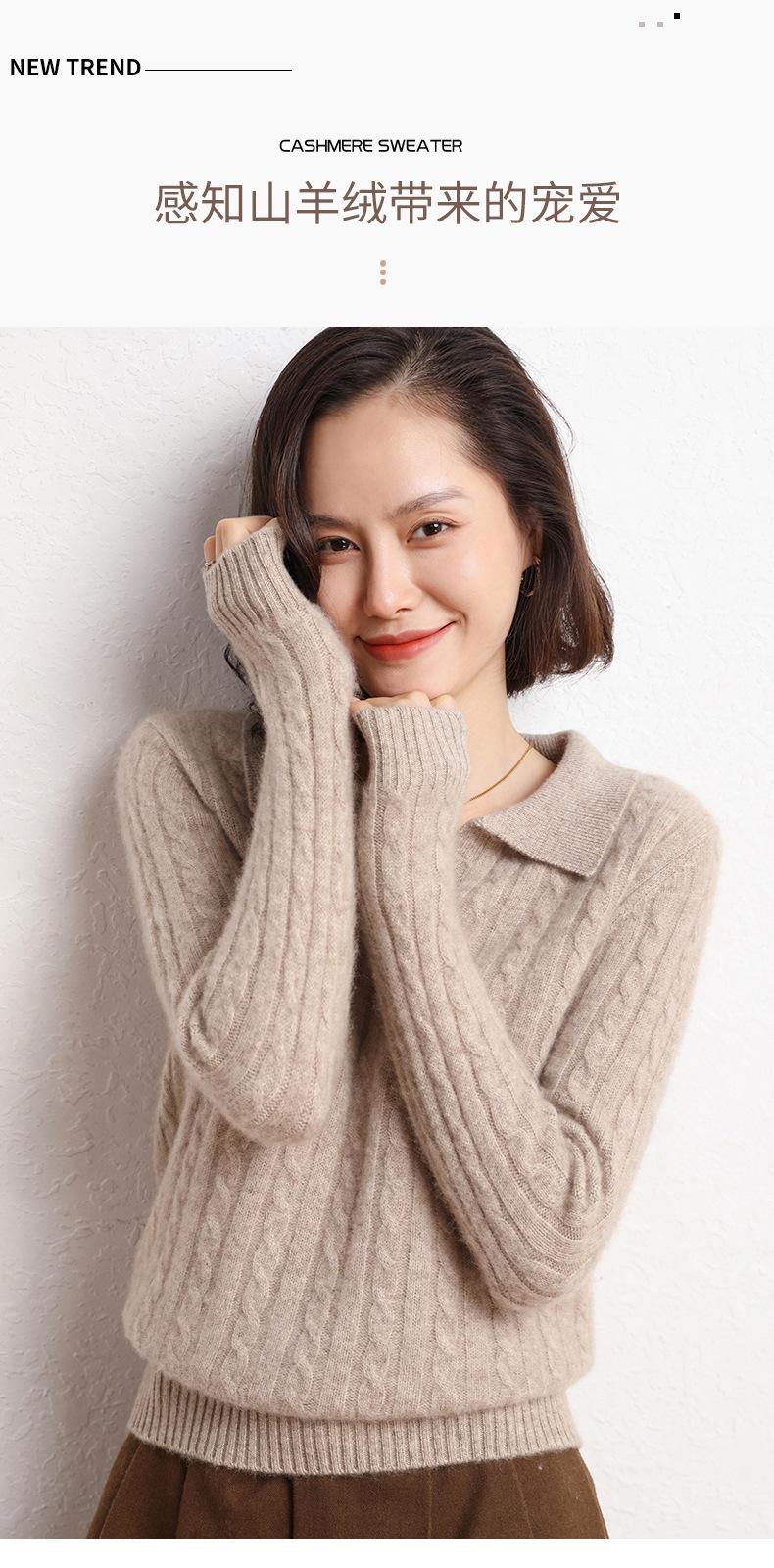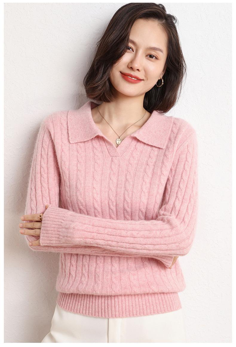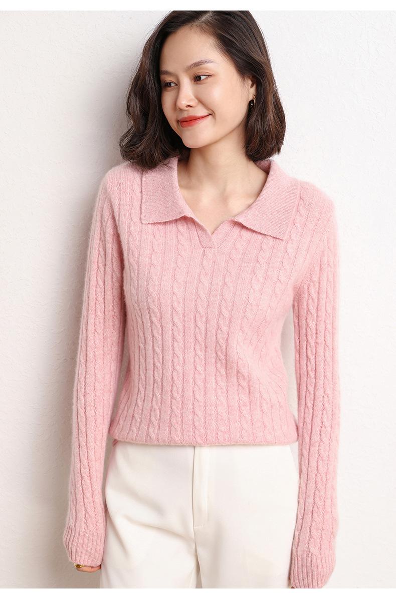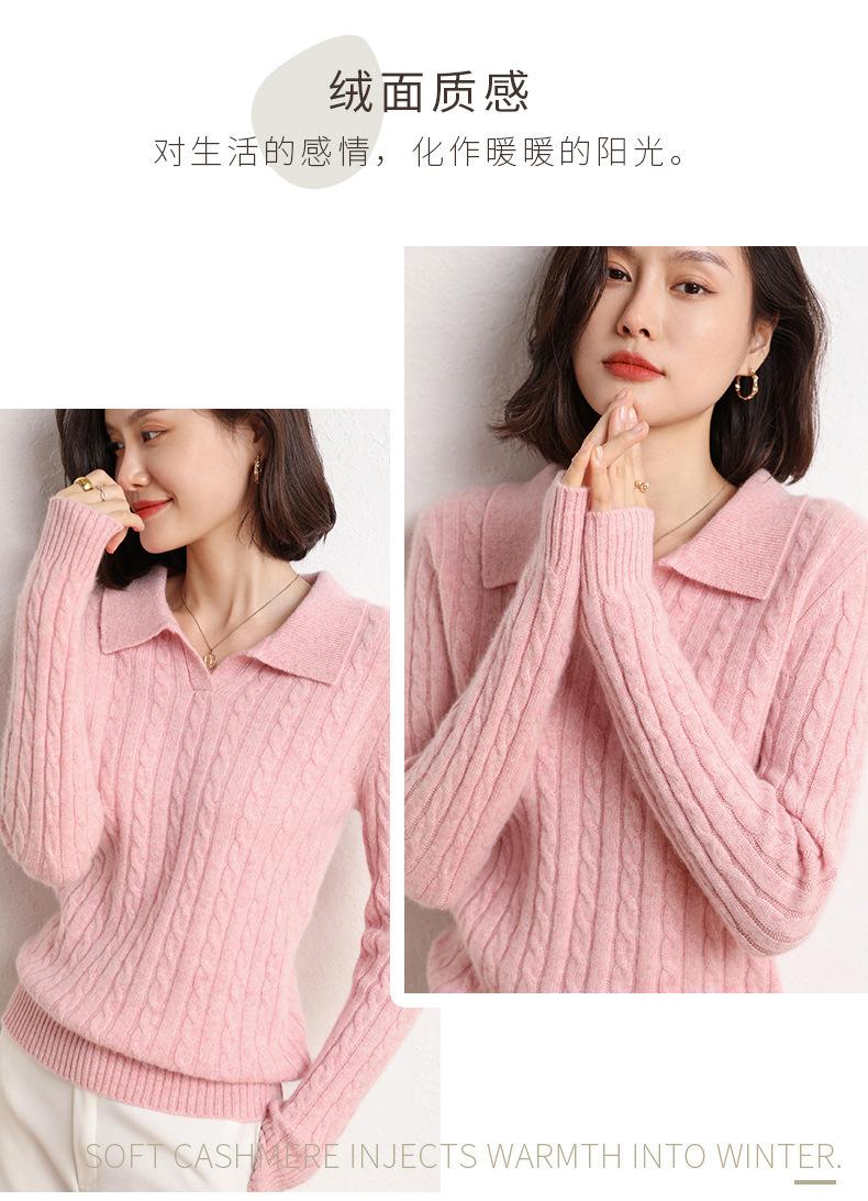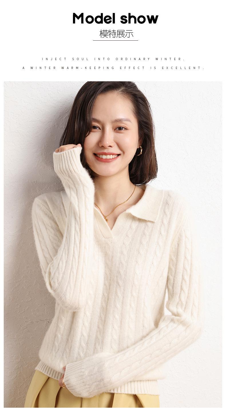 Suéter de cachemira con cuello POLO para mujer, otoño e invierno 2024, nuevo jersey corto de punto holgado y ajustado con solapa