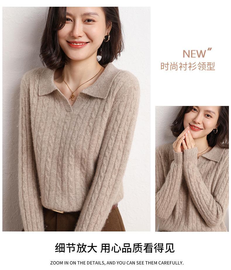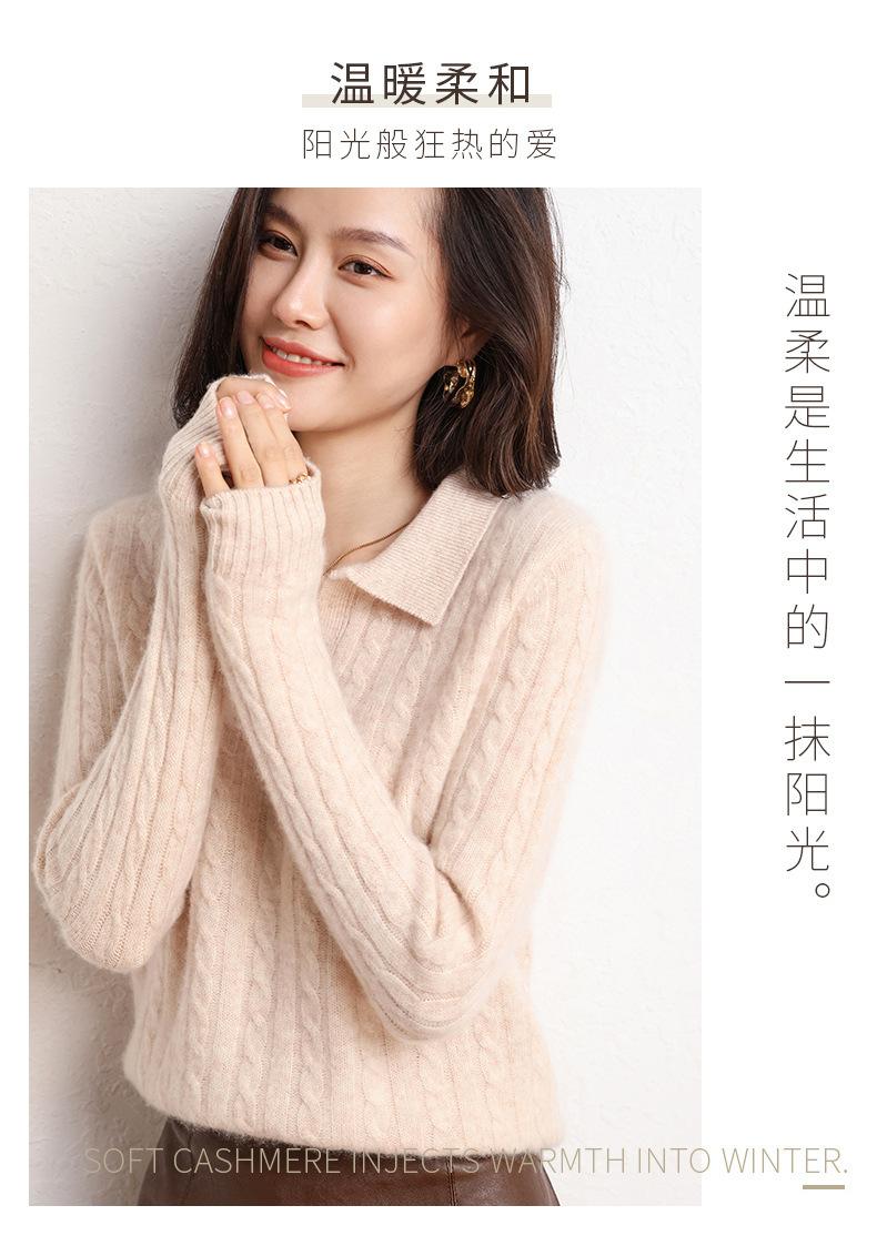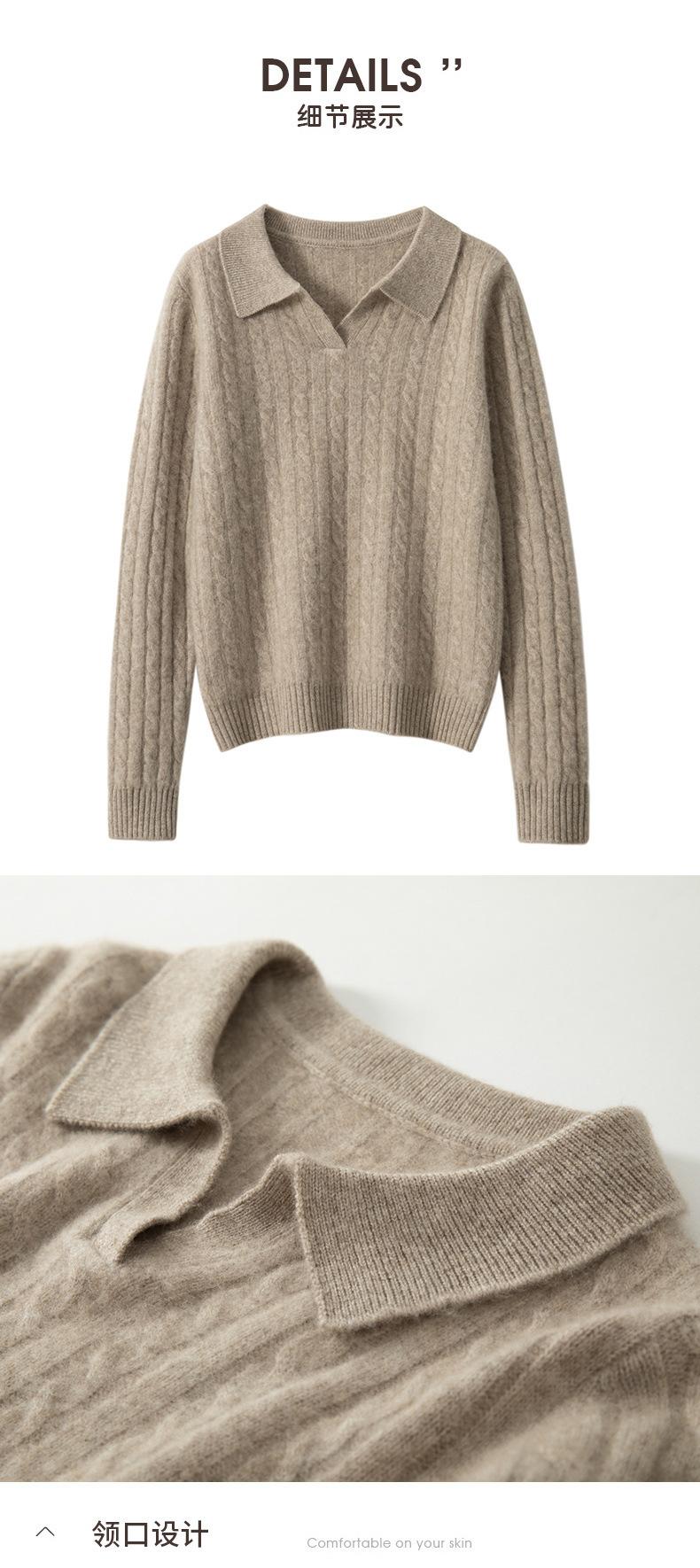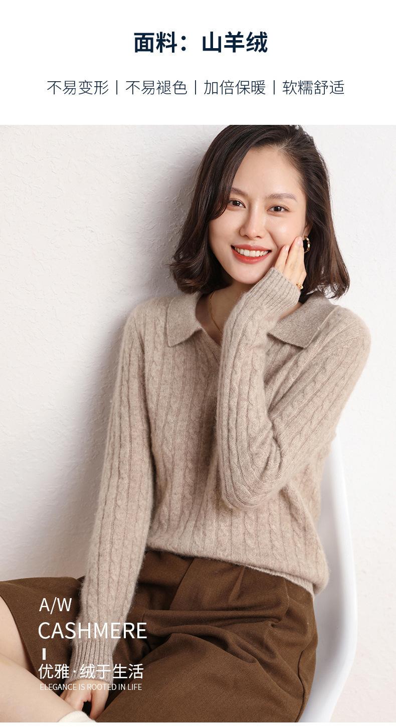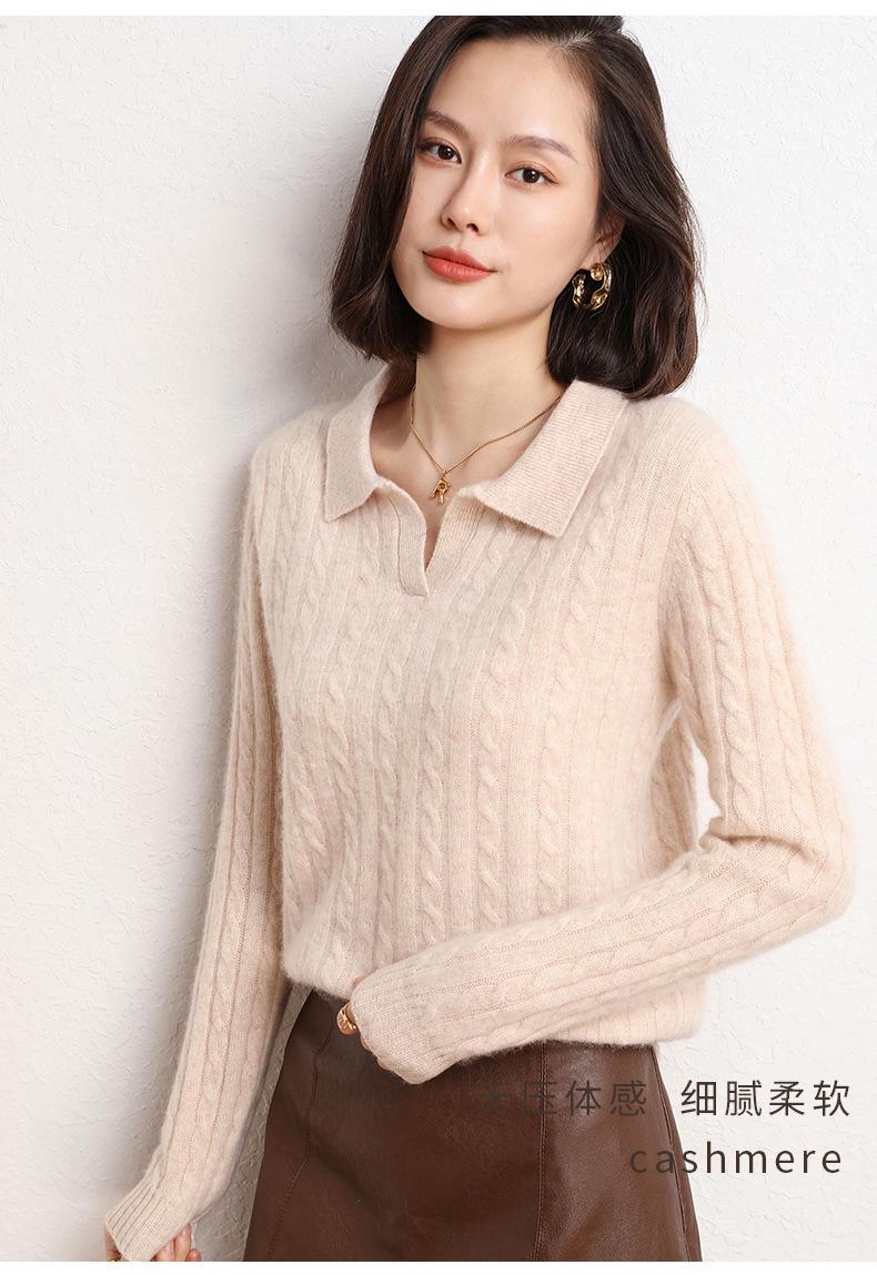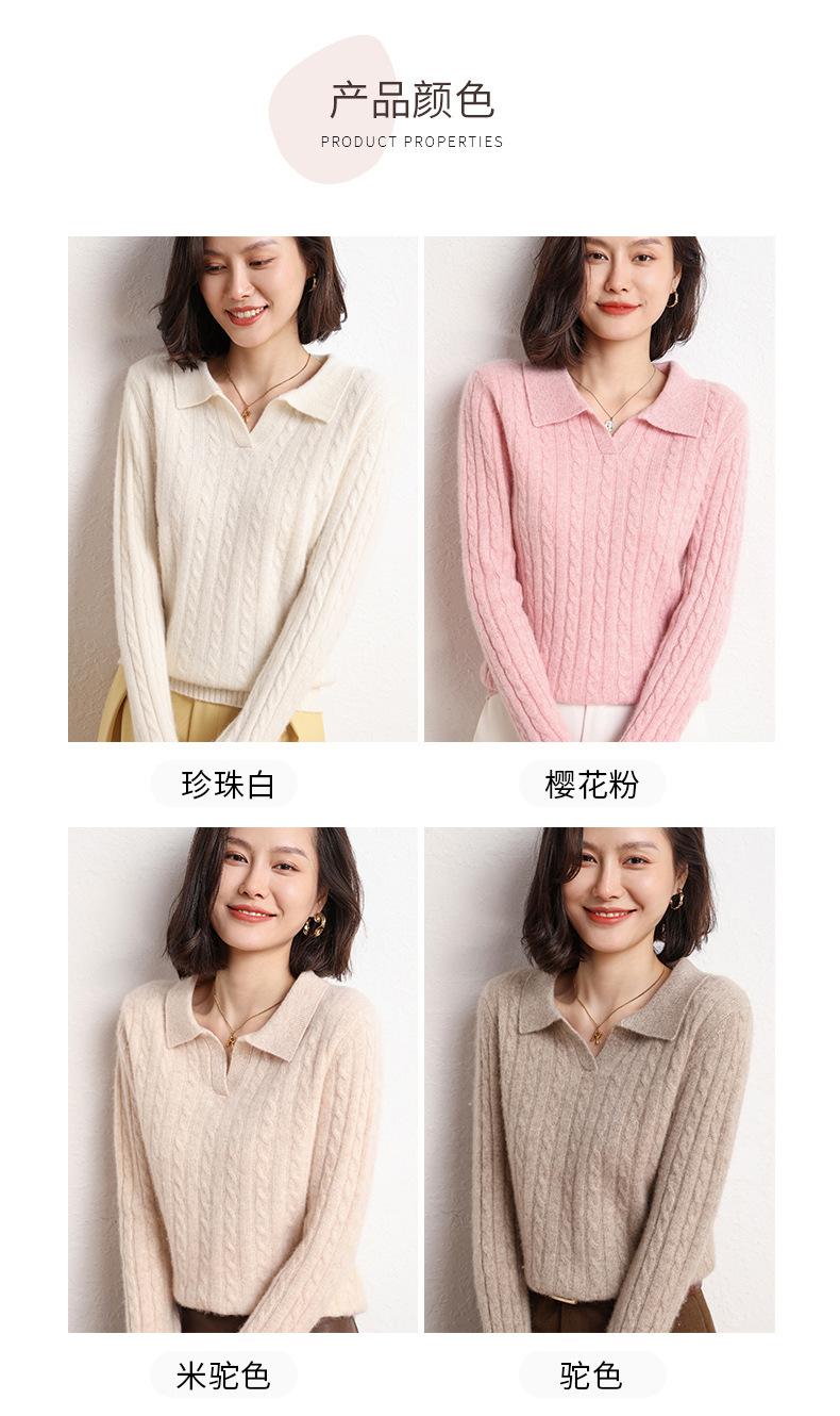 Suéter de cachemira con cuello POLO para mujer, otoño e invierno 2024, nuevo jersey corto de punto holgado y ajustado con solapa