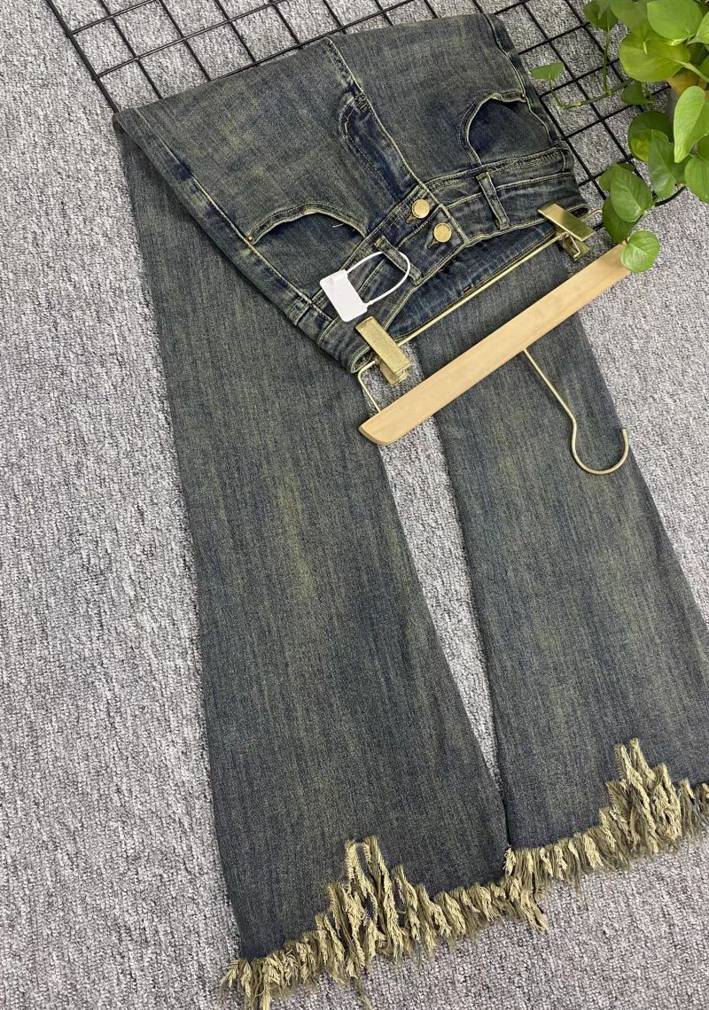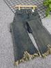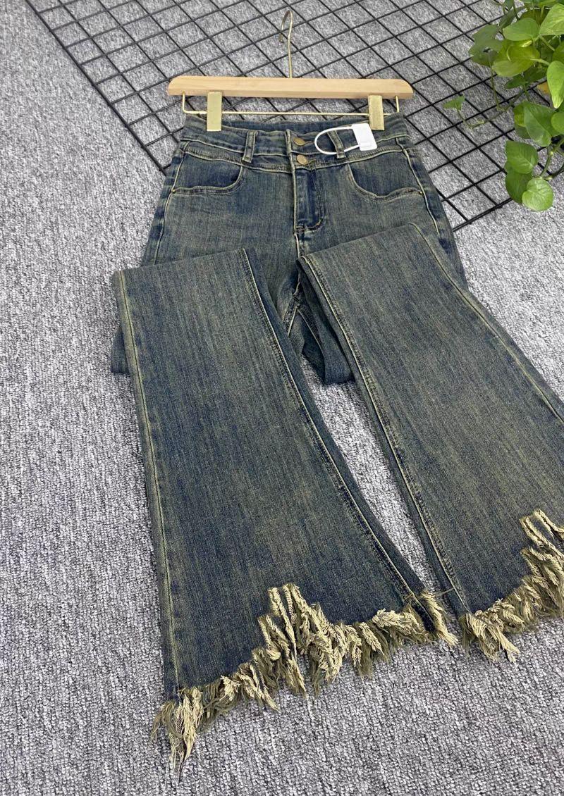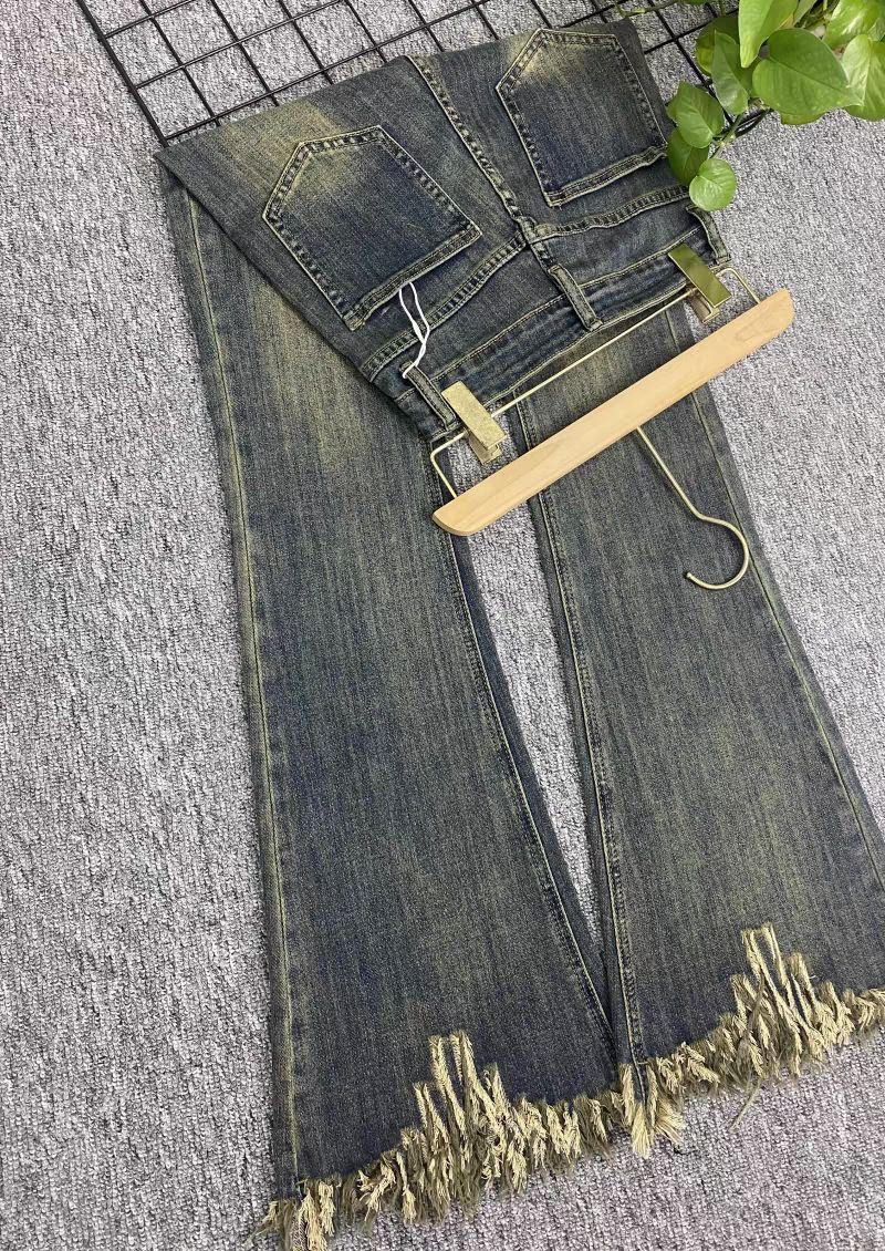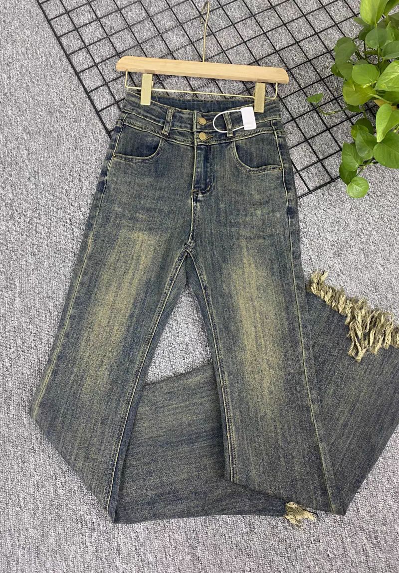 Pantalones vaqueros informales con microacampanados y bordes rugosos para mujer, otoño e invierno 2024, elásticos, de cintura alta, holgados, adelgazantes, con diseño de herradura.