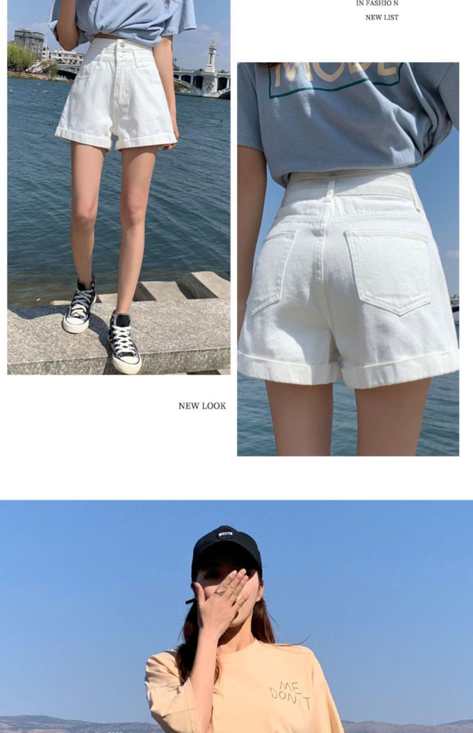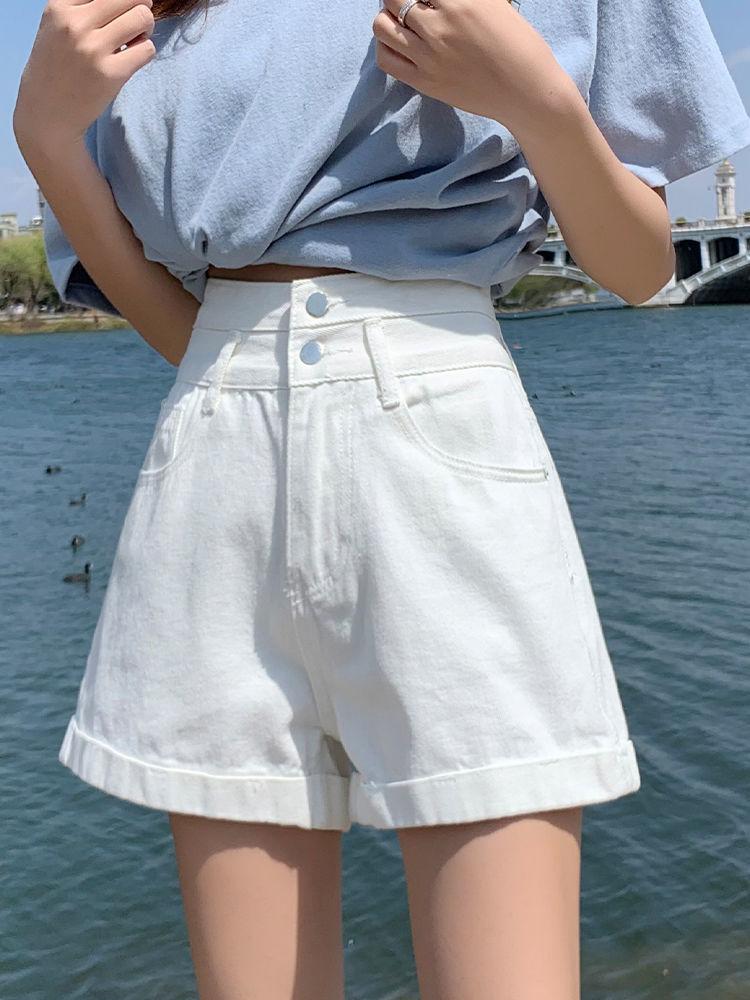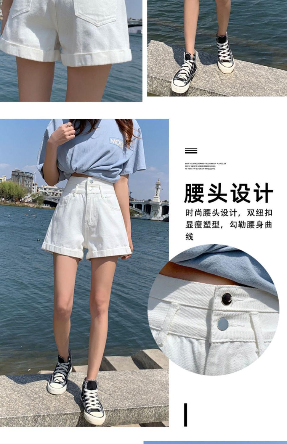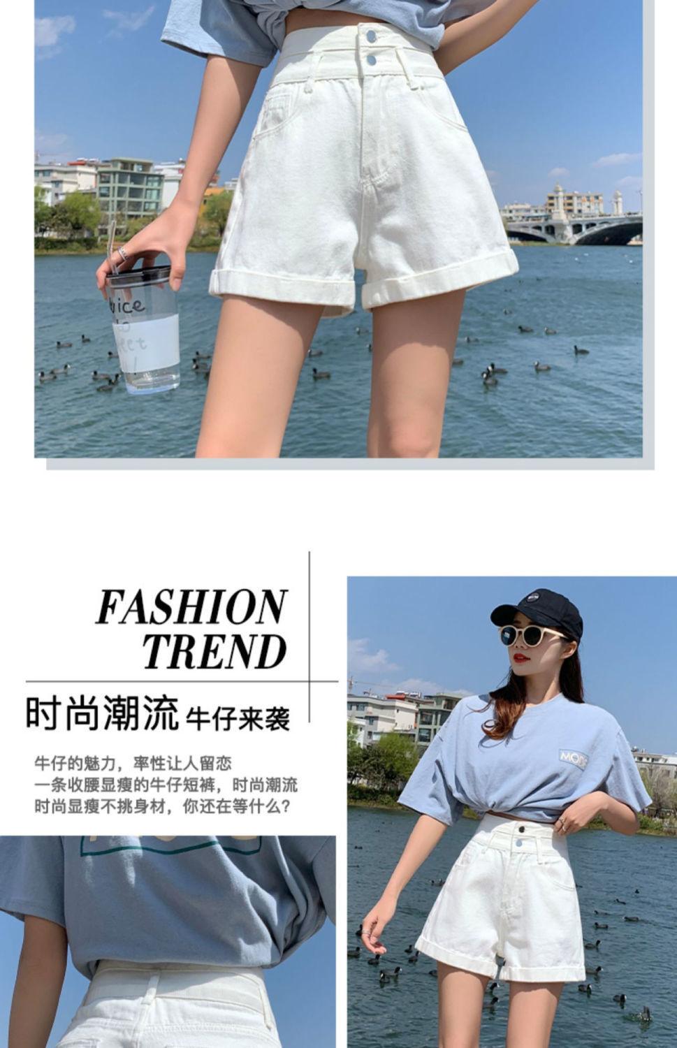 Pantalones cortos vaqueros para mujer, verano 2022, nuevos, finos, sueltos, adelgazantes, de cintura alta, rectos, blancos, en forma de A, con pierna ancha, pantalones cortos cortos.