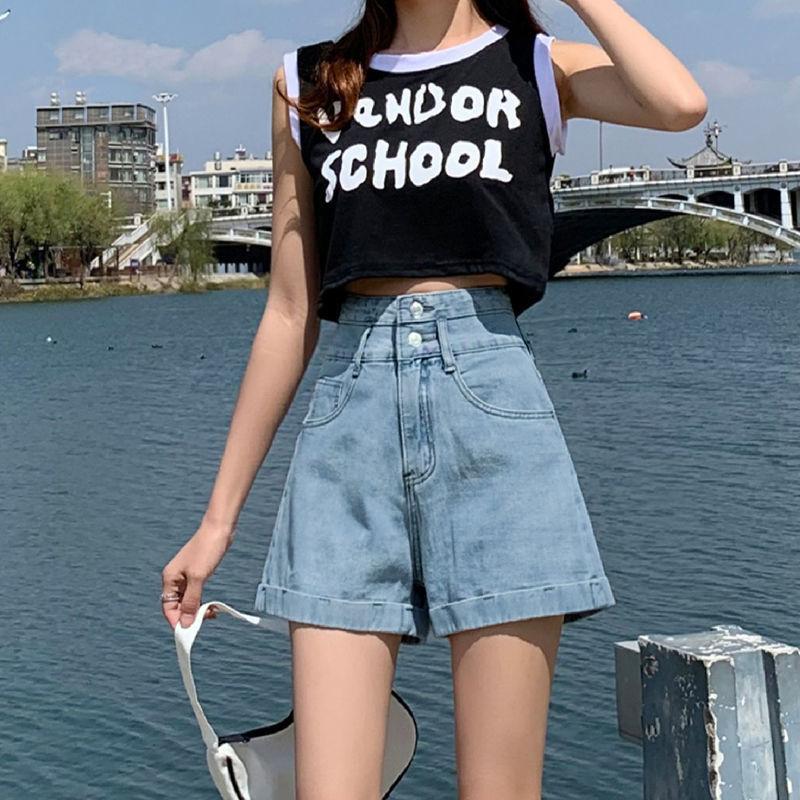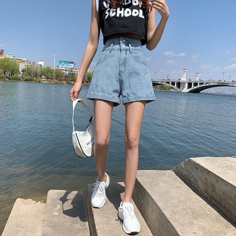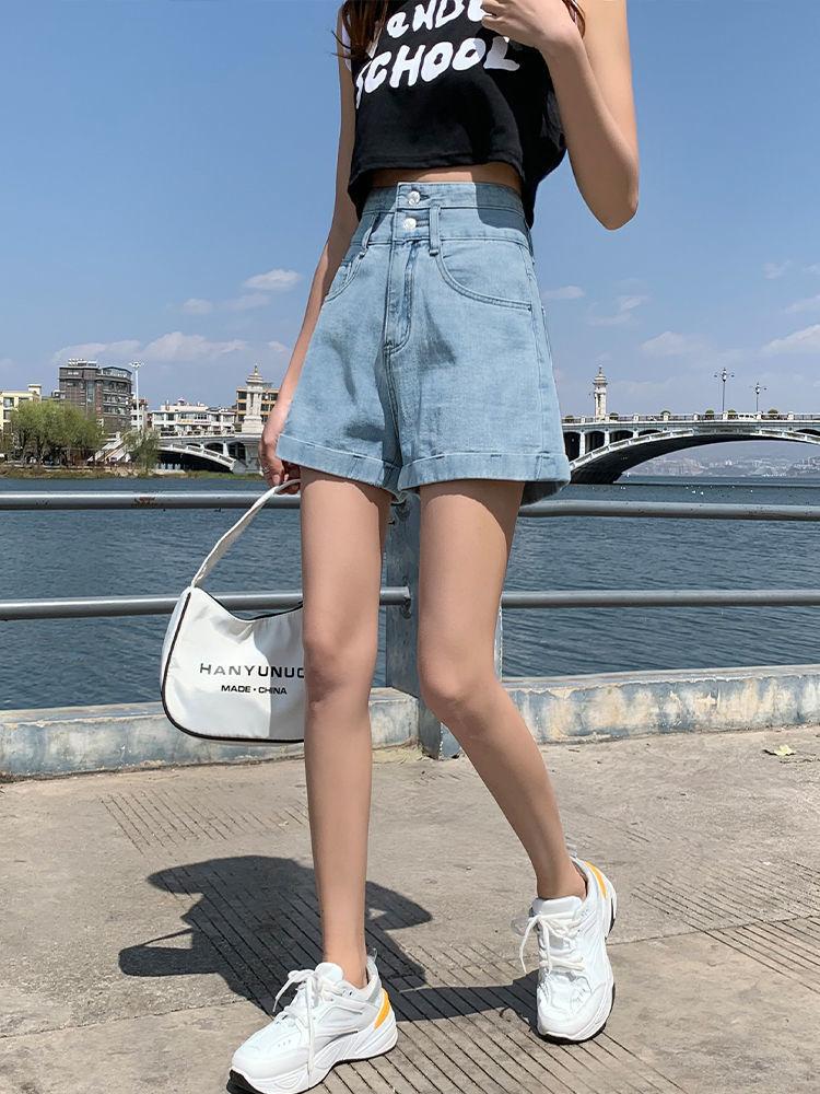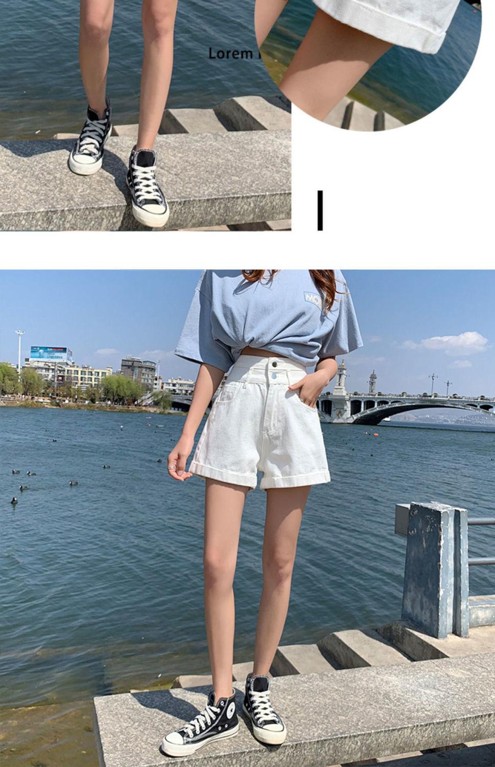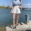 Pantalones cortos vaqueros para mujer, verano 2022, nuevos, finos, sueltos, adelgazantes, de cintura alta, rectos, blancos, en forma de A, con pierna ancha, pantalones cortos cortos.