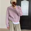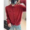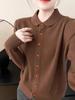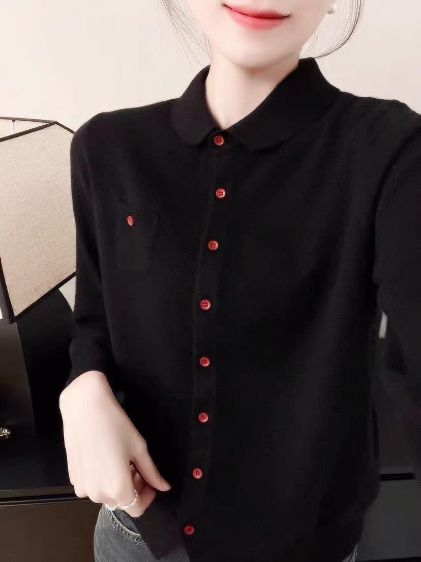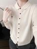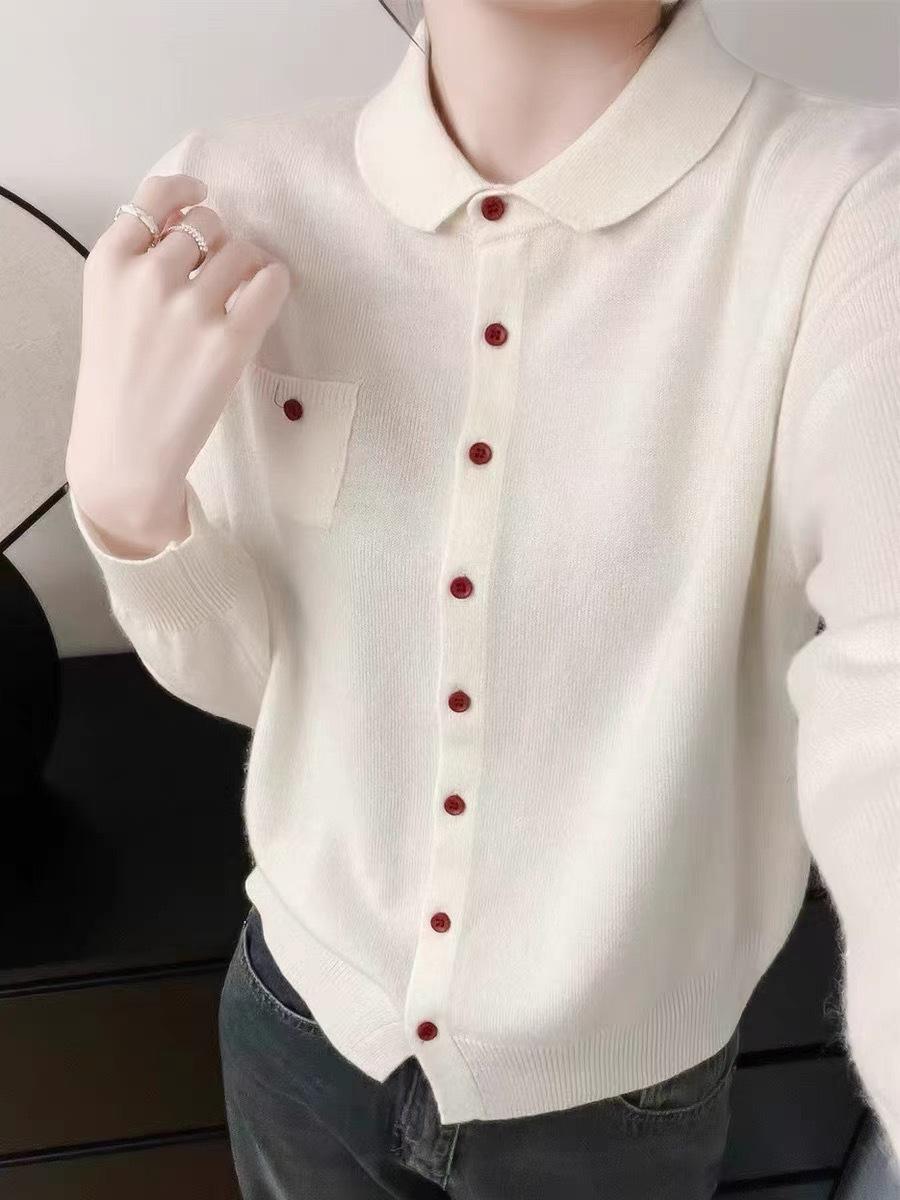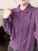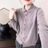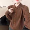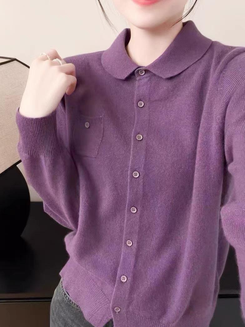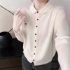 Suéter de punto con solapa sencilla e informal para mujer, estilo coreano, otoño e invierno de 2024, color liso, con un solo bolsillo