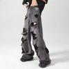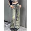 Jeans Bootcut de Cintura Alta Lavados, Desgastados y Rotos de la Calle Principal Americana 2024 para Hombres y Mujeres, Pantalones de Marca de Moda para Mujeres