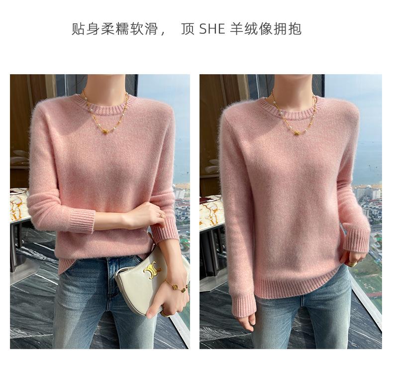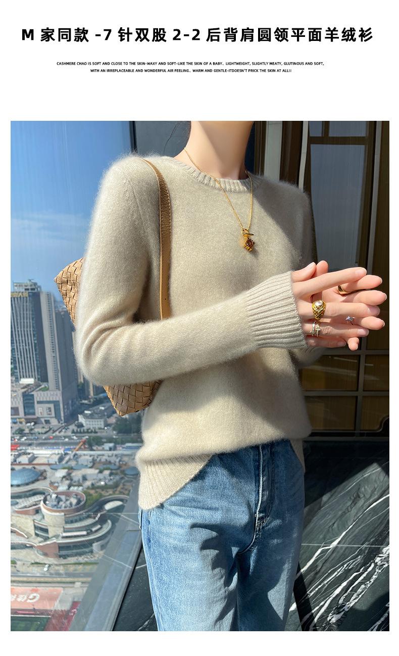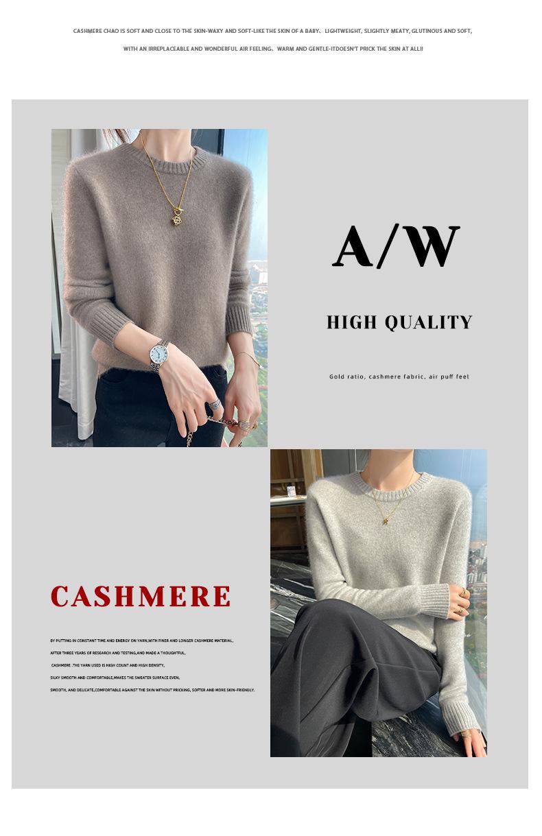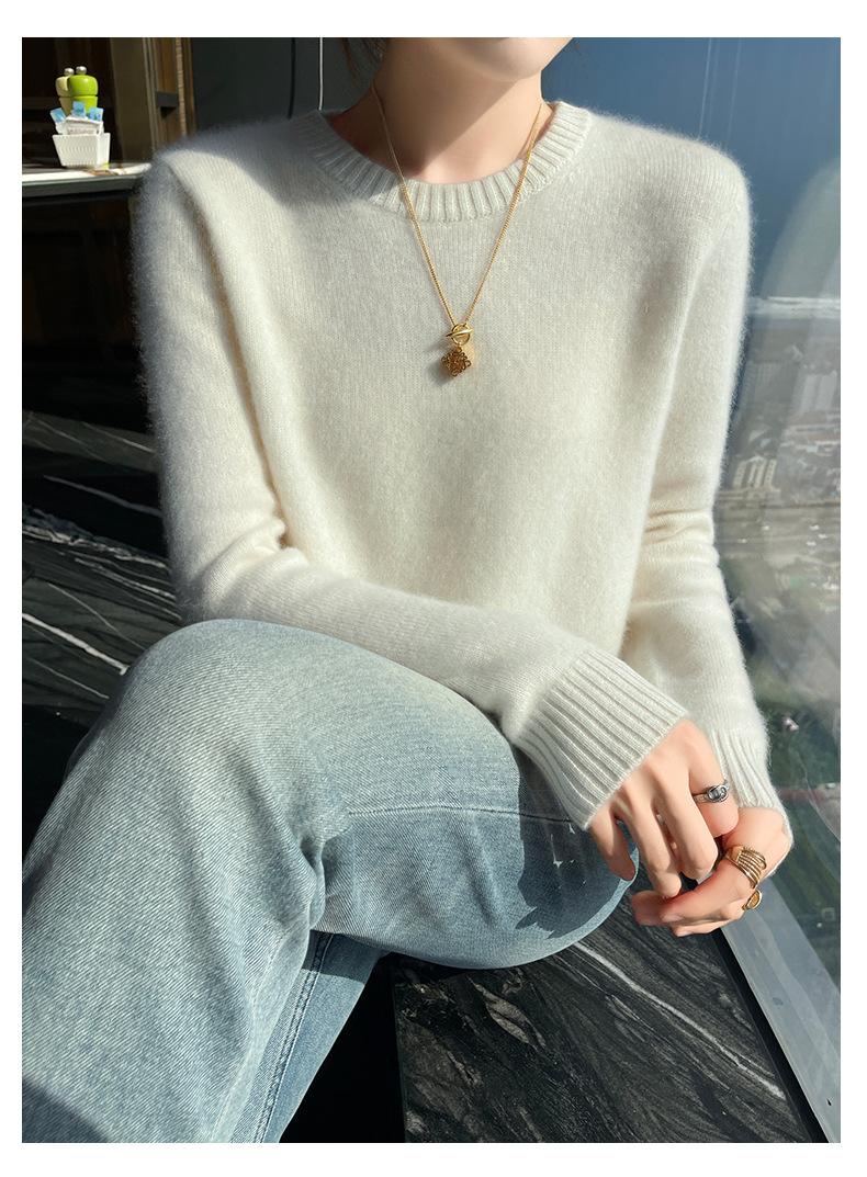 Suéter de cachemira gruesa para mujer, suéter holgado de cuello redondo, combinable con todo, de color sólido, camisa básica ajustada, otoño e invierno, nuevo