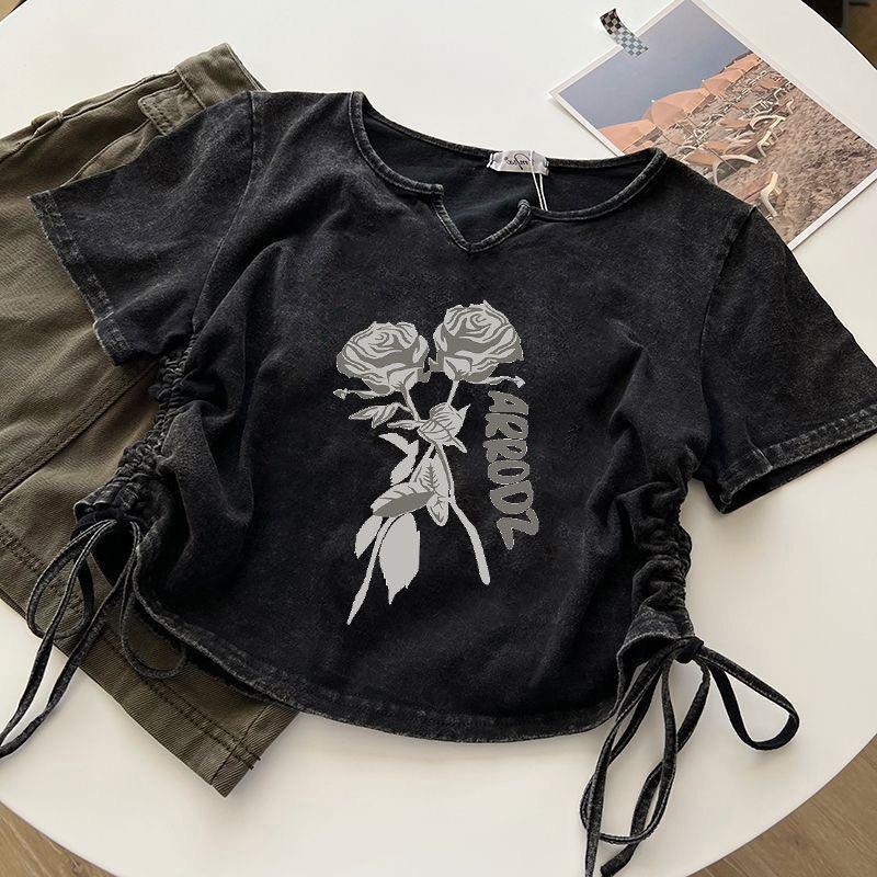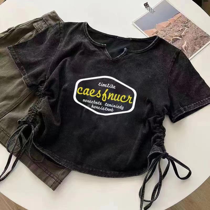 Camiseta de alta gama para amantes de Amazon, comercio exterior, para mujer mayor, verano 2024, diseño de moda, chaqueta de manga corta, venta al por mayor
