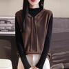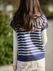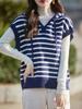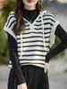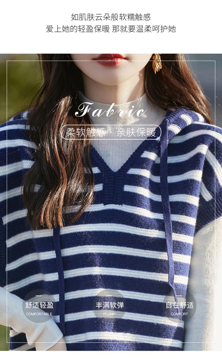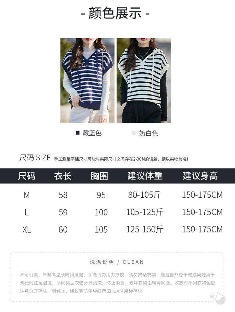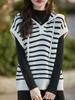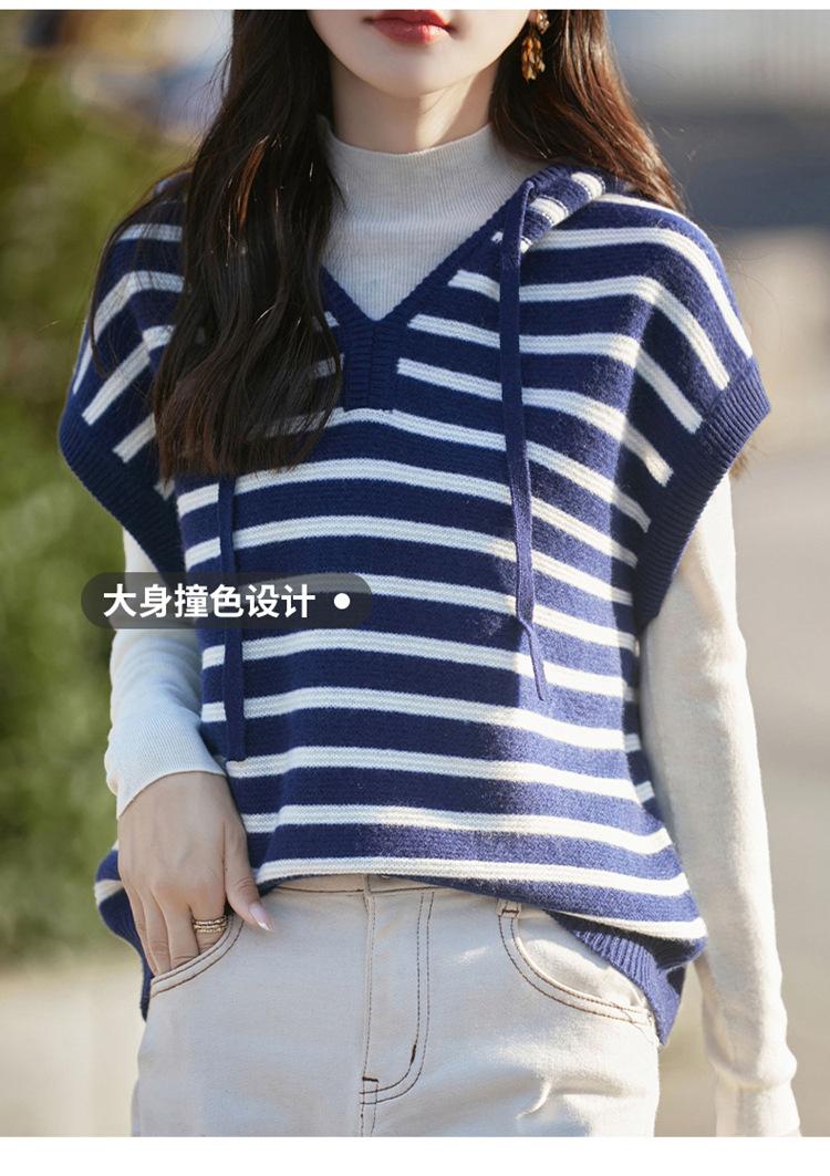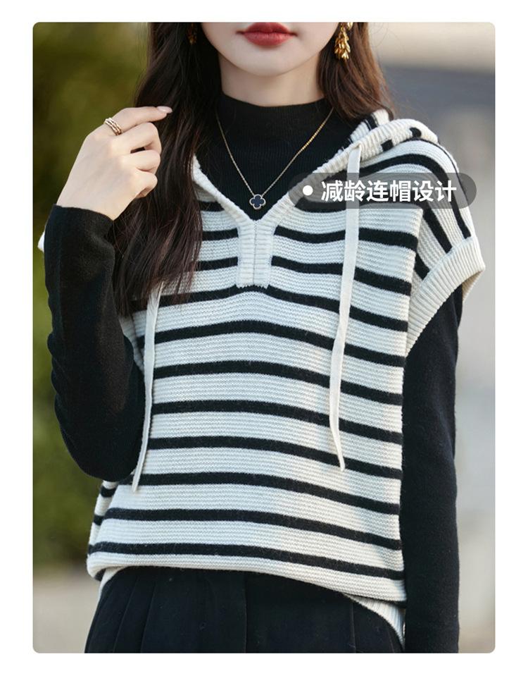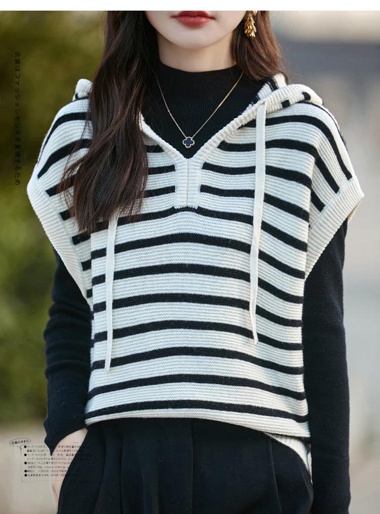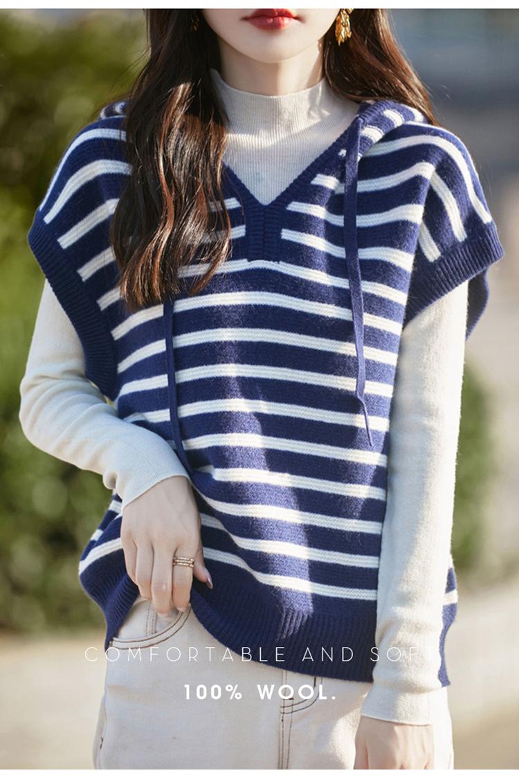 Chaleco de Punto Rayado de Lana Pura Espesada para Mujer con Capucha Casual Holgado Reductor de Edad Ropa Exterior Suéter Chaleco