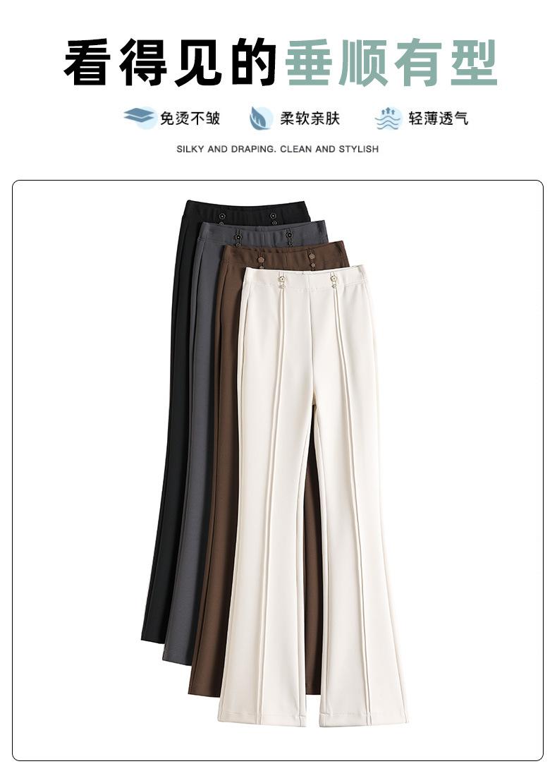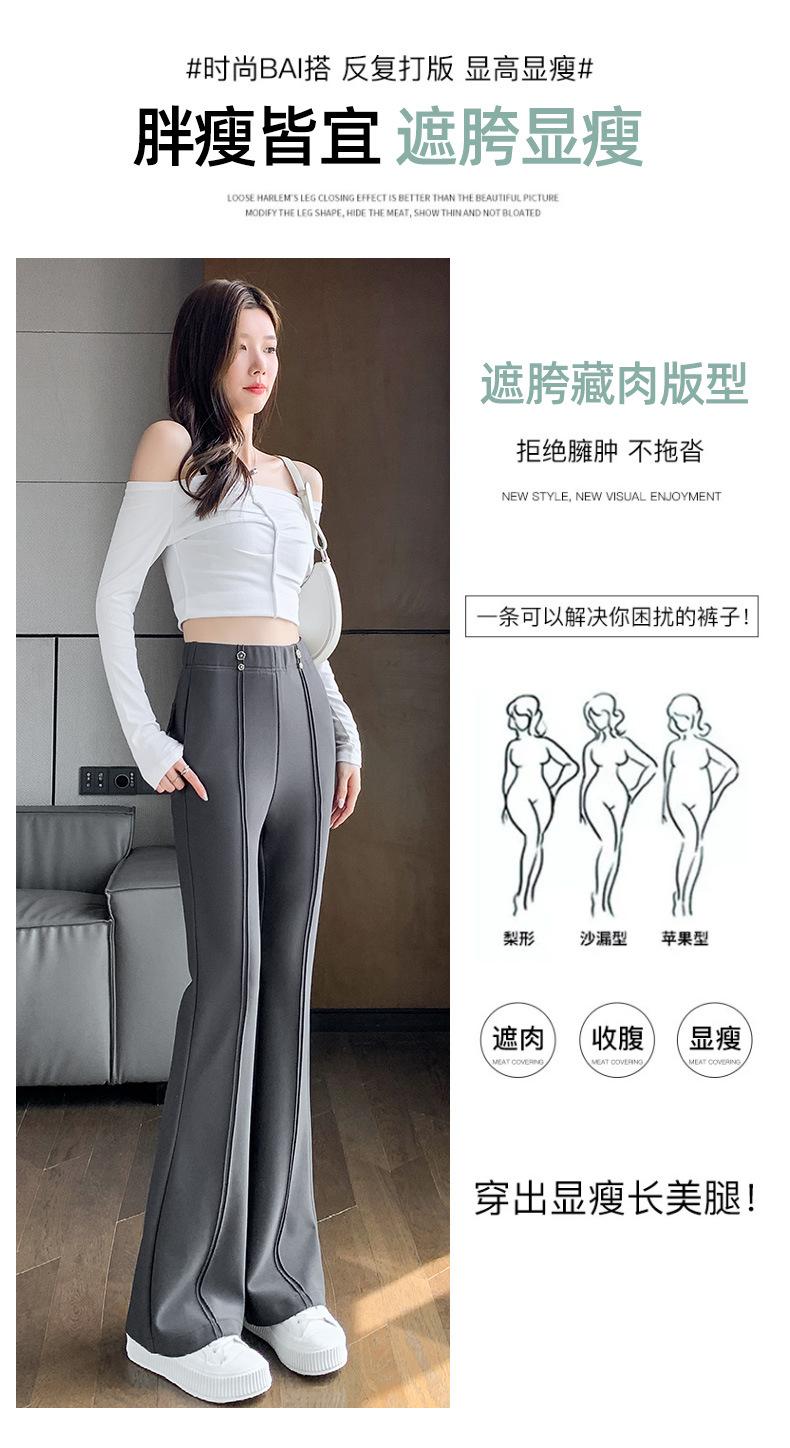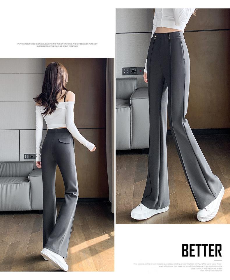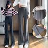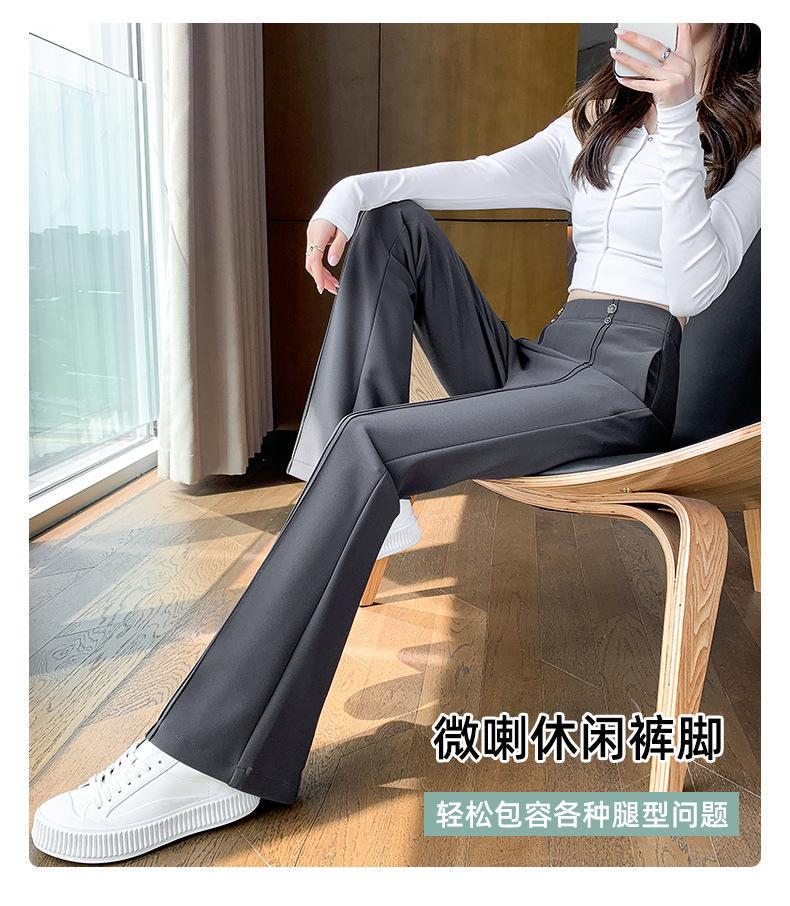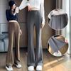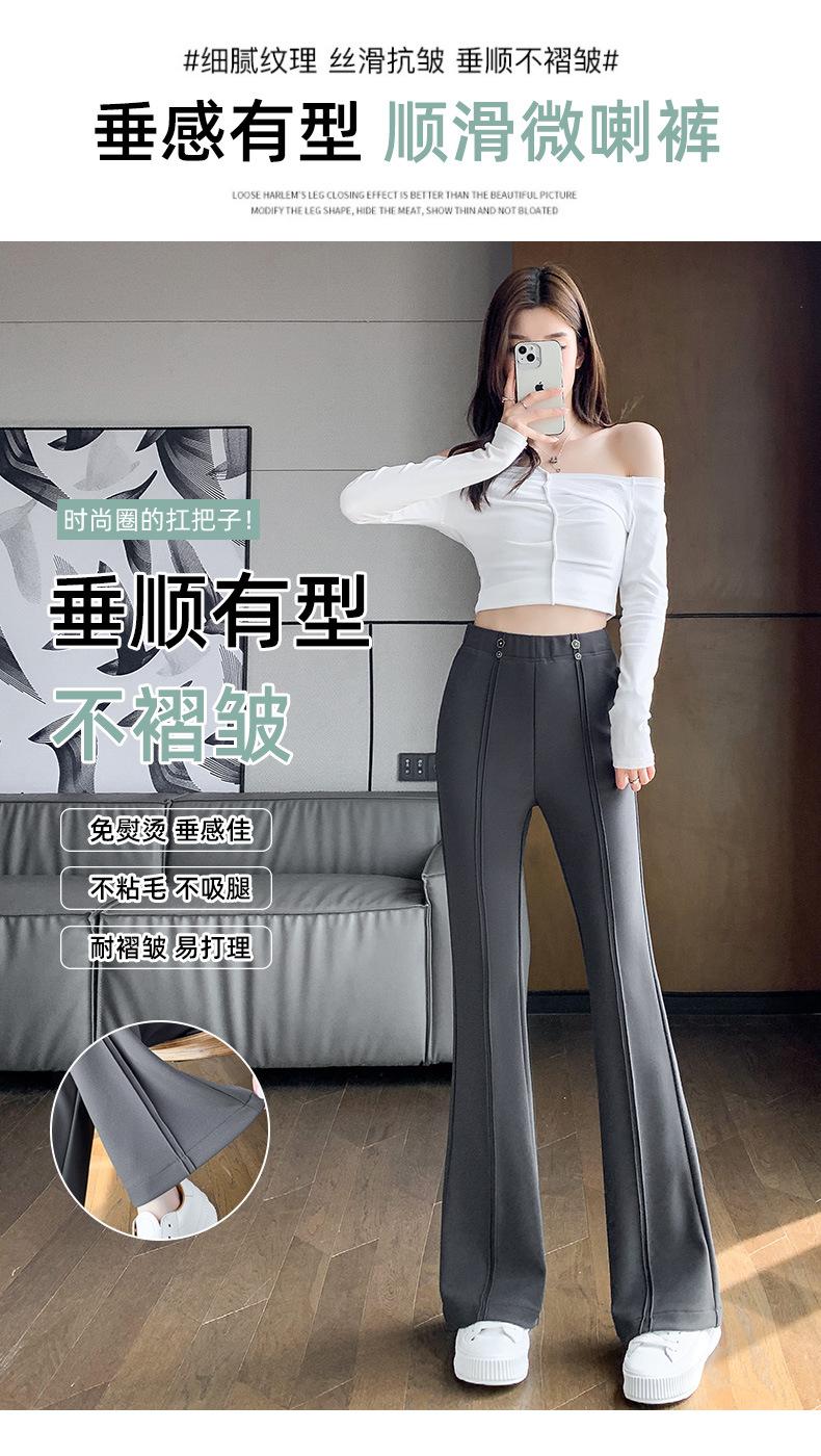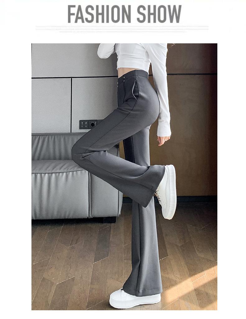 Pantalones de Traje Acampanados Grises para Mujer Primavera 2024 Delgados de Cintura Alta Drapeados Slim Seda Helada Casuales Acampanados E587