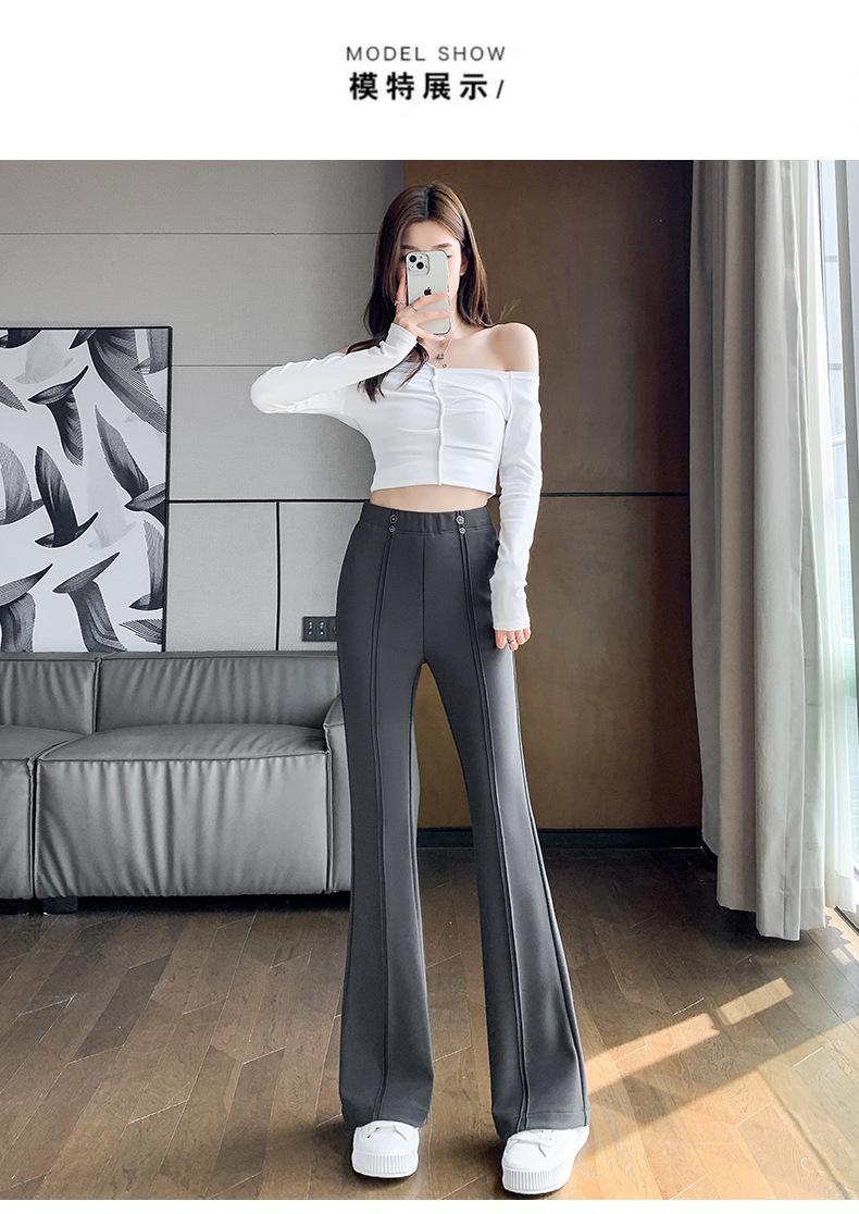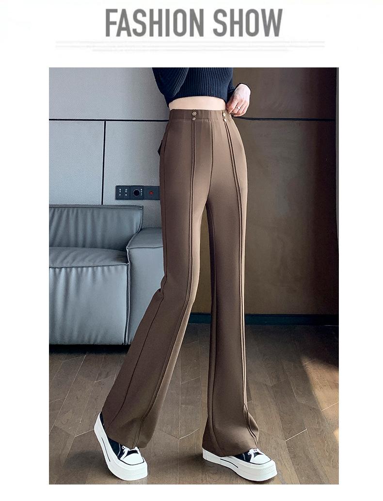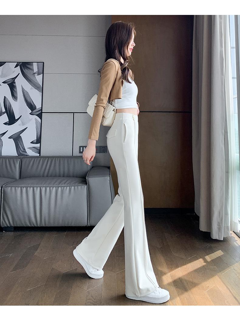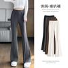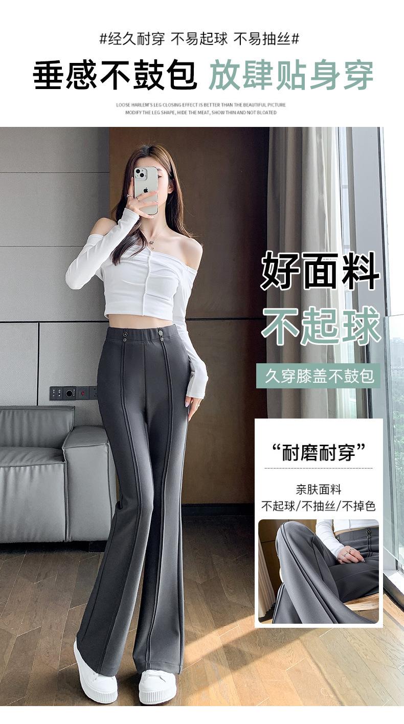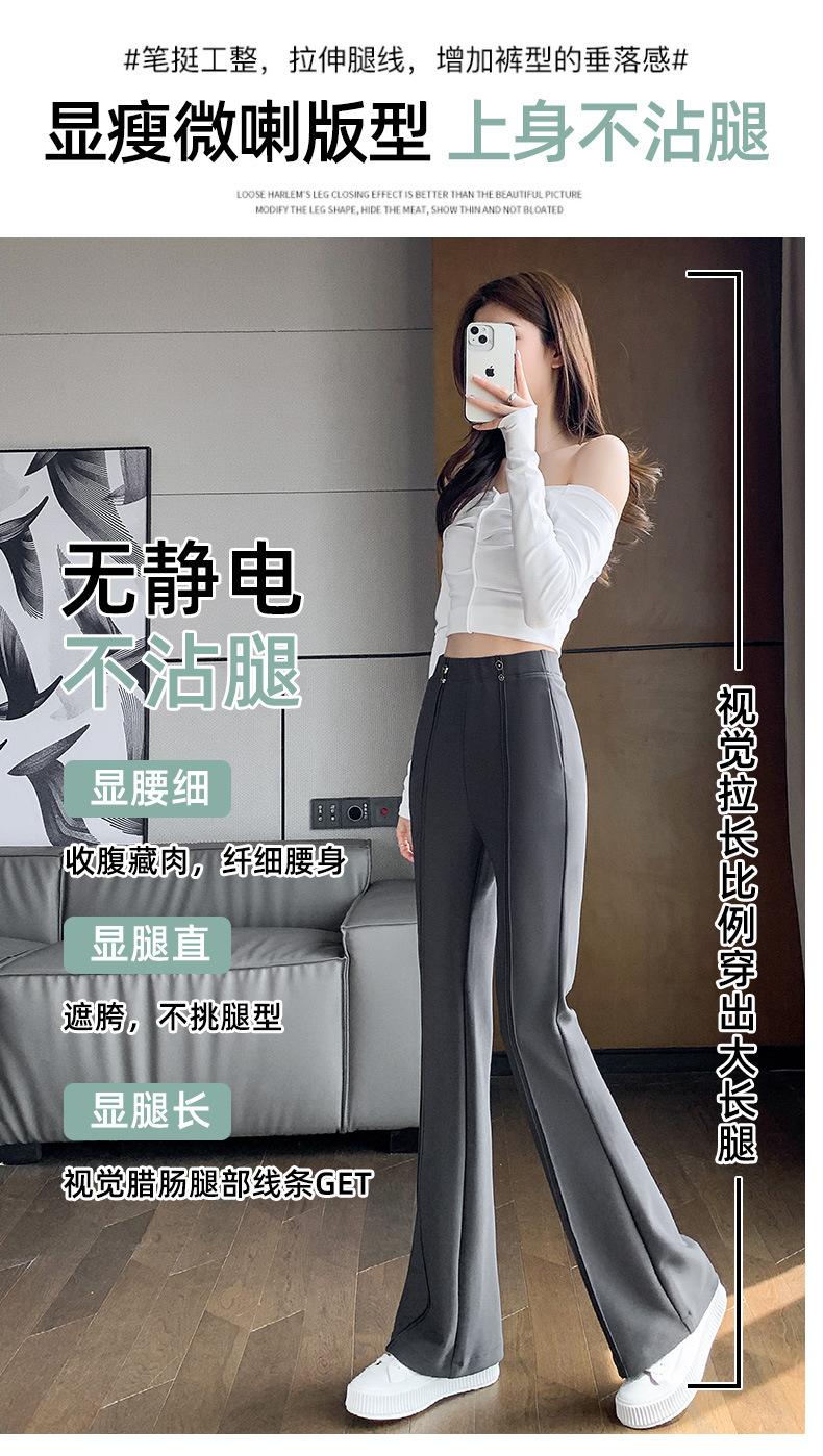Pantalones de Traje Acampanados Grises para Mujer Primavera 2024 Delgados de Cintura Alta Drapeados Slim Seda Helada Casuales Acampanados E587