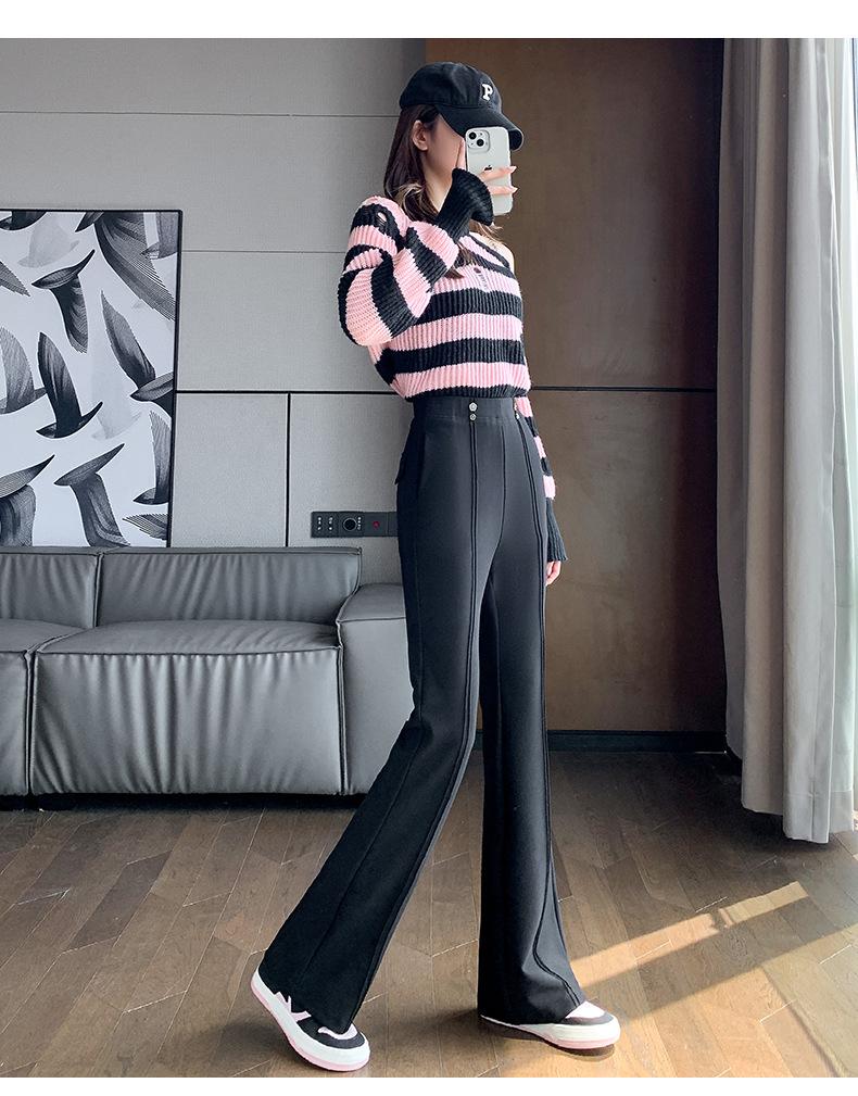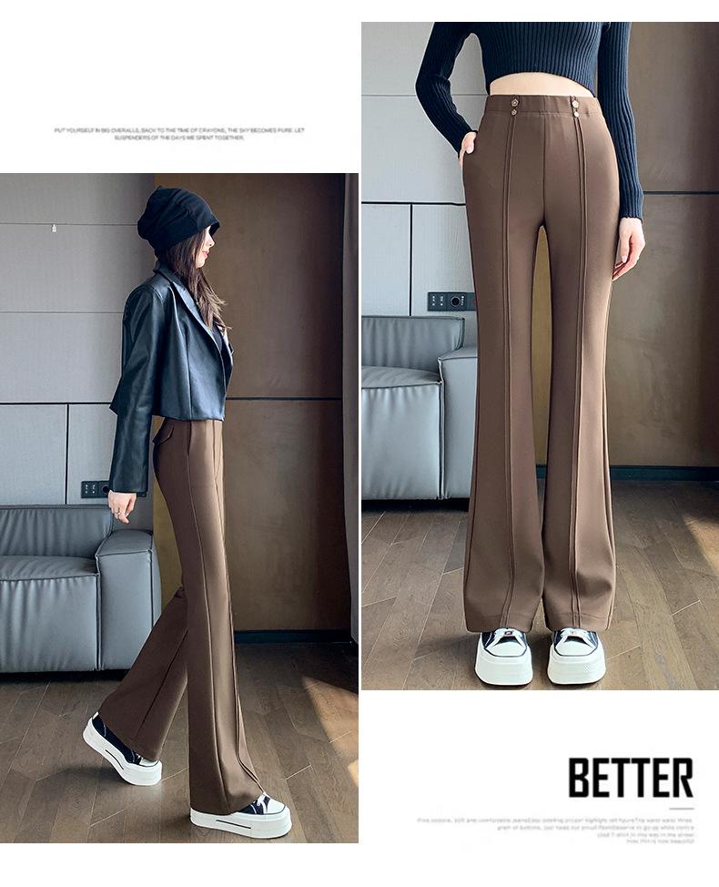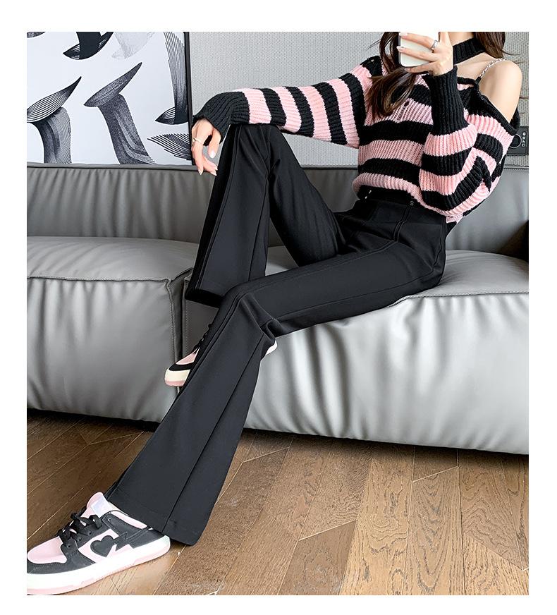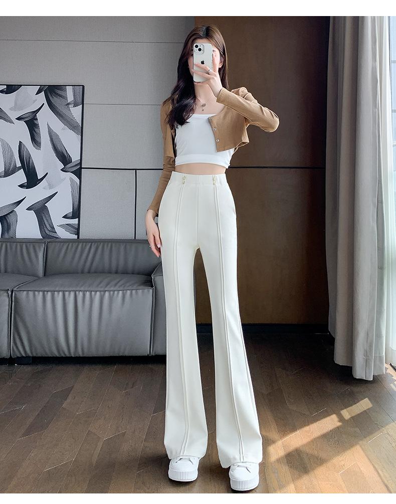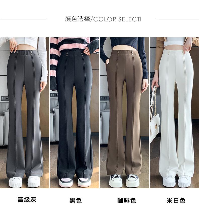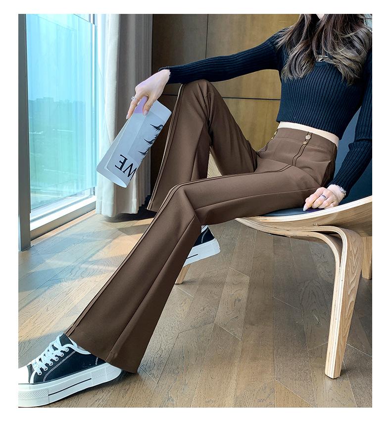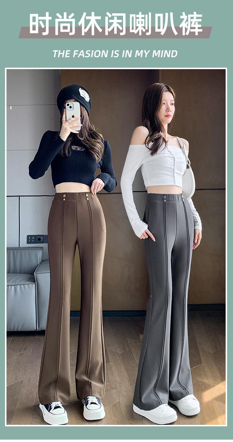 Pantalones de Traje Acampanados Grises para Mujer Primavera 2024 Delgados de Cintura Alta Drapeados Slim Seda Helada Casuales Acampanados E587