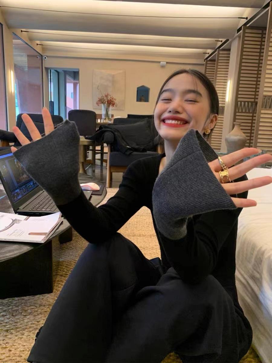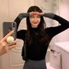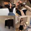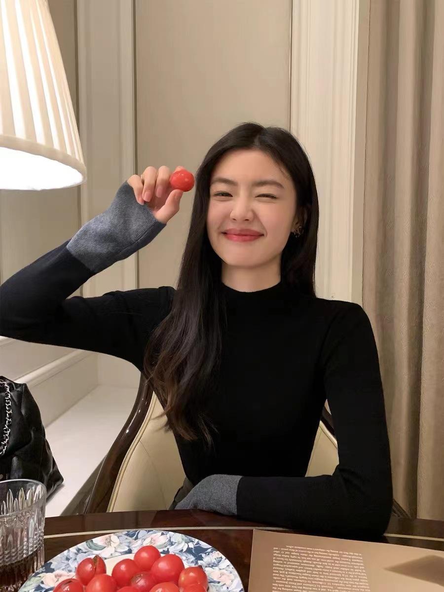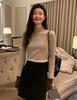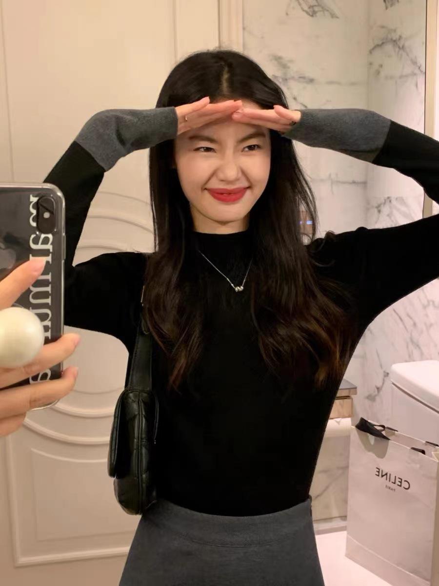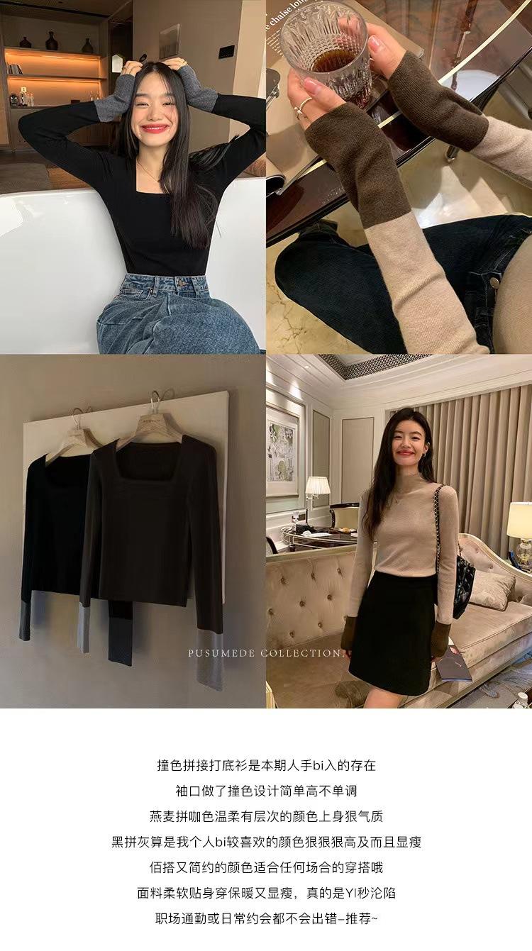 Suéter de manga larga de color contrastante Pusumede para mujer, diseño de nicho, corte ajustado, blusa de temperamento versátil.