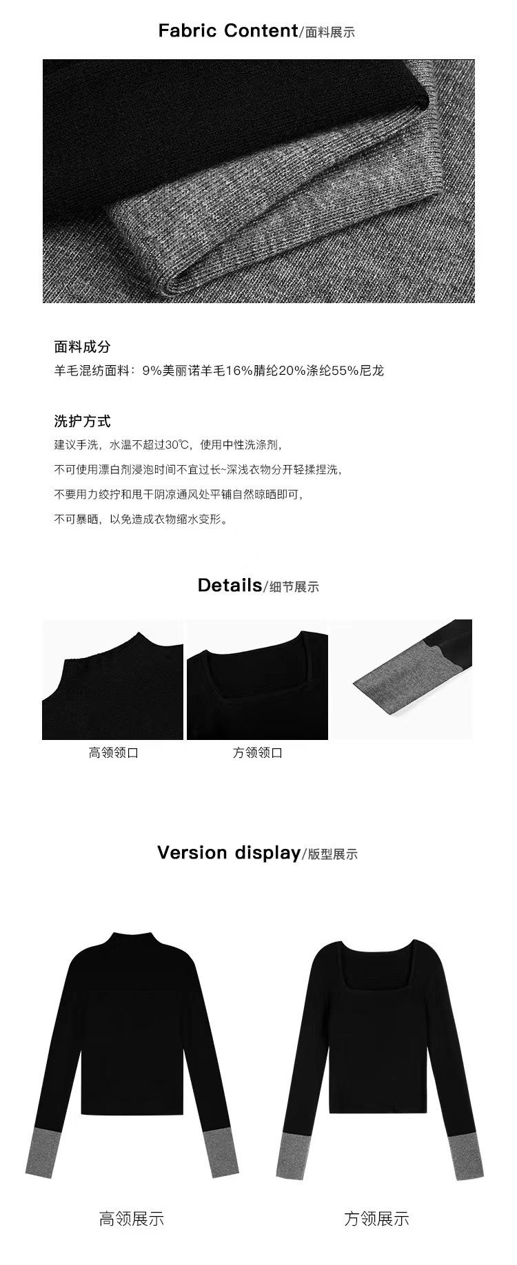Black and gray (half turtleneck), Oatmeal coffee (half turtleneck), Black and gray (square collar)