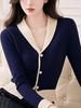 Suéter de Punto de Cachemira de Contraste de Color Francés Diseño de Otoño de Nicho Ajustado Adelgazante Versátil Elegante Suéter Base Interior