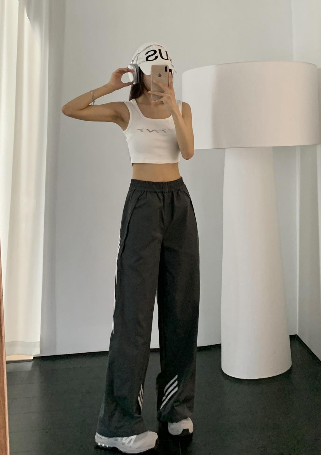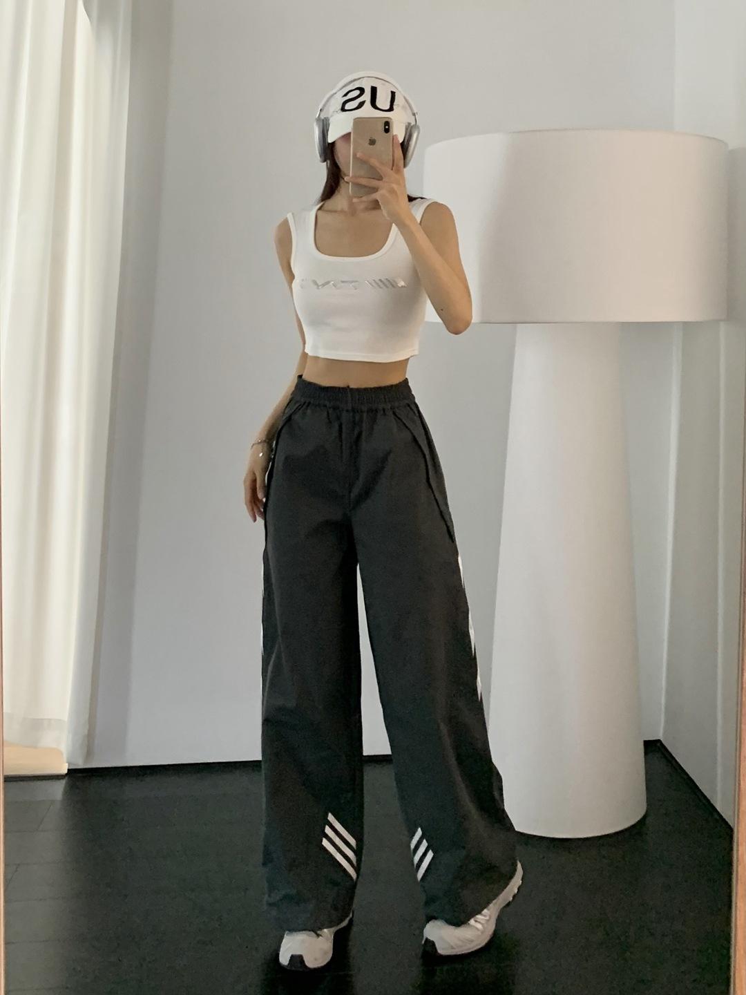 Pantalones deportivos informales de secado rápido estilo americano para mujer, pantalones holgados rectos y adelgazantes de pierna ancha, novedad de 2024.